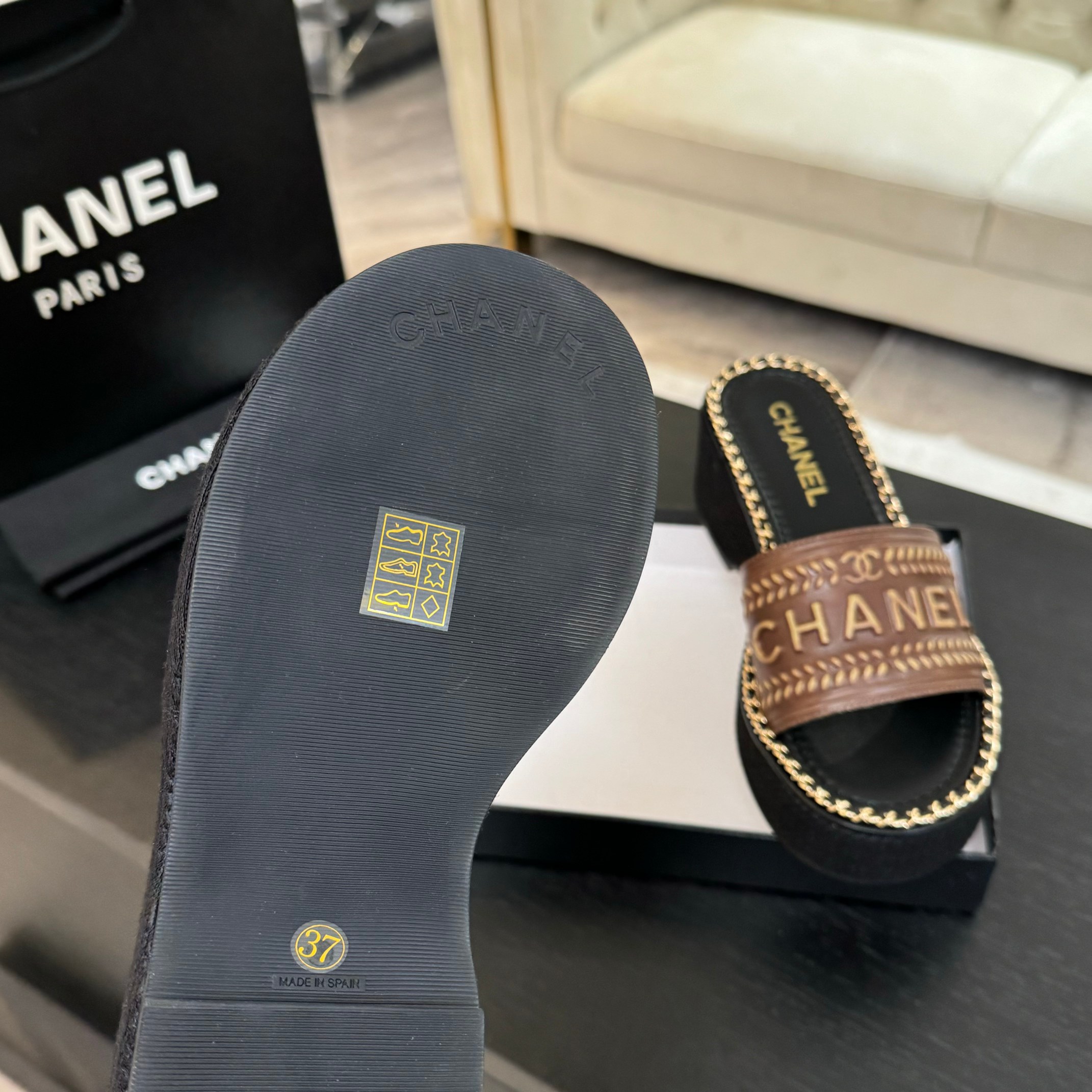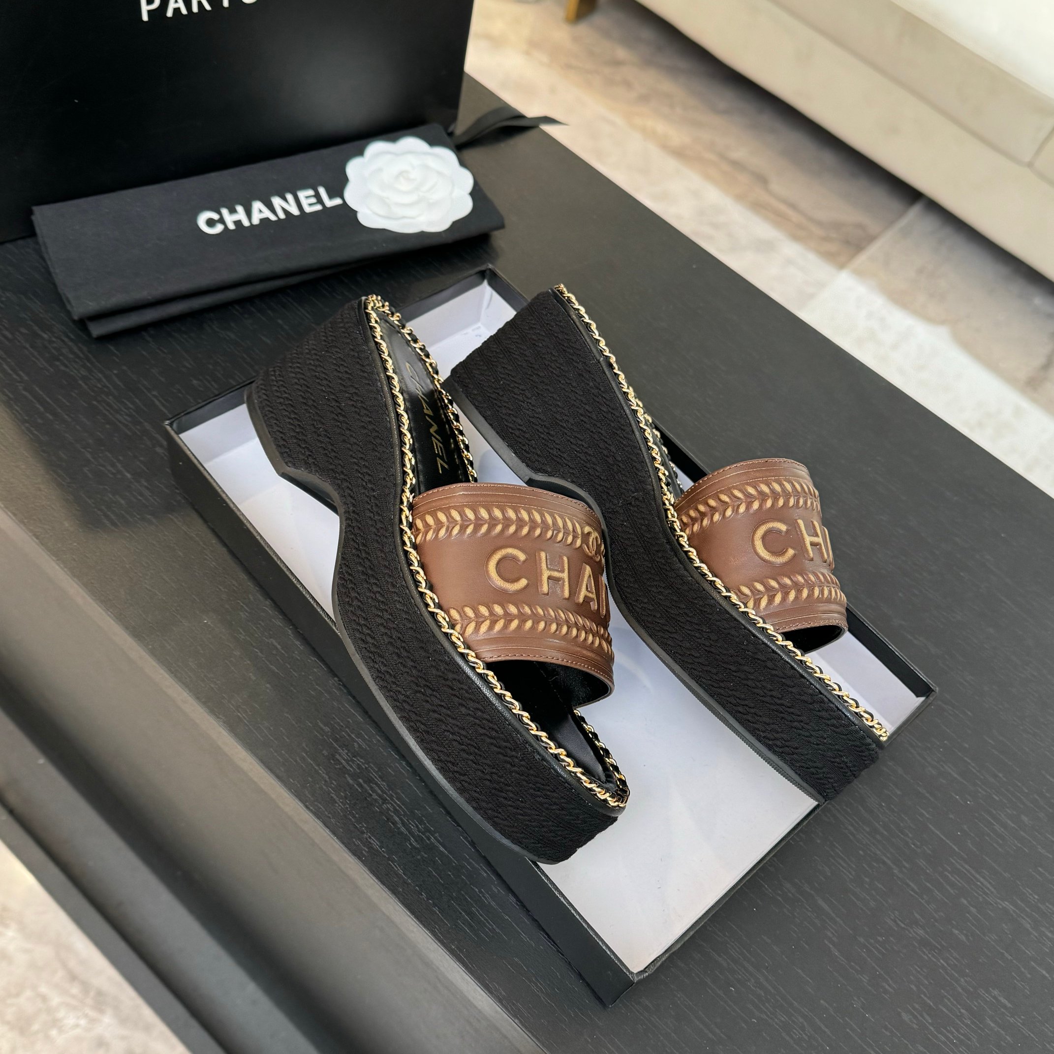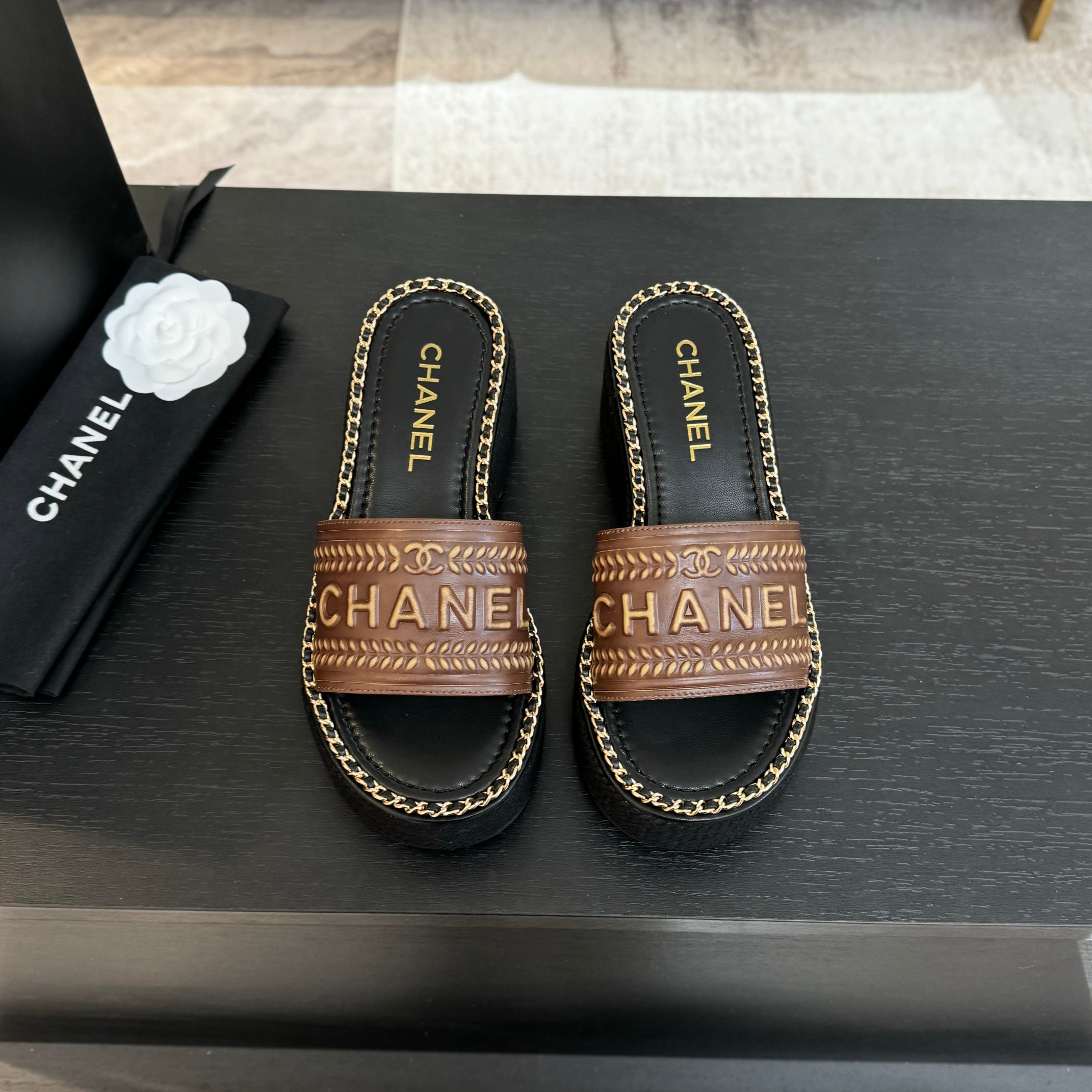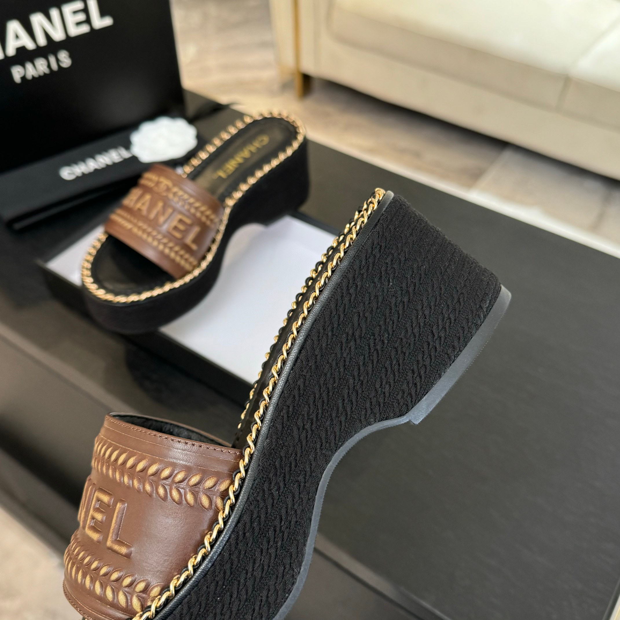 這款鞋子是AAAAA 1:1 質量(非常棒). 使用了和原版一模一樣的材料. 商標部分也保持了和香奈兒/Chanel一樣. 圖片拍攝是實物鞋子拍攝, 您所收到的實物保證和我們圖片一模一樣.