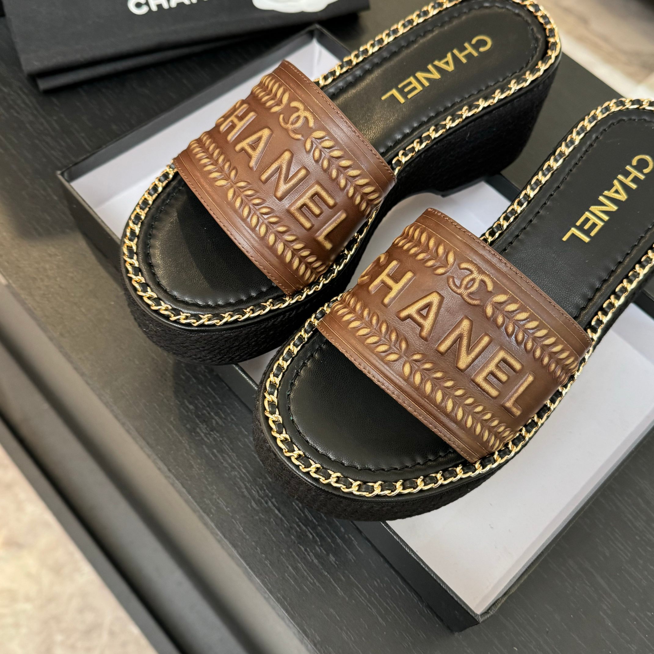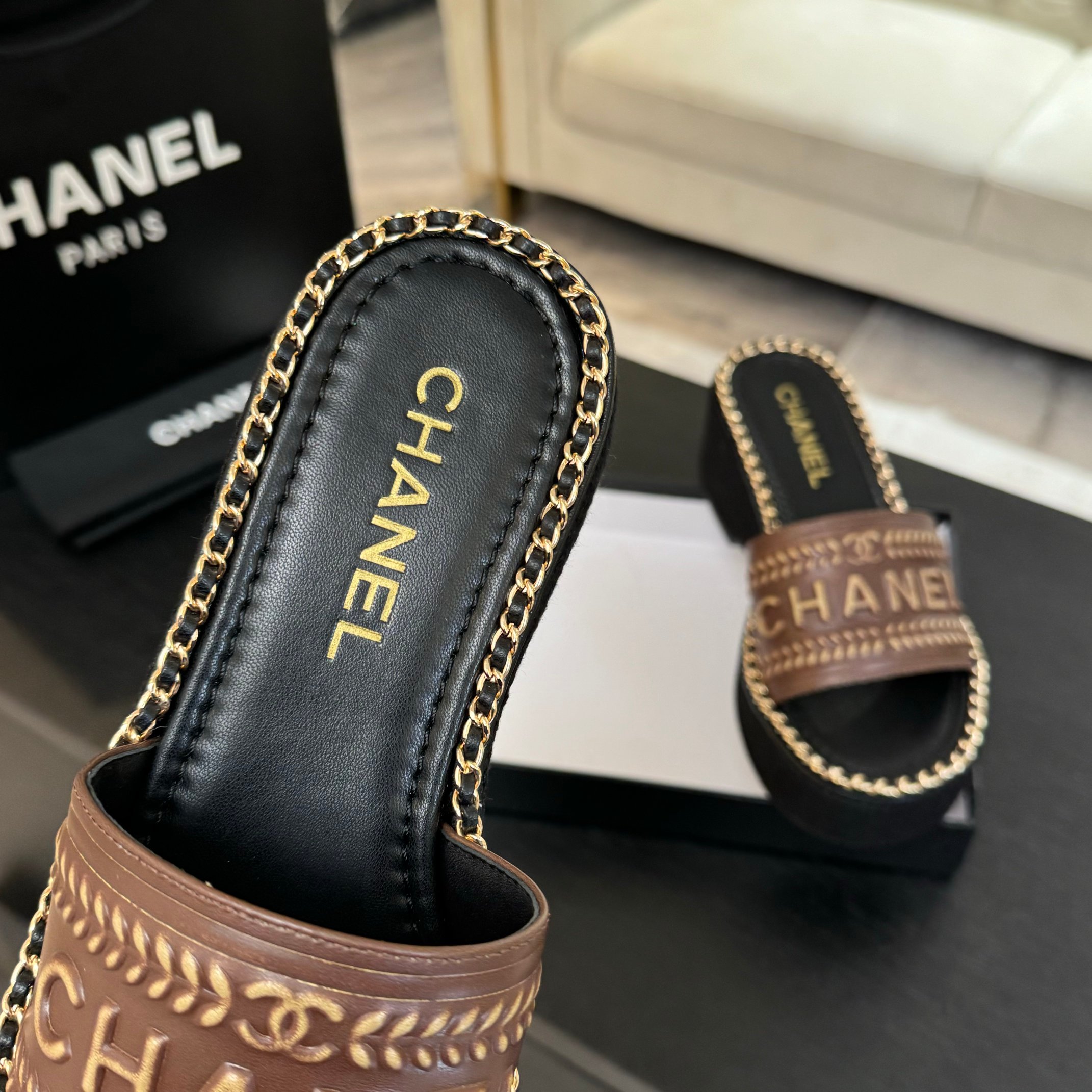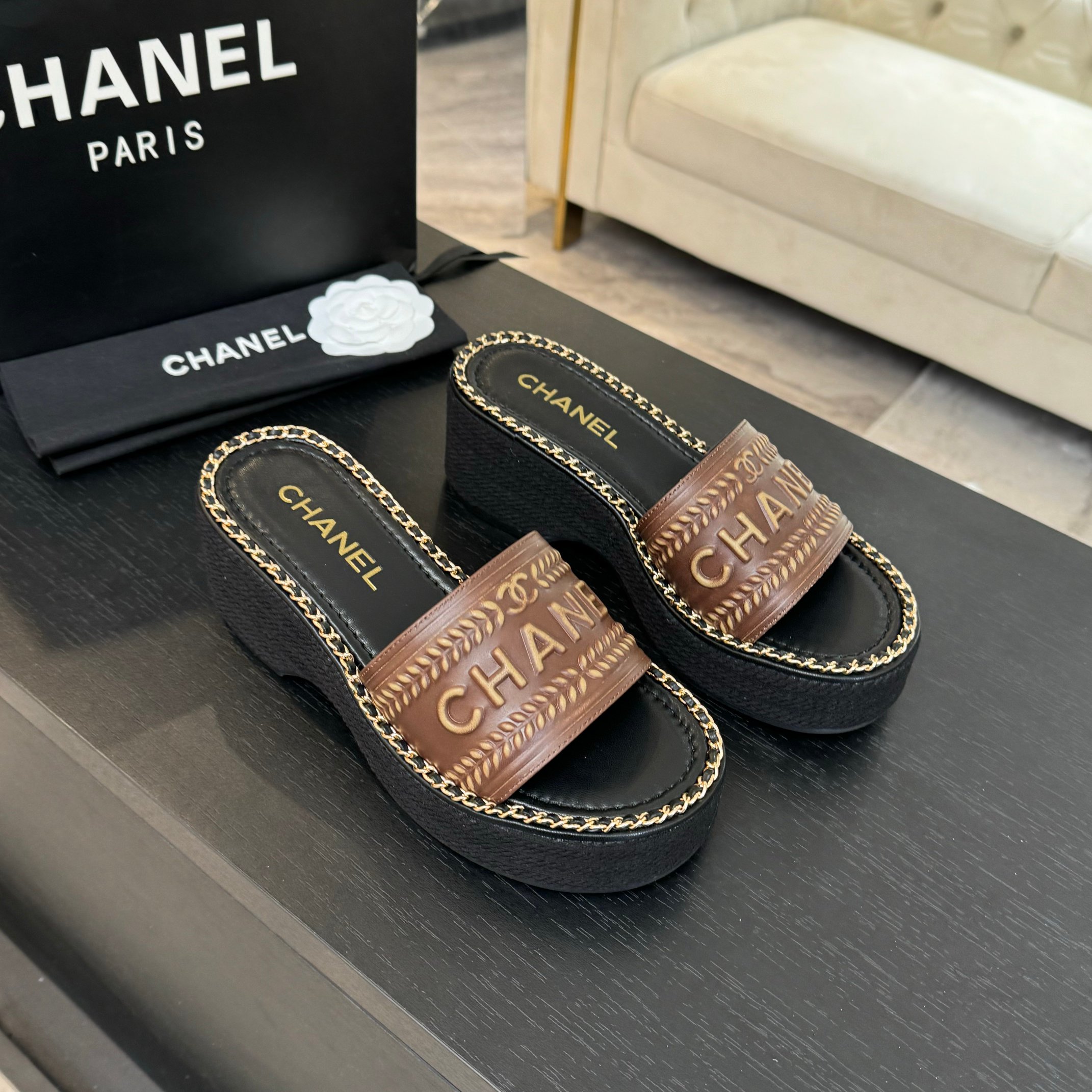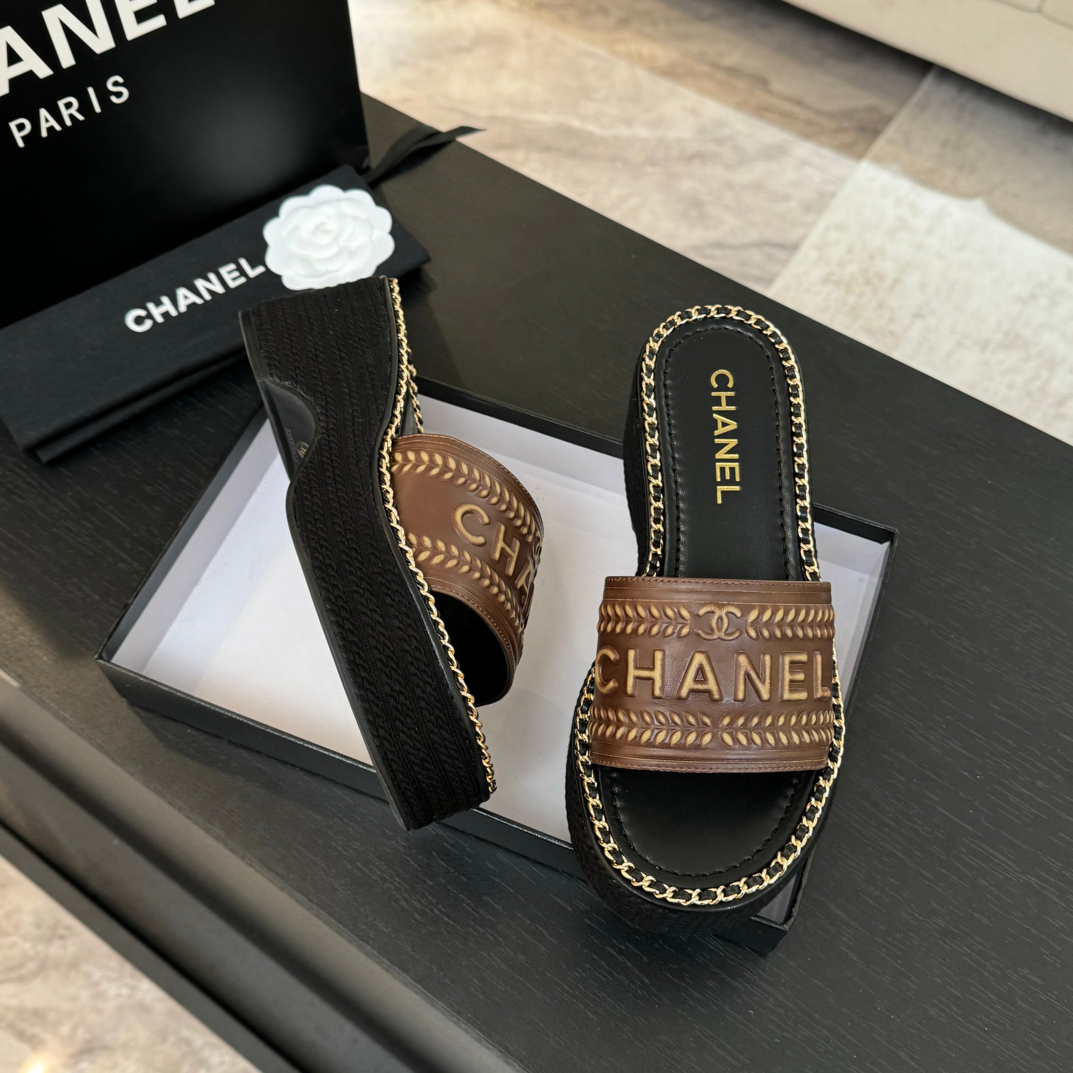 這款鞋子是AAAAA 1:1 質量(非常棒). 使用了和原版一模一樣的材料. 商標部分也保持了和香奈兒/Chanel一樣. 圖片拍攝是實物鞋子拍攝, 您所收到的實物保證和我們圖片一模一樣.