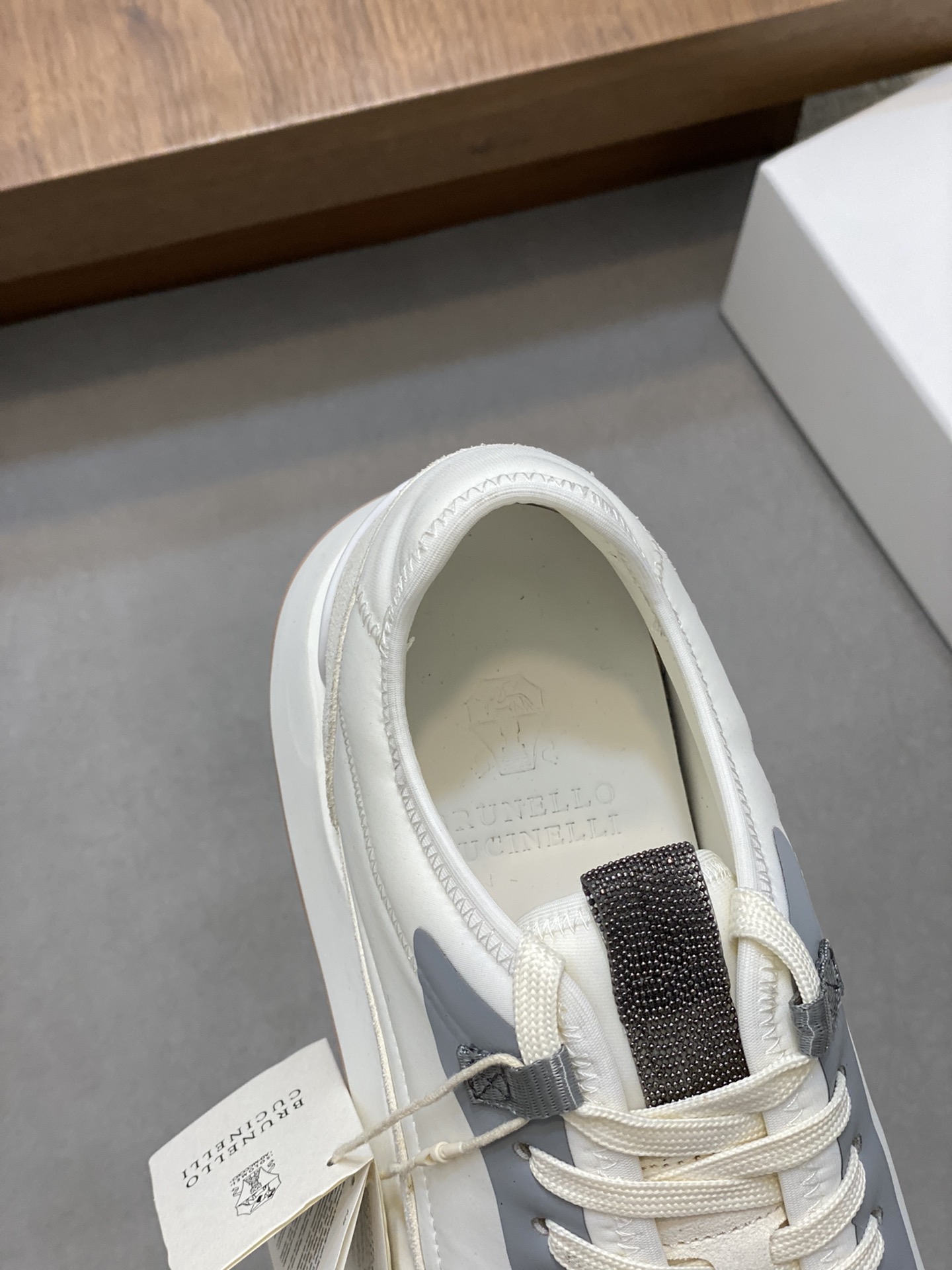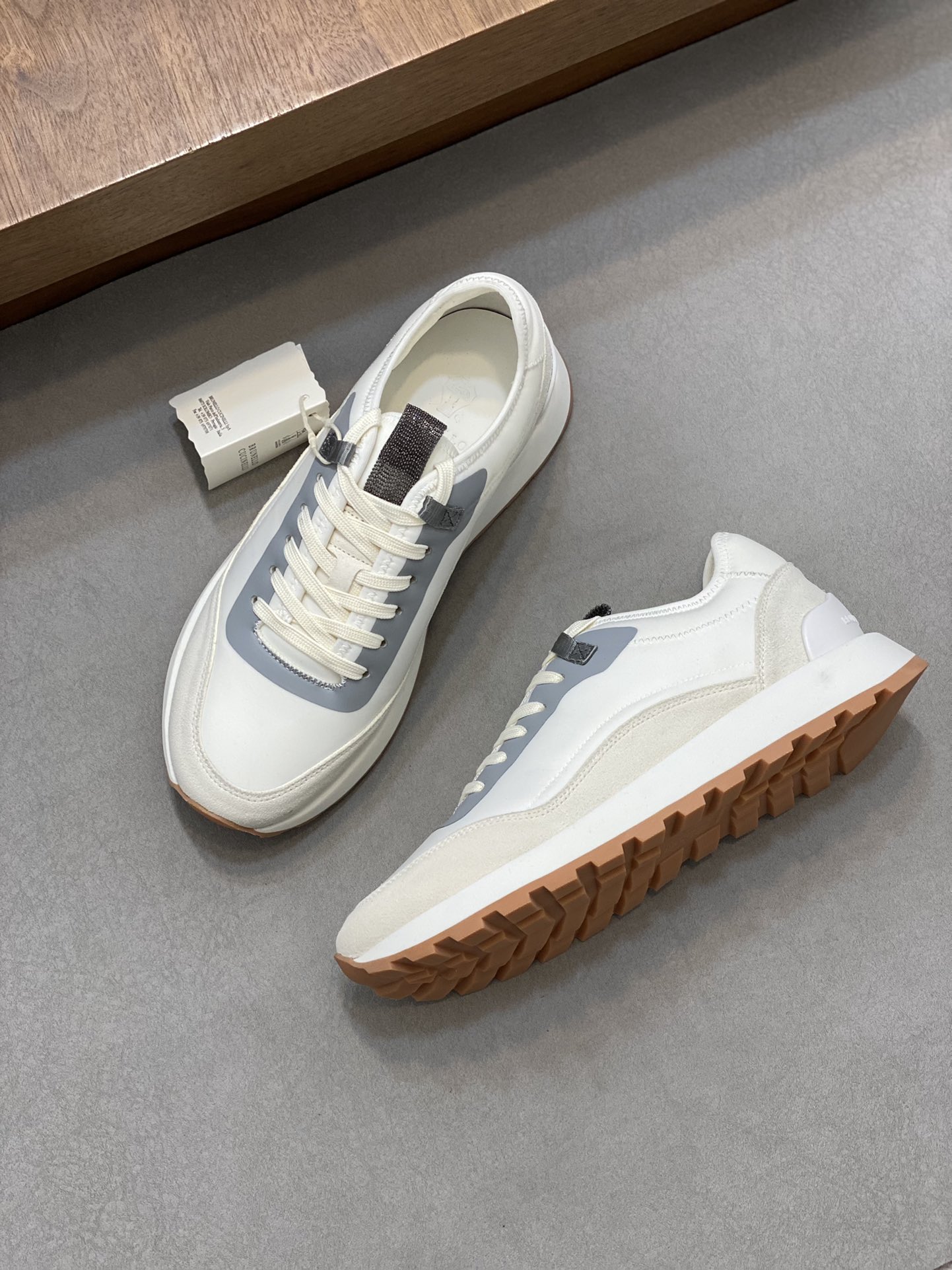 這款鞋子是AAAAA 1:1 質量(非常棒). 使用了和原版一模一樣的材料. 商標部分也保持了和Brunello Cucinelli一樣. 圖片拍攝是實物鞋子拍攝, 您所收到的實物保證和我們圖片一模一樣.