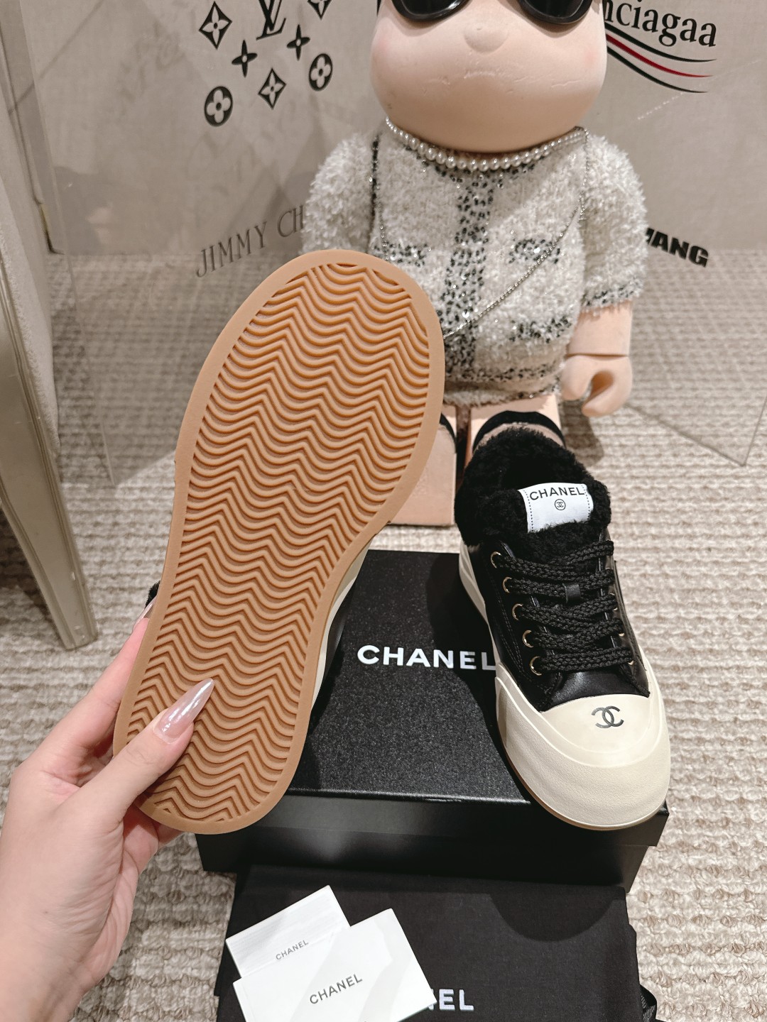 這款鞋子是AAAAA 1:1 質量(非常棒). 使用了和原版一模一樣的材料. 商標部分也保持了和香奈兒/Chanel一樣. 圖片拍攝是實物鞋子拍攝, 您所收到的實物保證和我們圖片一模一樣.