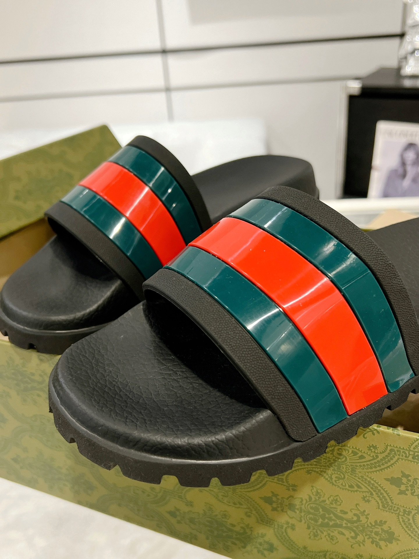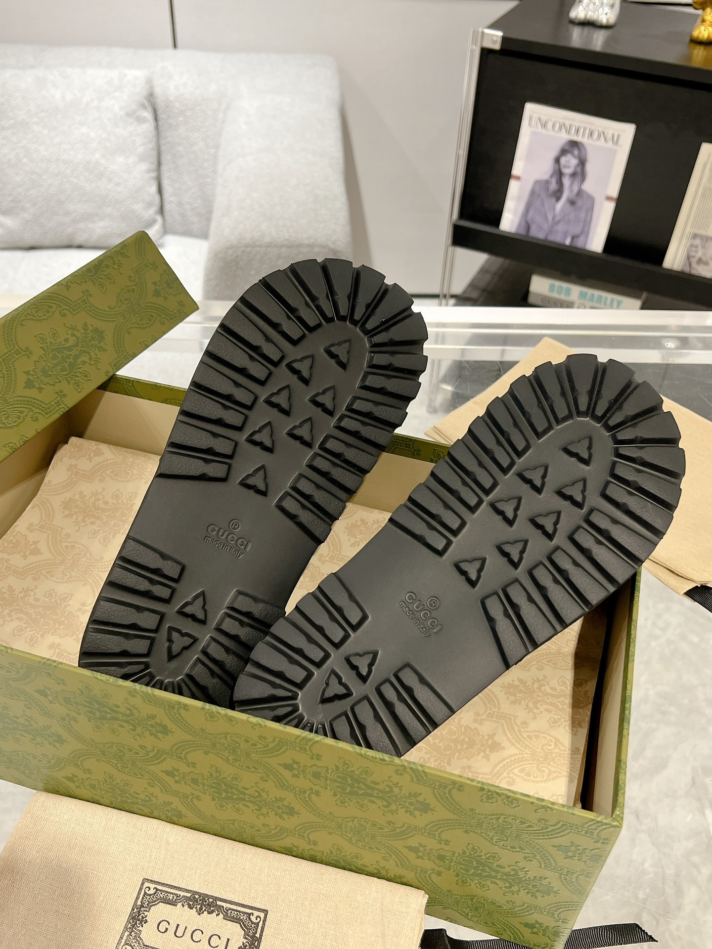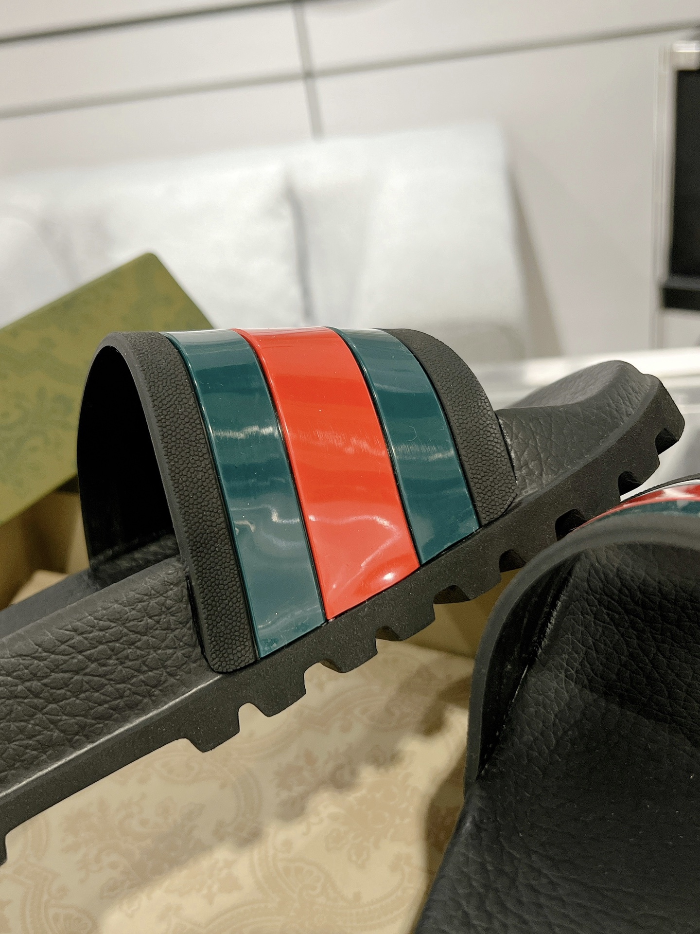 這款鞋子是AAAAA 1:1 質量(非常棒). 使用了和原版一模一樣的材料. 商標部分也保持了和古奇/Gucci一樣. 圖片拍攝是實物鞋子拍攝, 您所收到的實物保證和我們圖片一模一樣.