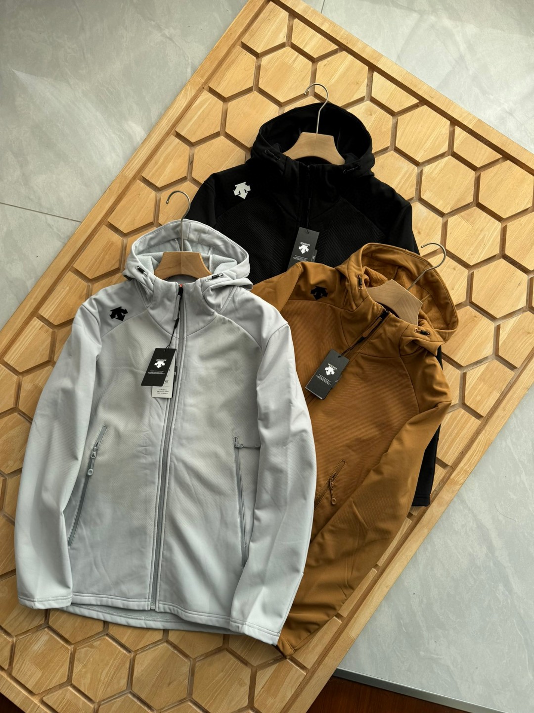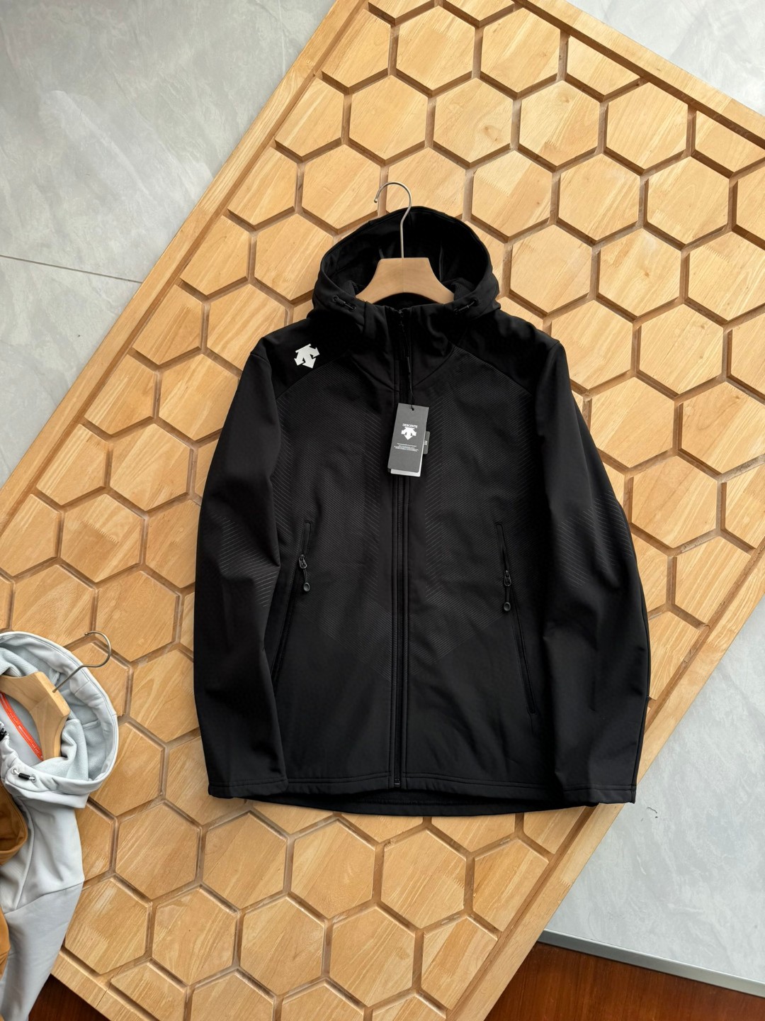 這款衣服是AAAAA 1:1 質量(非常棒). 使用了和原版一模一樣的材料. 商標部分也保持了和Descente一樣. 圖片拍攝是實物衣服拍攝, 您所收到的實物保證和我們圖片一模一樣.