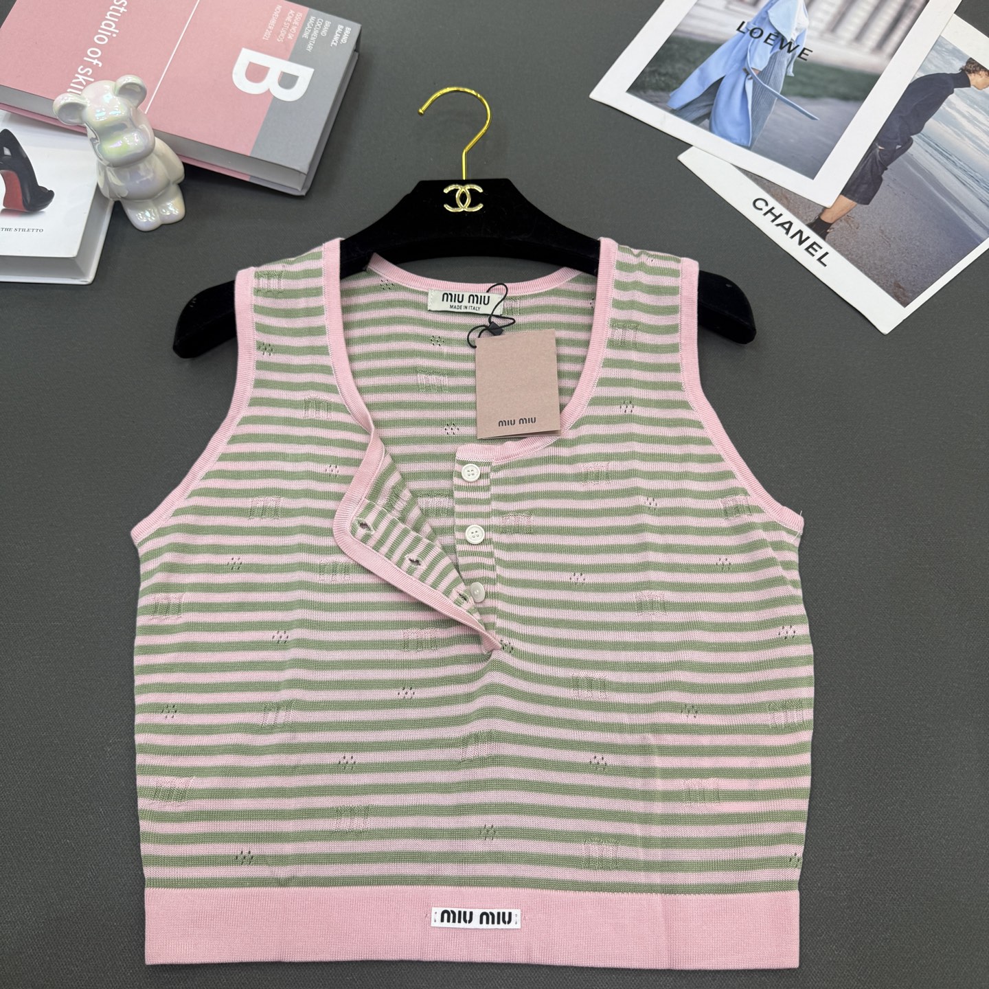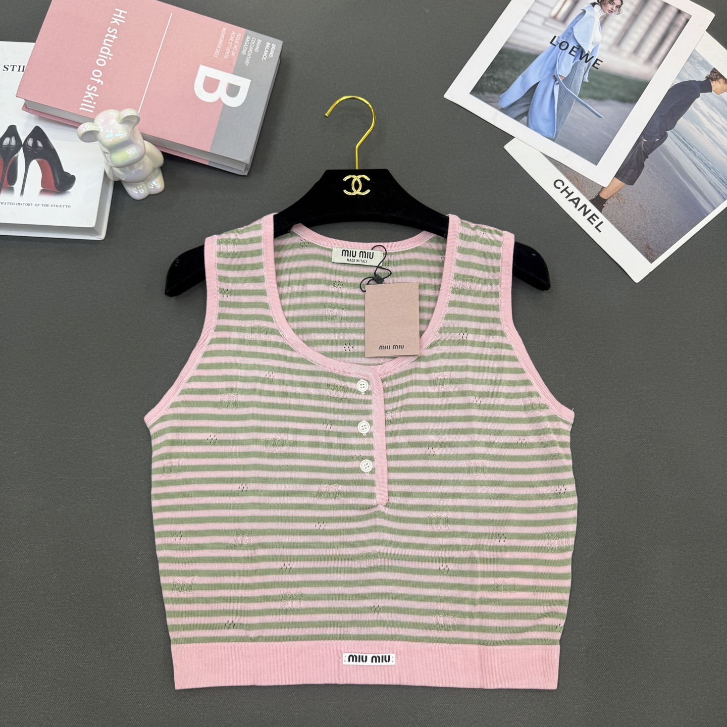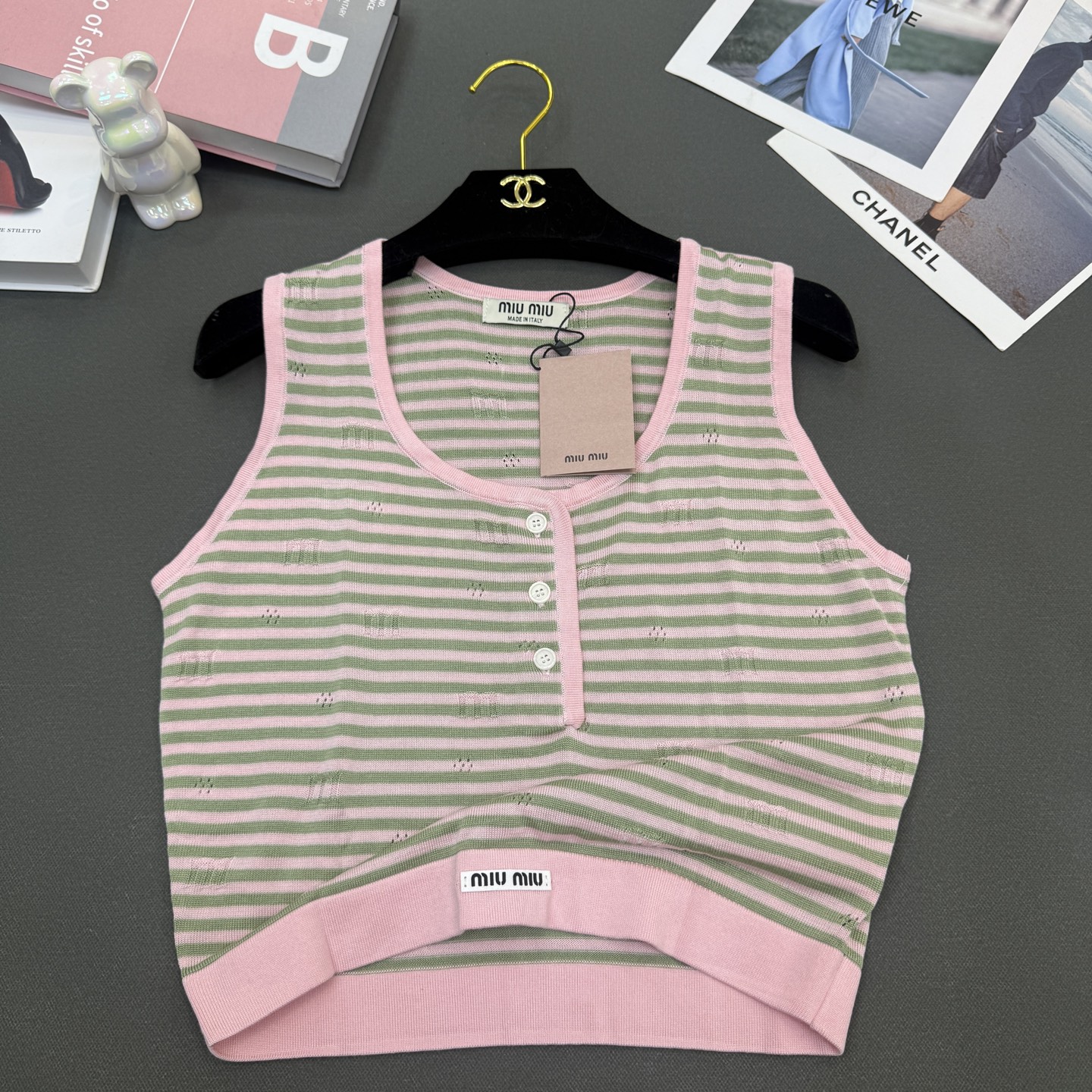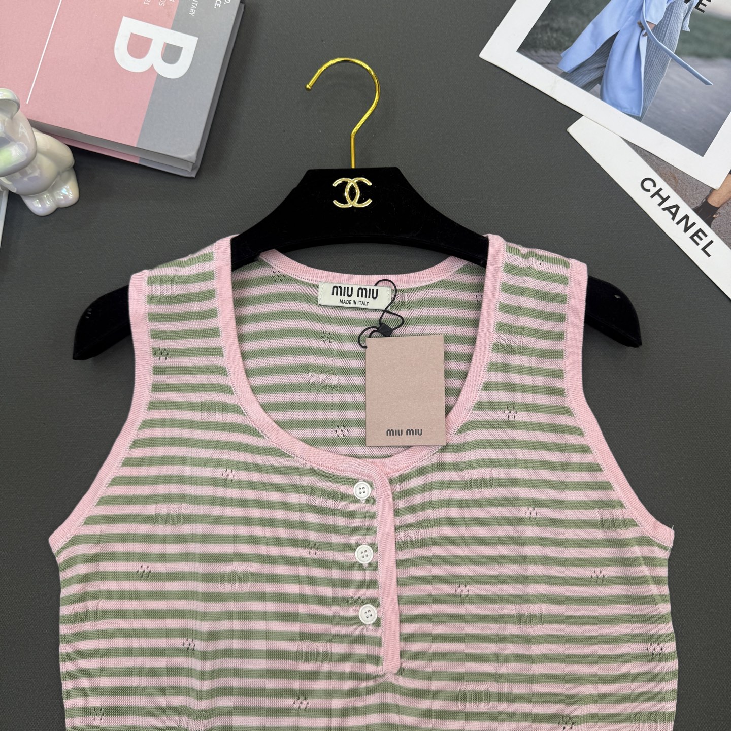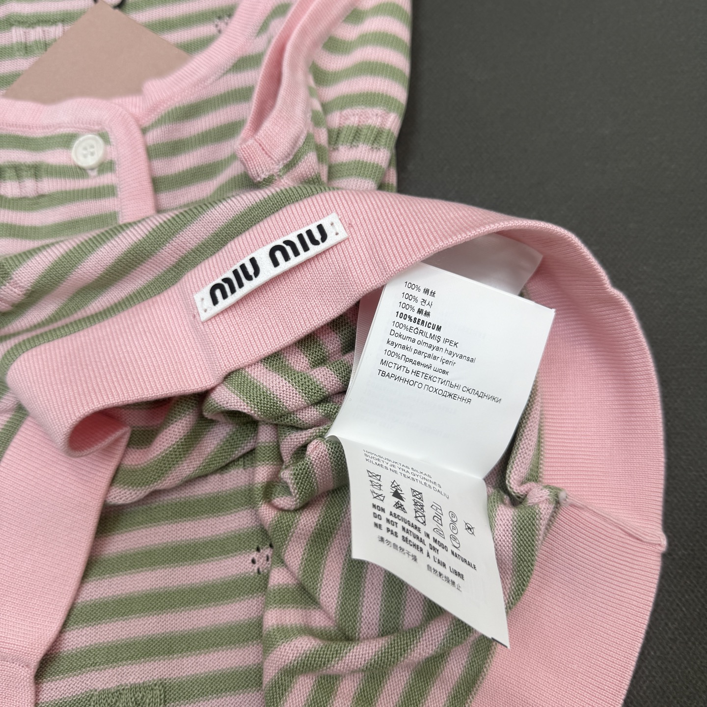 這款衣服是AAAAA 1:1 質量(非常棒). 使用了和原版一模一樣的材料. 商標部分也保持了和繆繆/Miu Miu一樣. 圖片拍攝是實物衣服拍攝, 您所收到的實物保證和我們圖片一模一樣.
