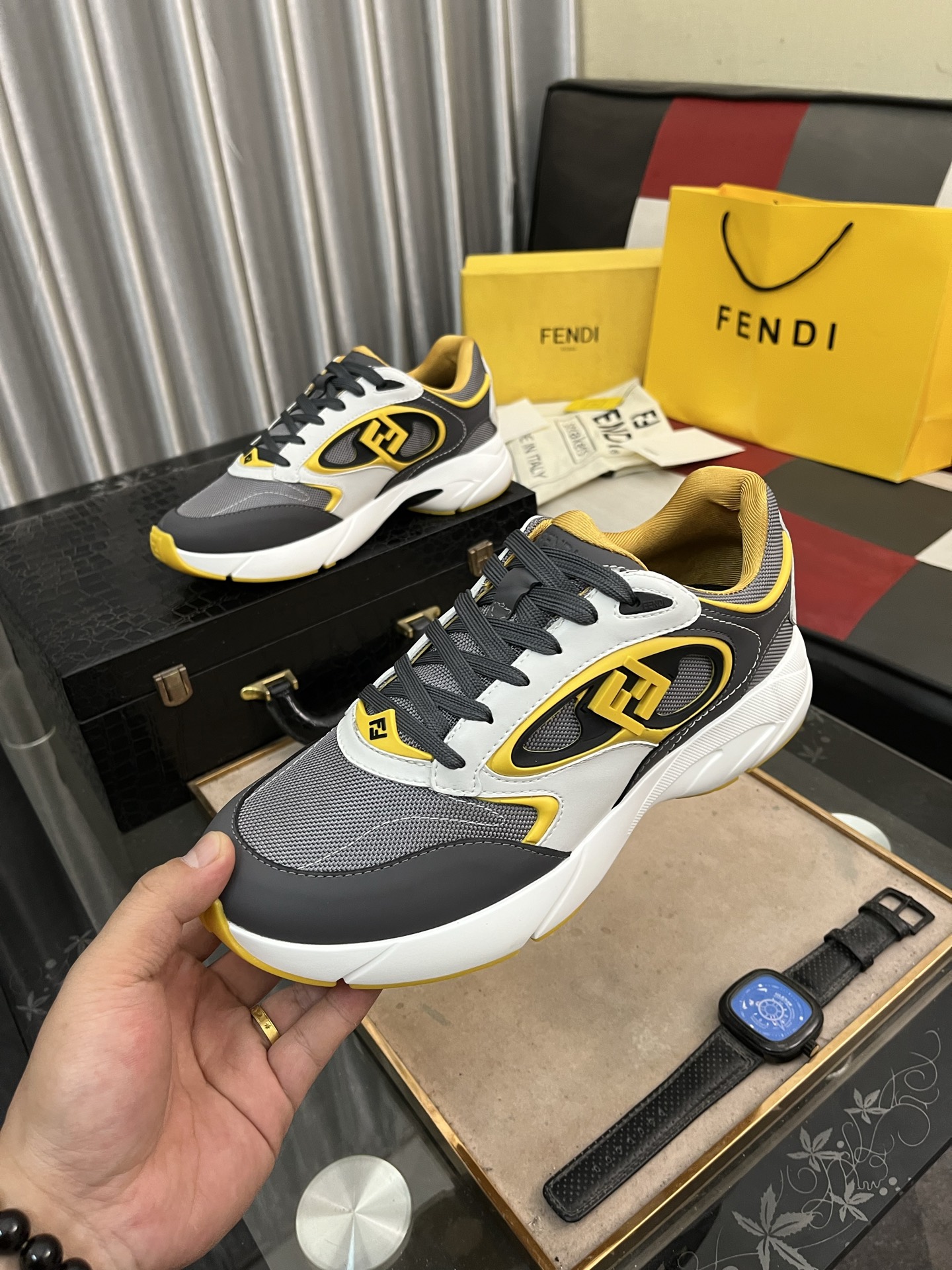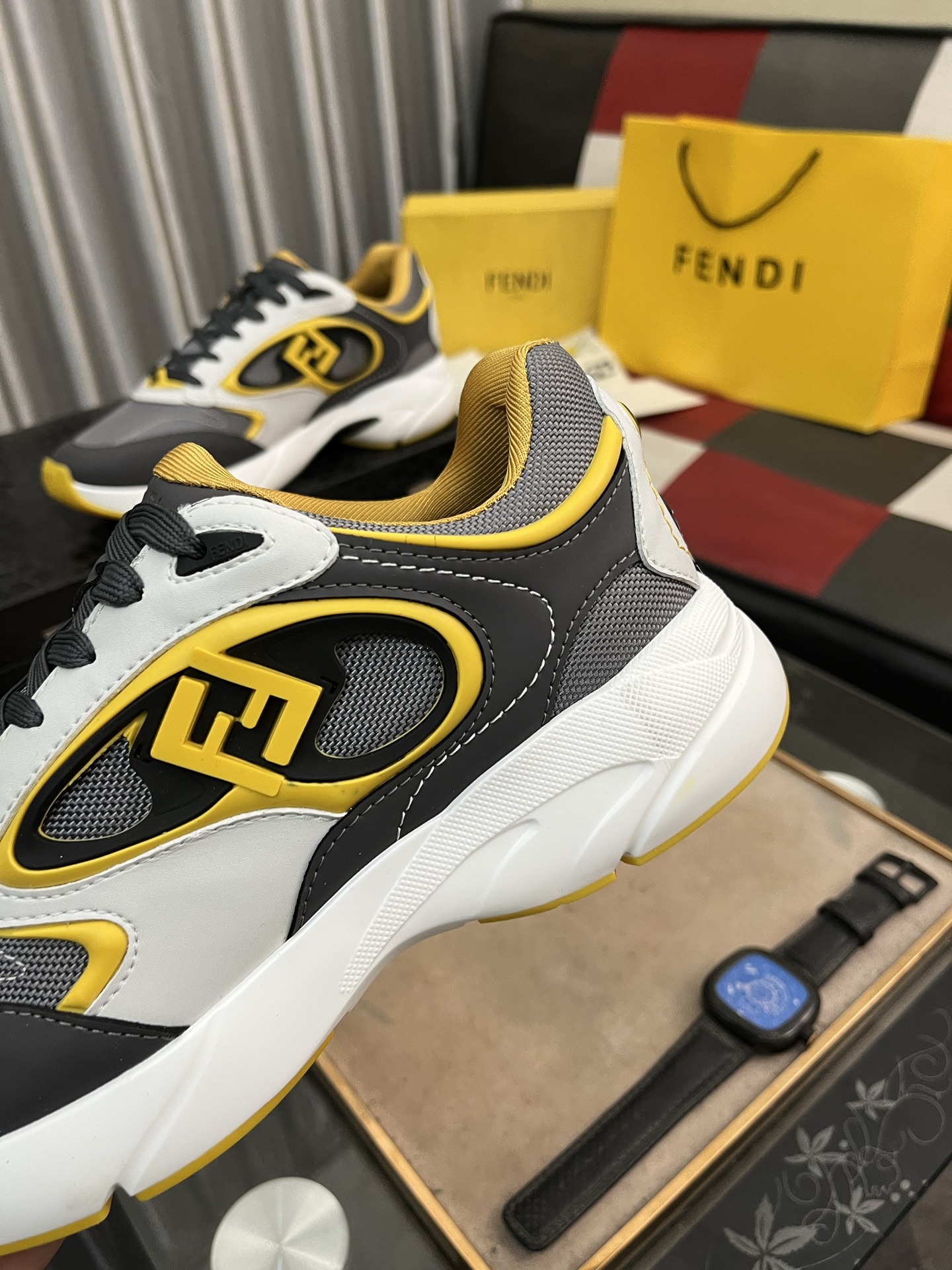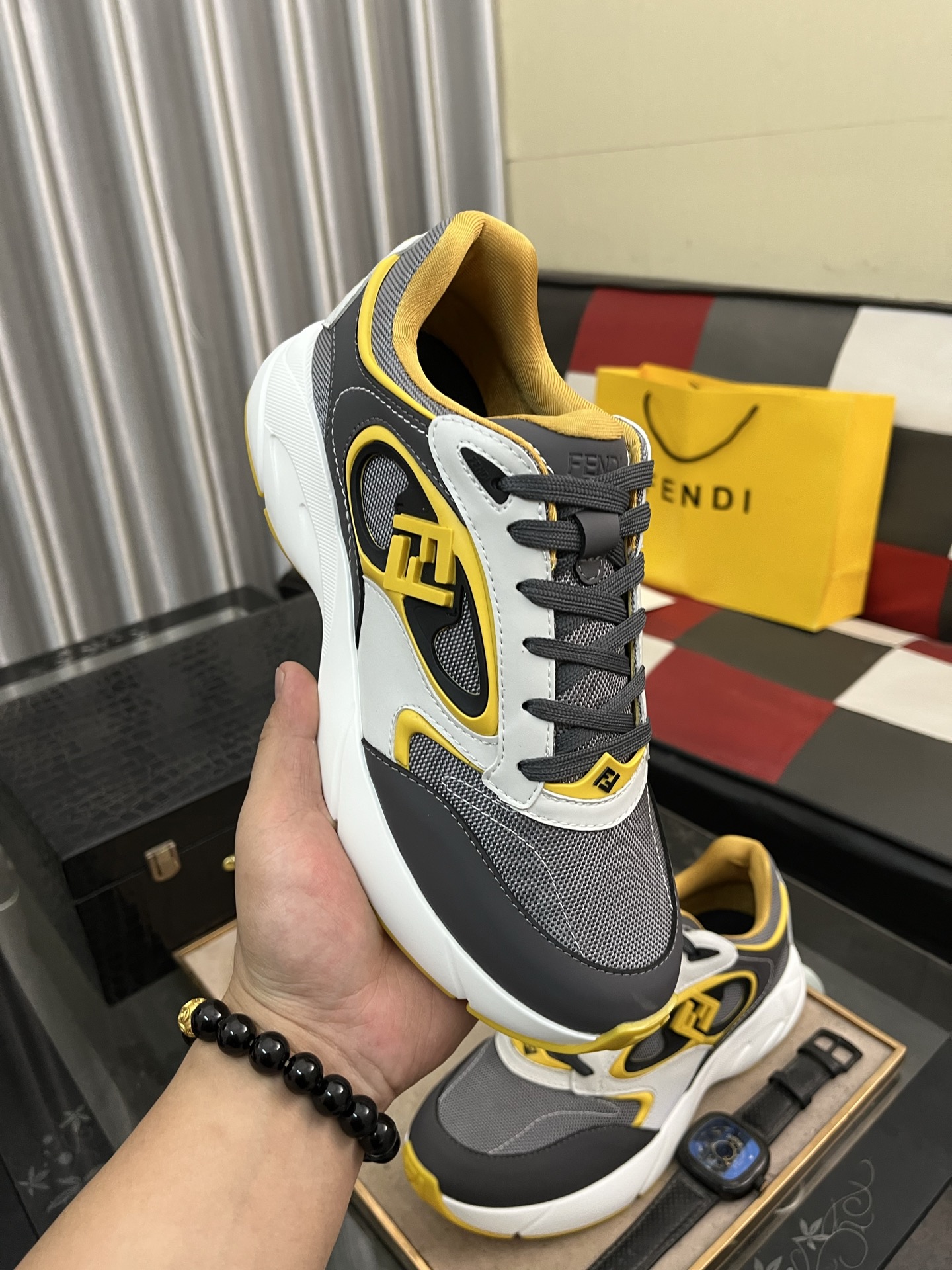 這款鞋子是AAAAA 1:1 質量(非常棒). 使用了和原版一模一樣的材料. 商標部分也保持了和芬迪/Fendi一樣. 圖片拍攝是實物鞋子拍攝, 您所收到的實物保證和我們圖片一模一樣.