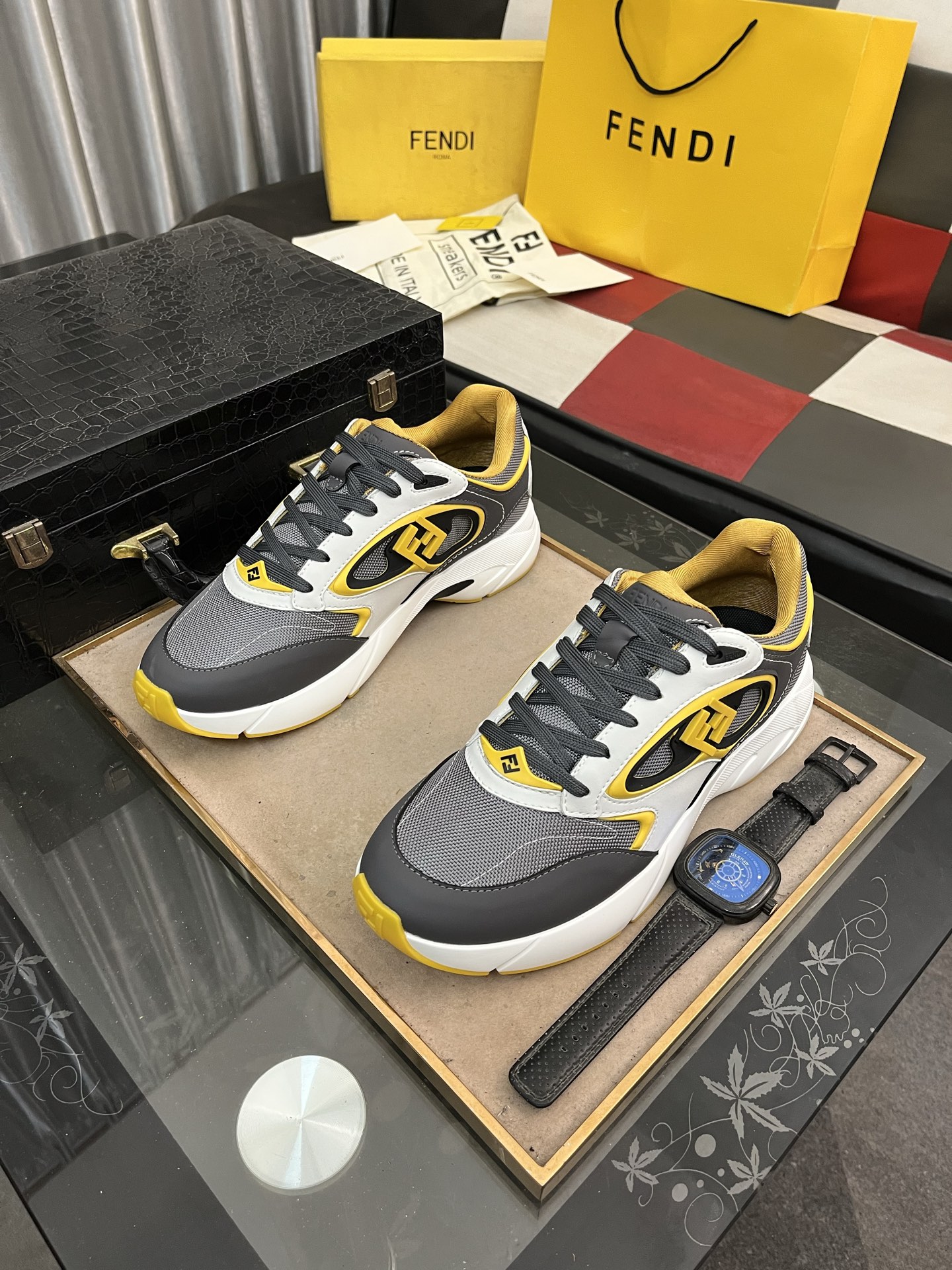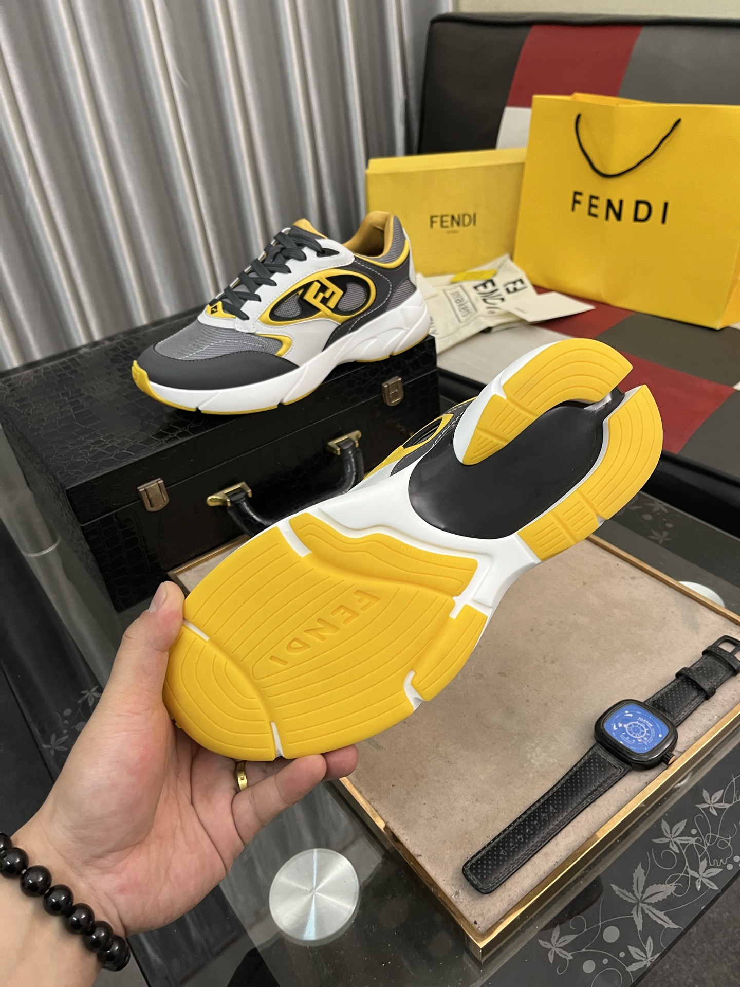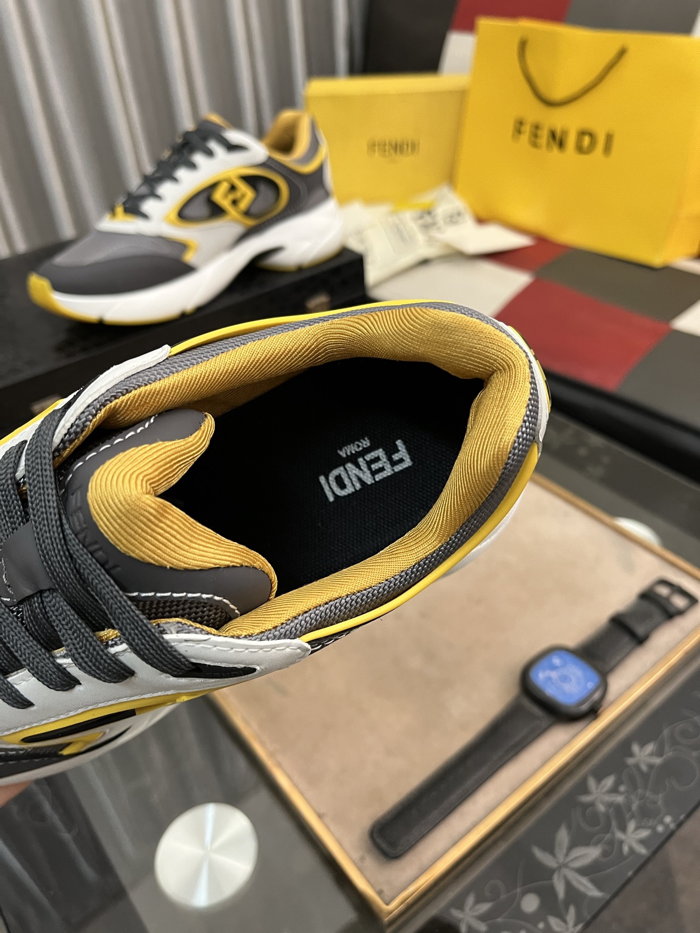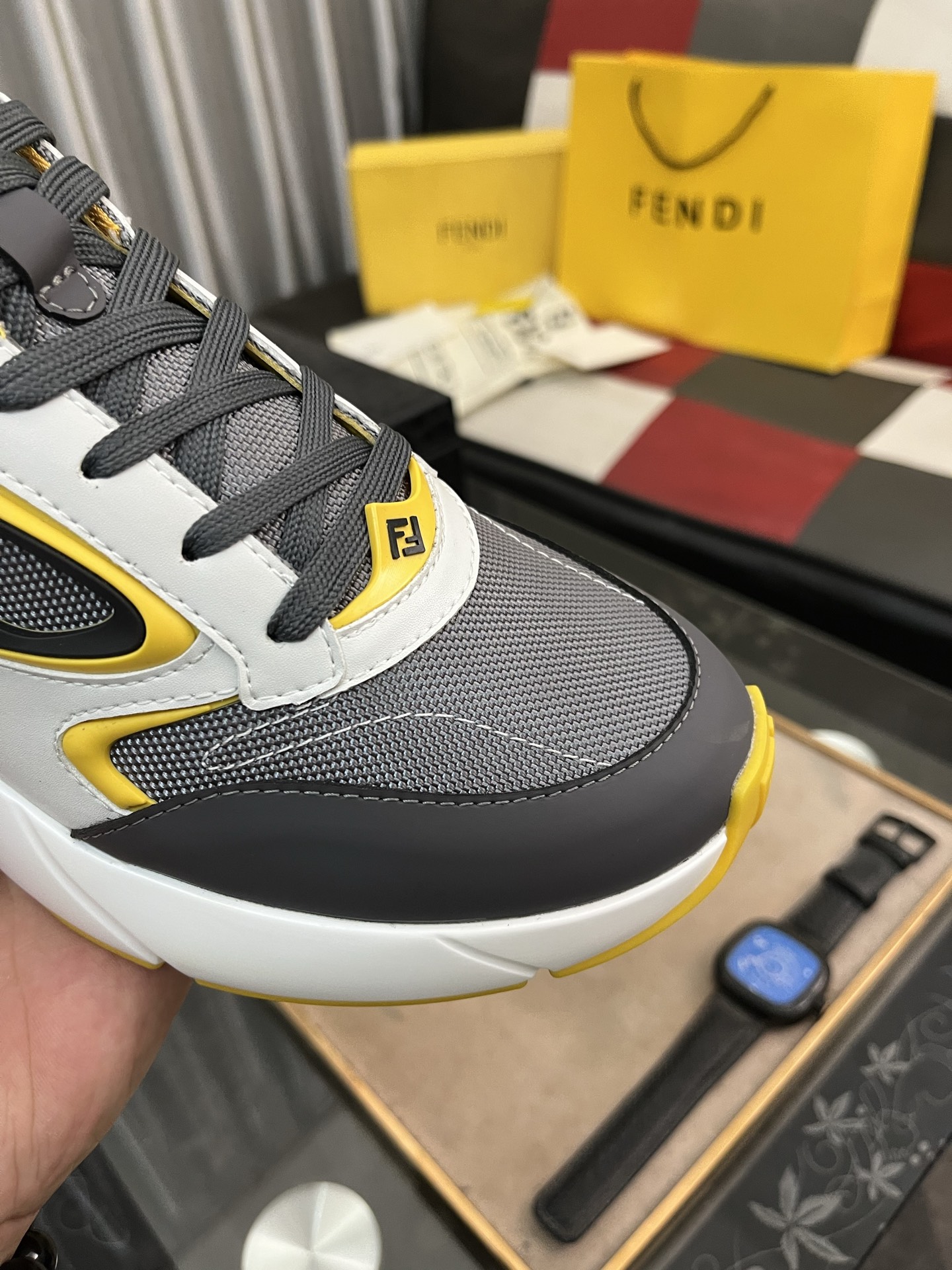 這款鞋子是AAAAA 1:1 質量(非常棒). 使用了和原版一模一樣的材料. 商標部分也保持了和芬迪/Fendi一樣. 圖片拍攝是實物鞋子拍攝, 您所收到的實物保證和我們圖片一模一樣.