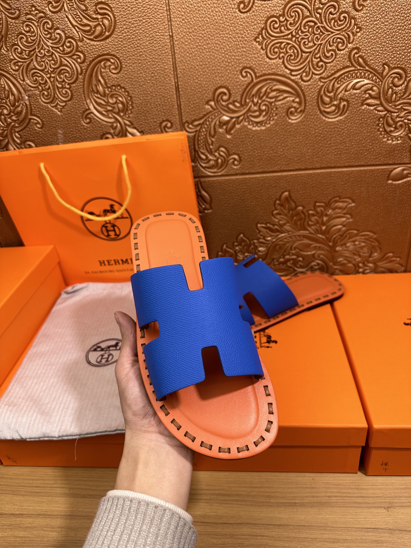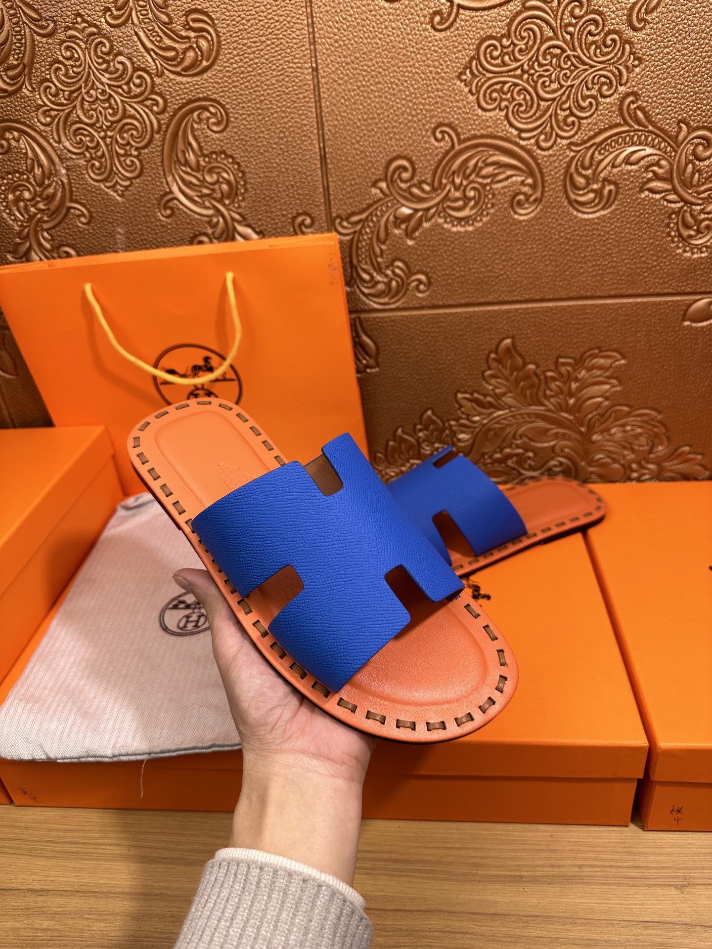 這款鞋子是AAAAA 1:1 質量(非常棒). 使用了和原版一模一樣的材料. 商標部分也保持了和愛馬仕/Hermes一樣. 圖片拍攝是實物鞋子拍攝, 您所收到的實物保證和我們圖片一模一樣.