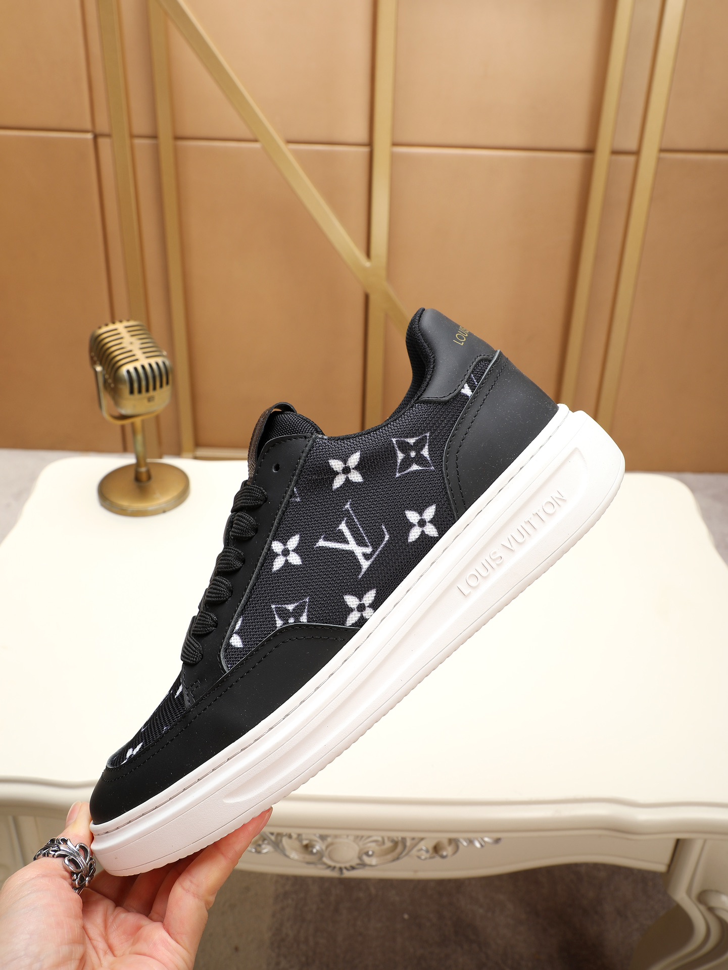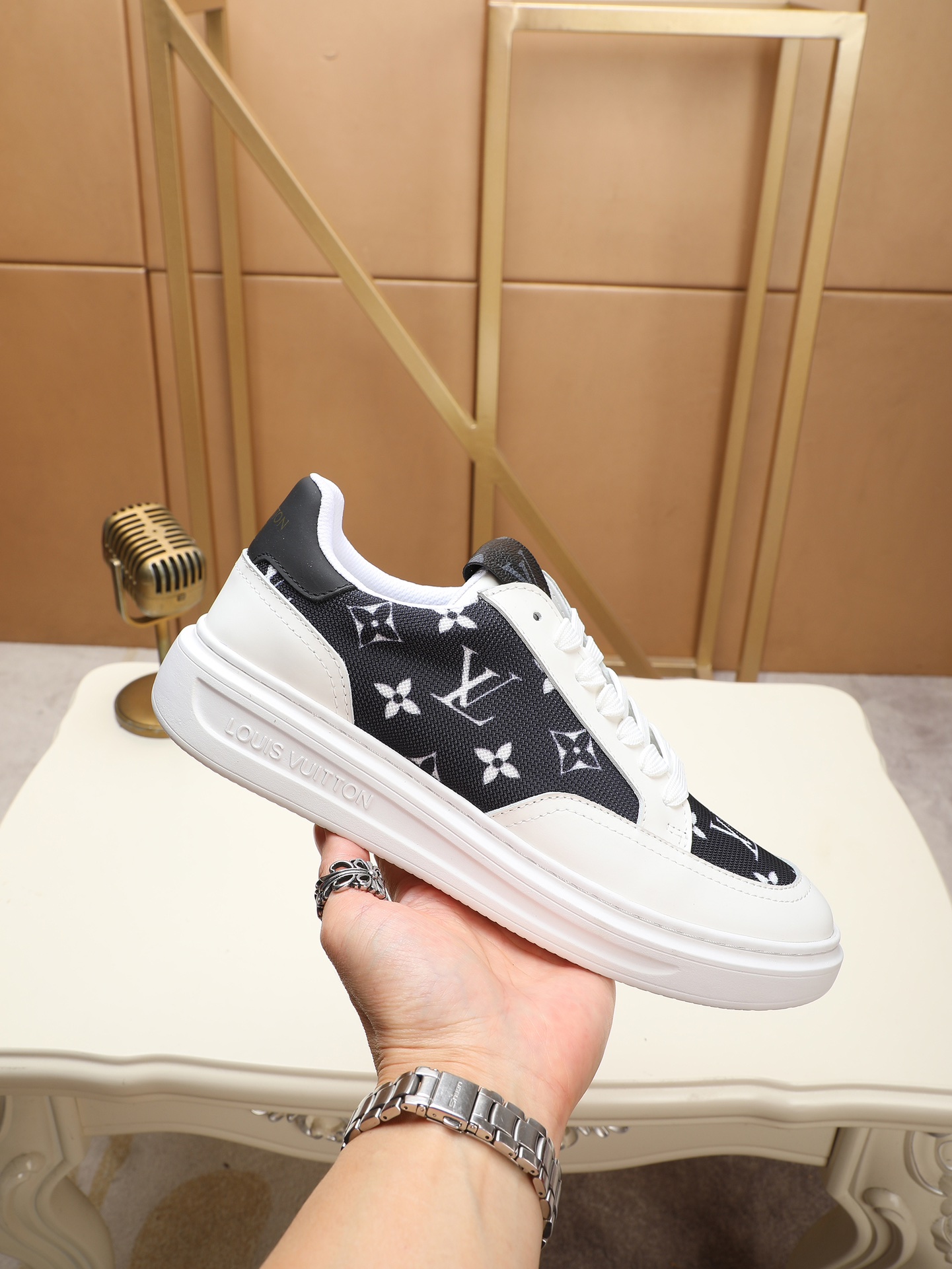 這款鞋子是AAAAA 1:1 質量(非常棒). 使用了和原版一模一樣的材料. 商標部分也保持了和路易威登/Louis Vuitton一樣. 圖片拍攝是實物鞋子拍攝, 您所收到的實物保證和我們圖片一模一樣.