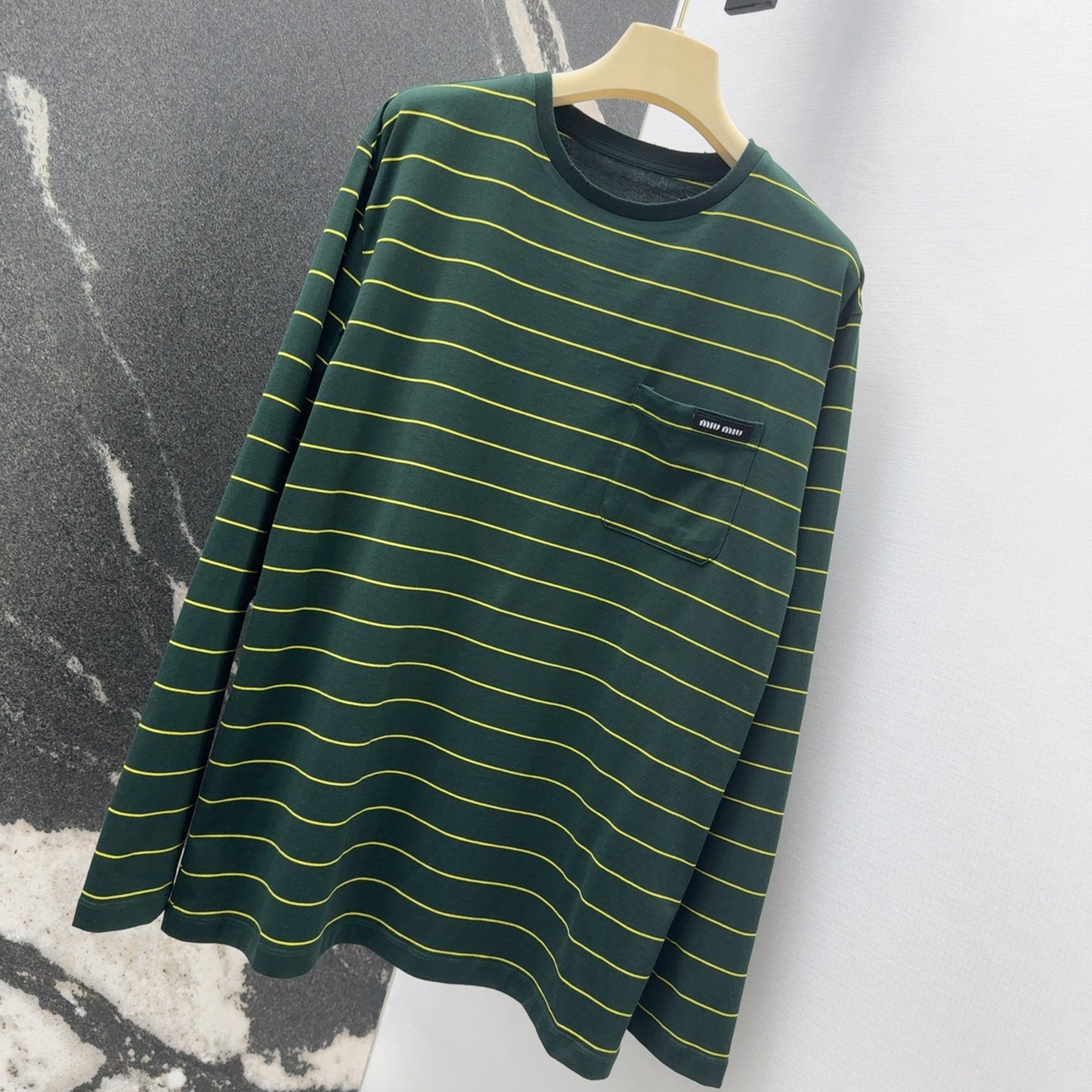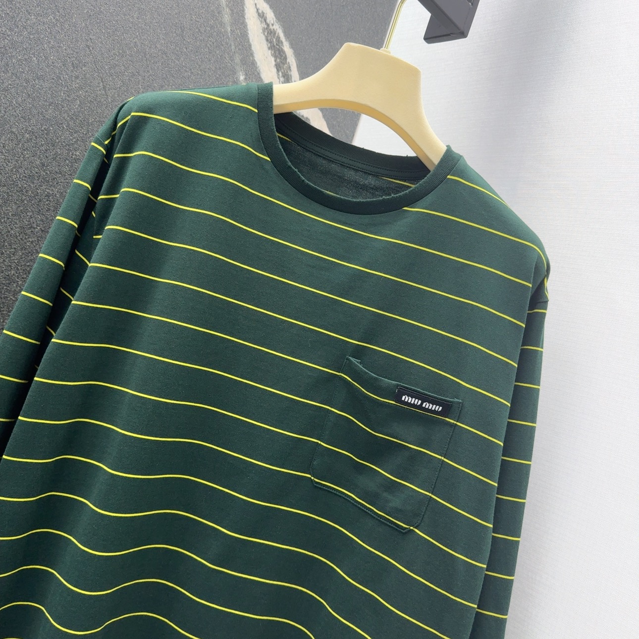 這款衣服是AAAAA 1:1 質量(非常棒). 使用了和原版一模一樣的材料. 商標部分也保持了和繆繆/Miu Miu一樣. 圖片拍攝是實物衣服拍攝, 您所收到的實物保證和我們圖片一模一樣.