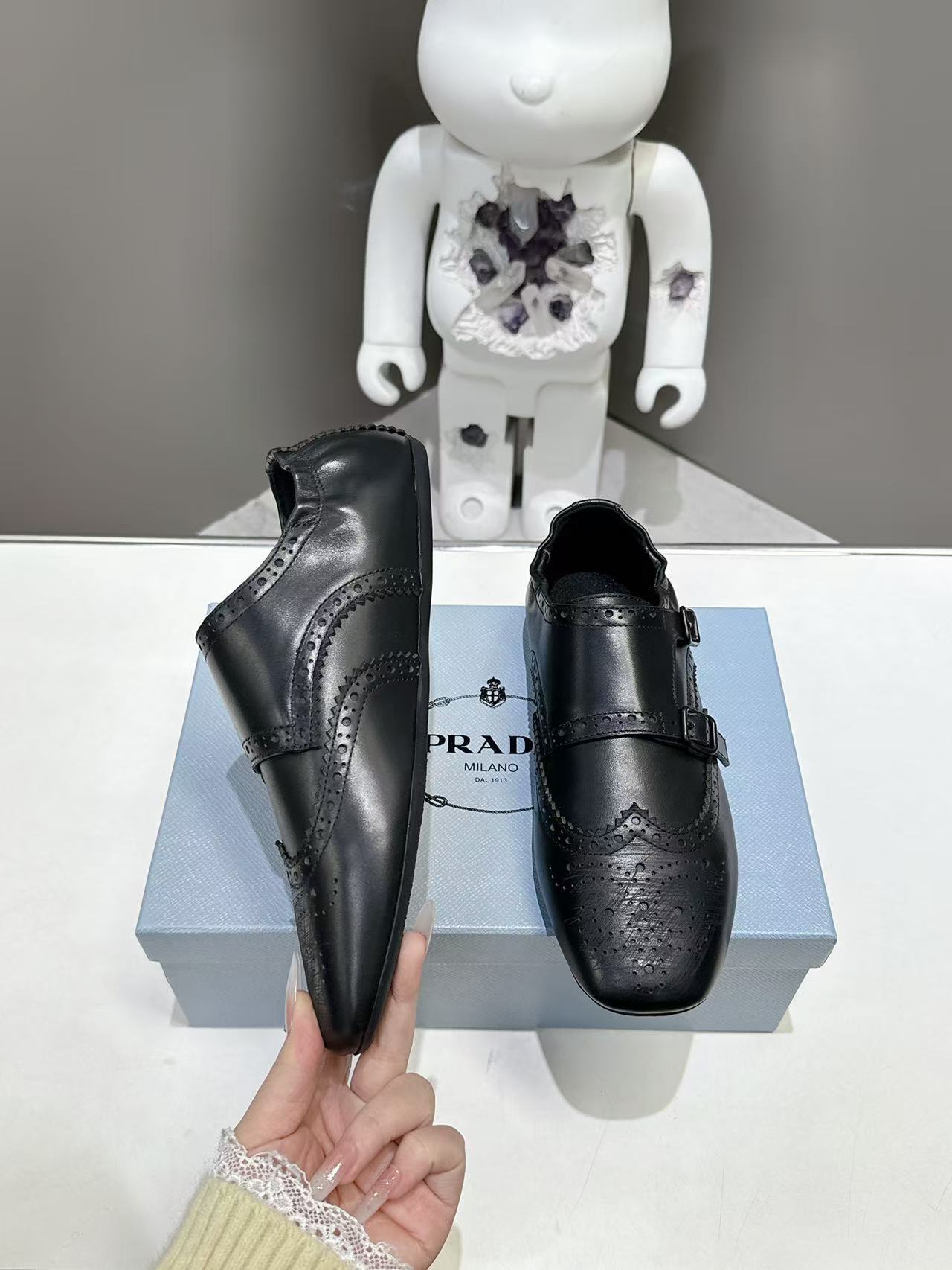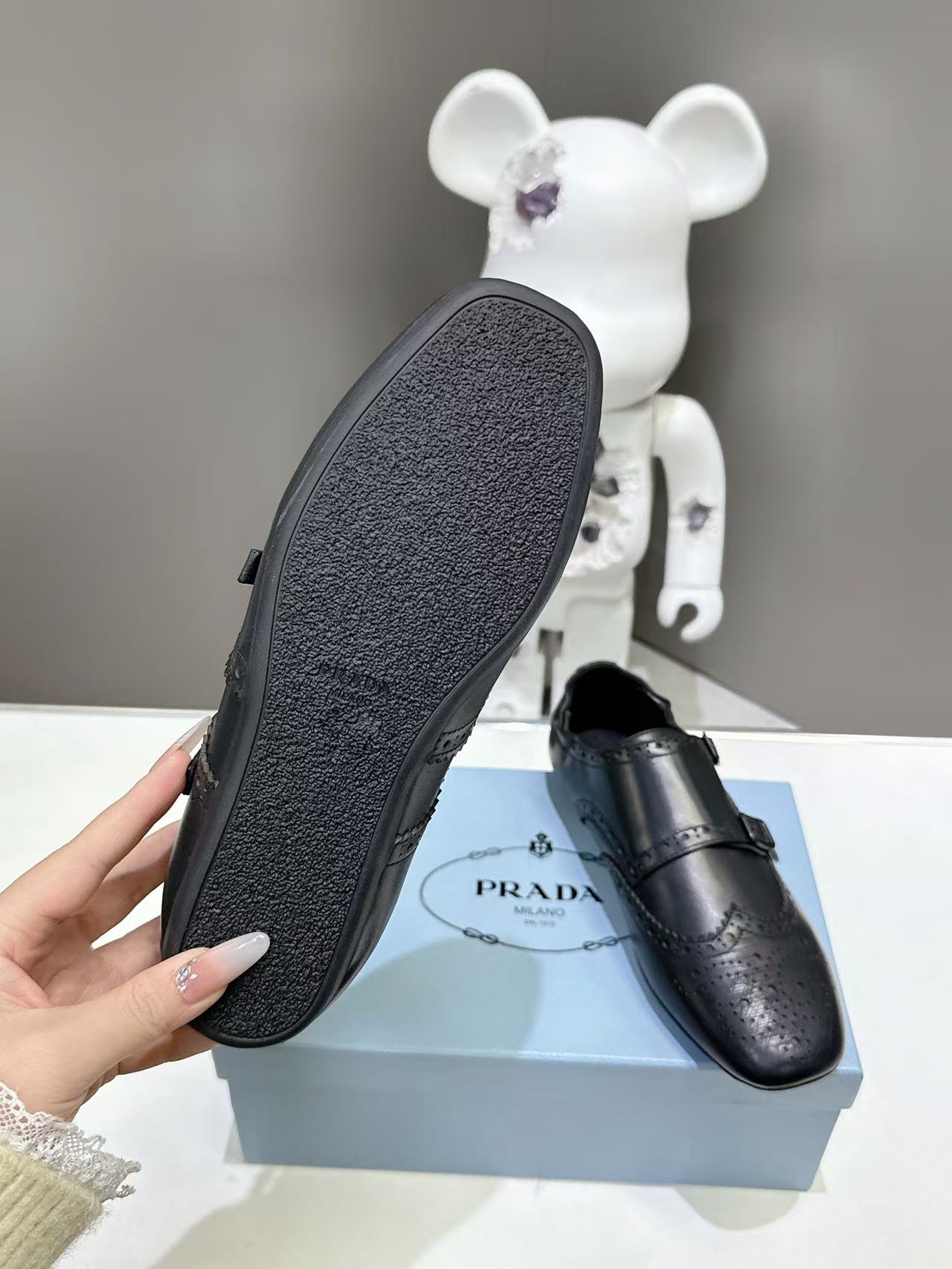 這款鞋子是AAAAA 1:1 質量(非常棒). 使用了和原版一模一樣的材料. 商標部分也保持了和普拉達/Prada一樣. 圖片拍攝是實物鞋子拍攝, 您所收到的實物保證和我們圖片一模一樣.