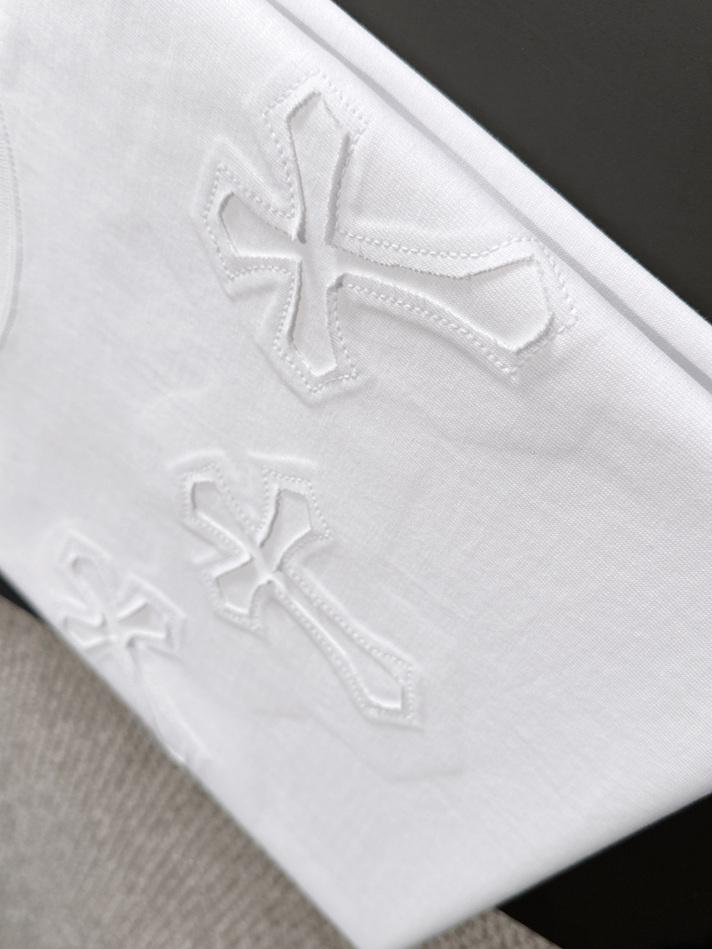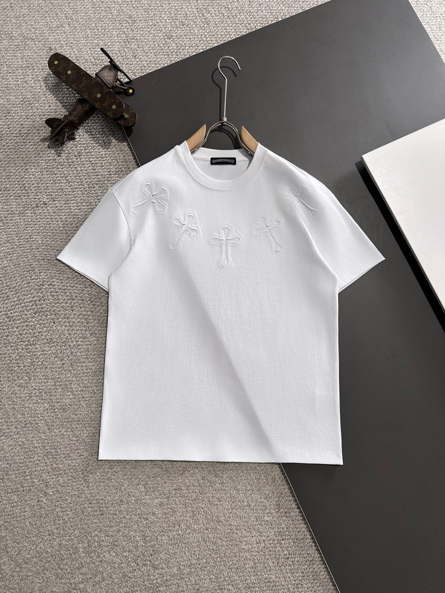 這款衣服是AAAAA 1:1 質量(非常棒). 使用了和原版一模一樣的材料. 商標部分也保持了和鉻心/Chrome Hearts一樣. 圖片拍攝是實物衣服拍攝, 您所收到的實物保證和我們圖片一模一樣.