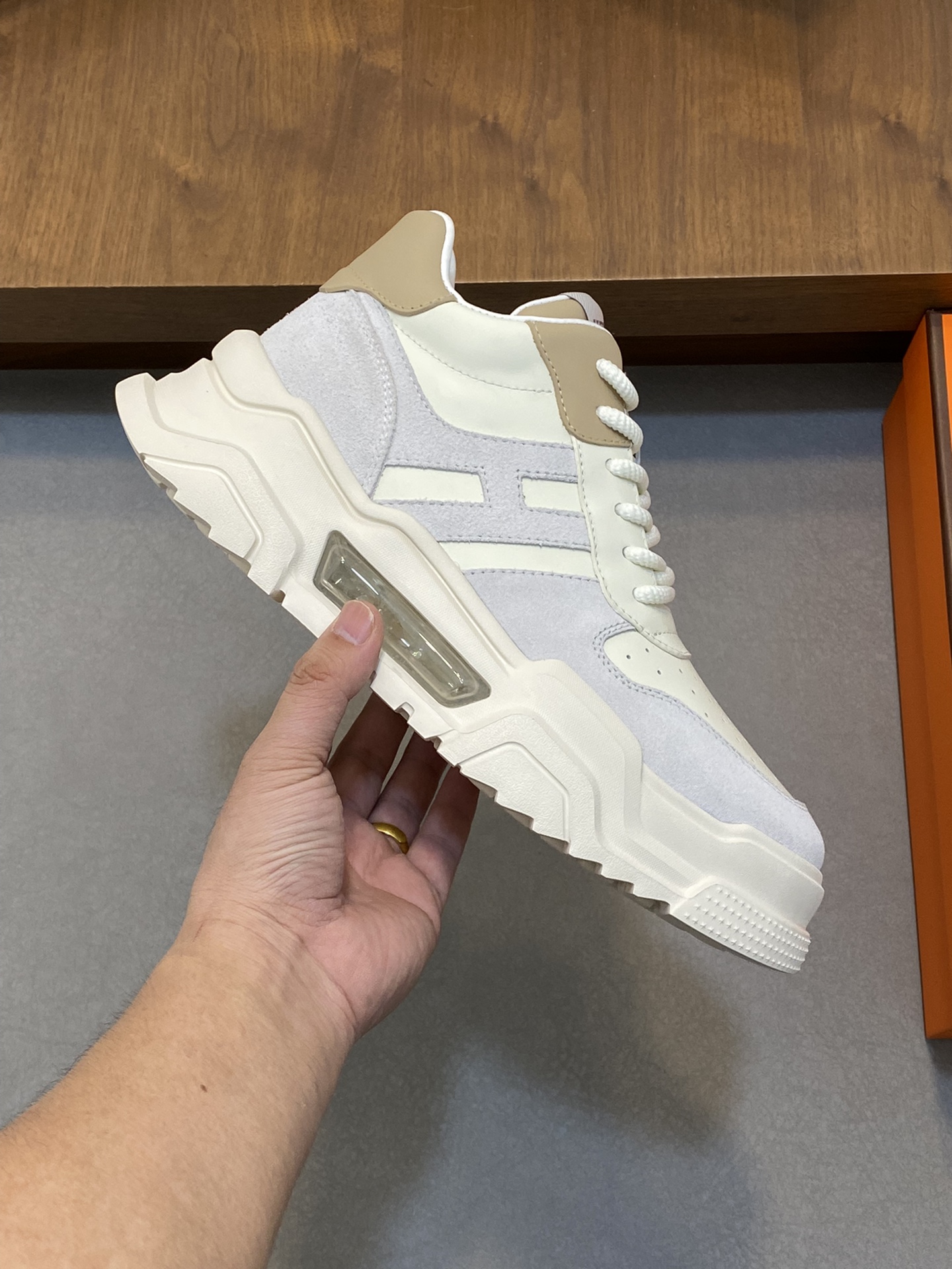 這款鞋子是AAAAA 1:1 質量(非常棒). 使用了和原版一模一樣的材料. 商標部分也保持了和愛馬仕/Hermes一樣. 圖片拍攝是實物鞋子拍攝, 您所收到的實物保證和我們圖片一模一樣.