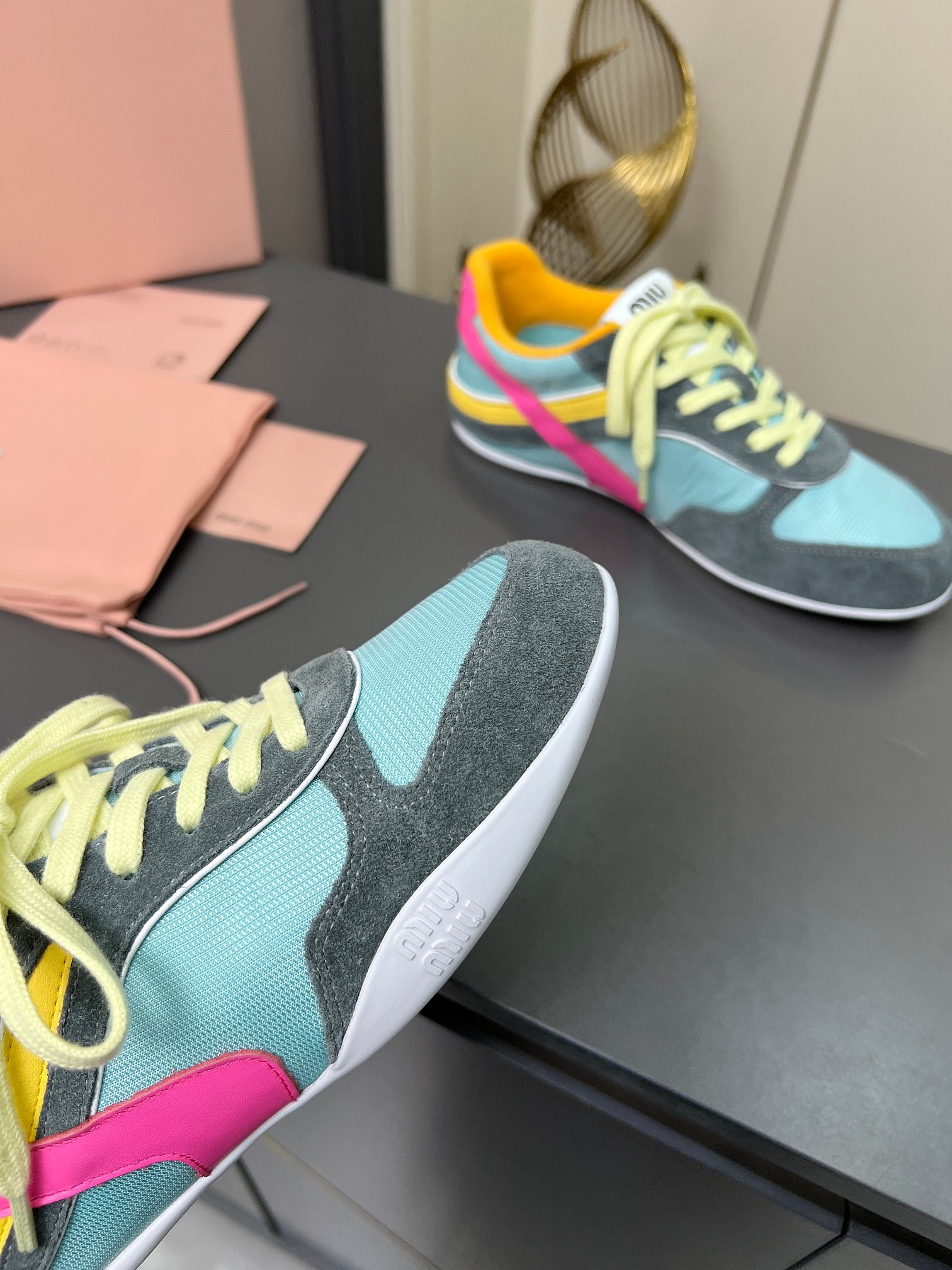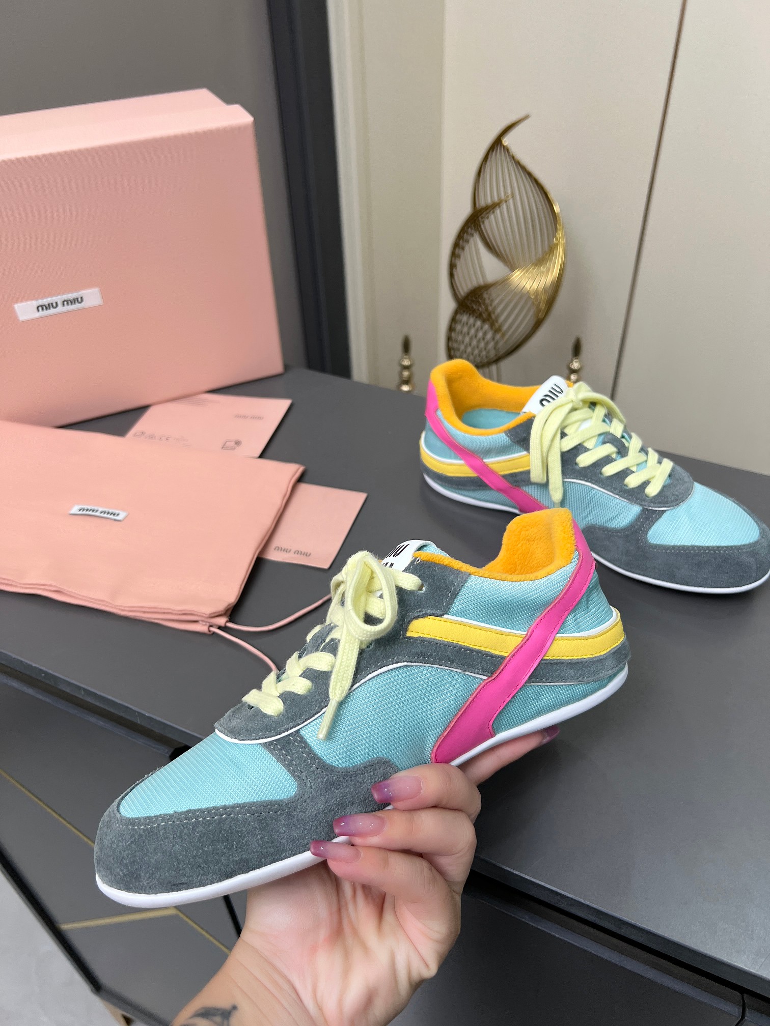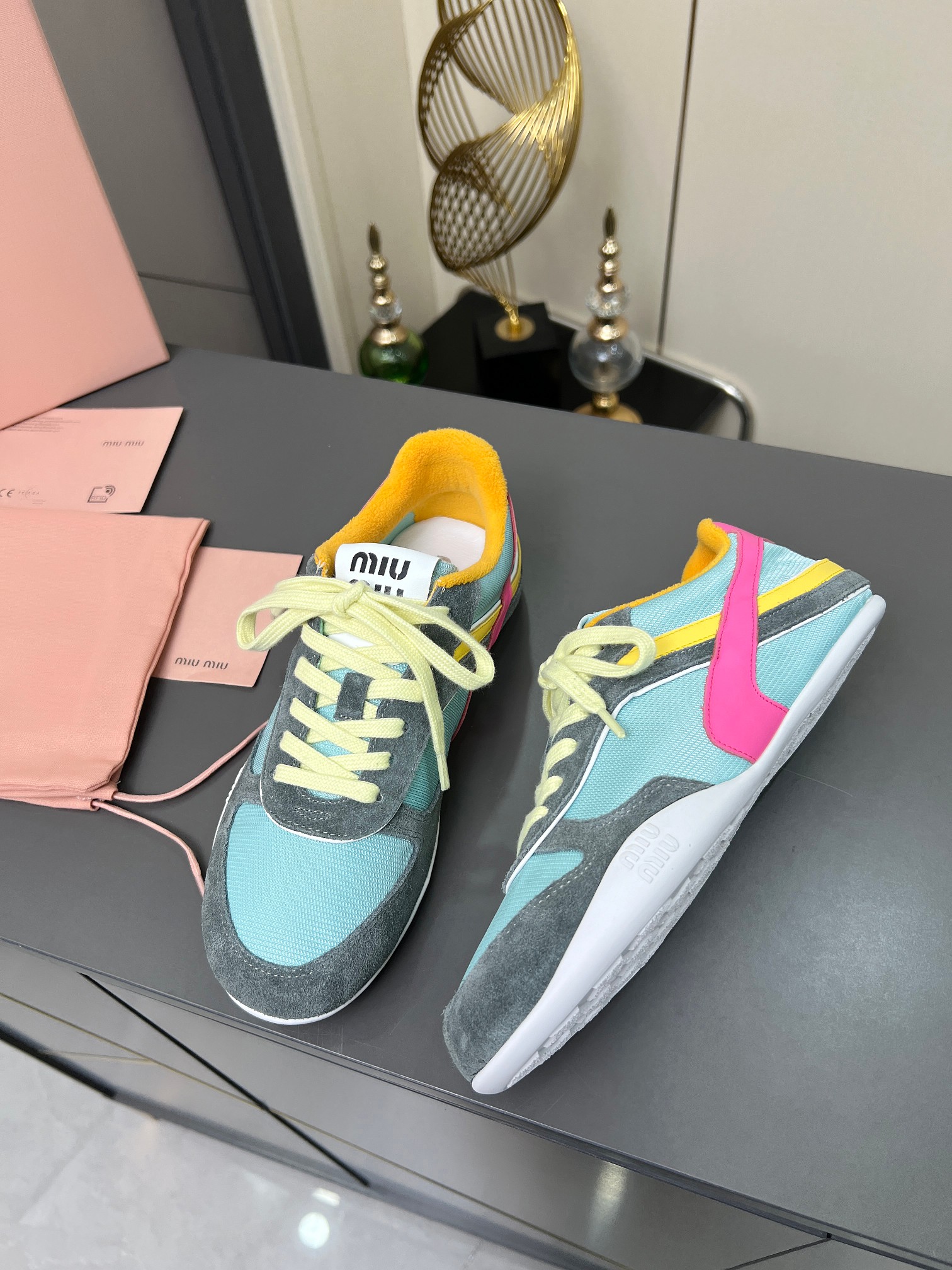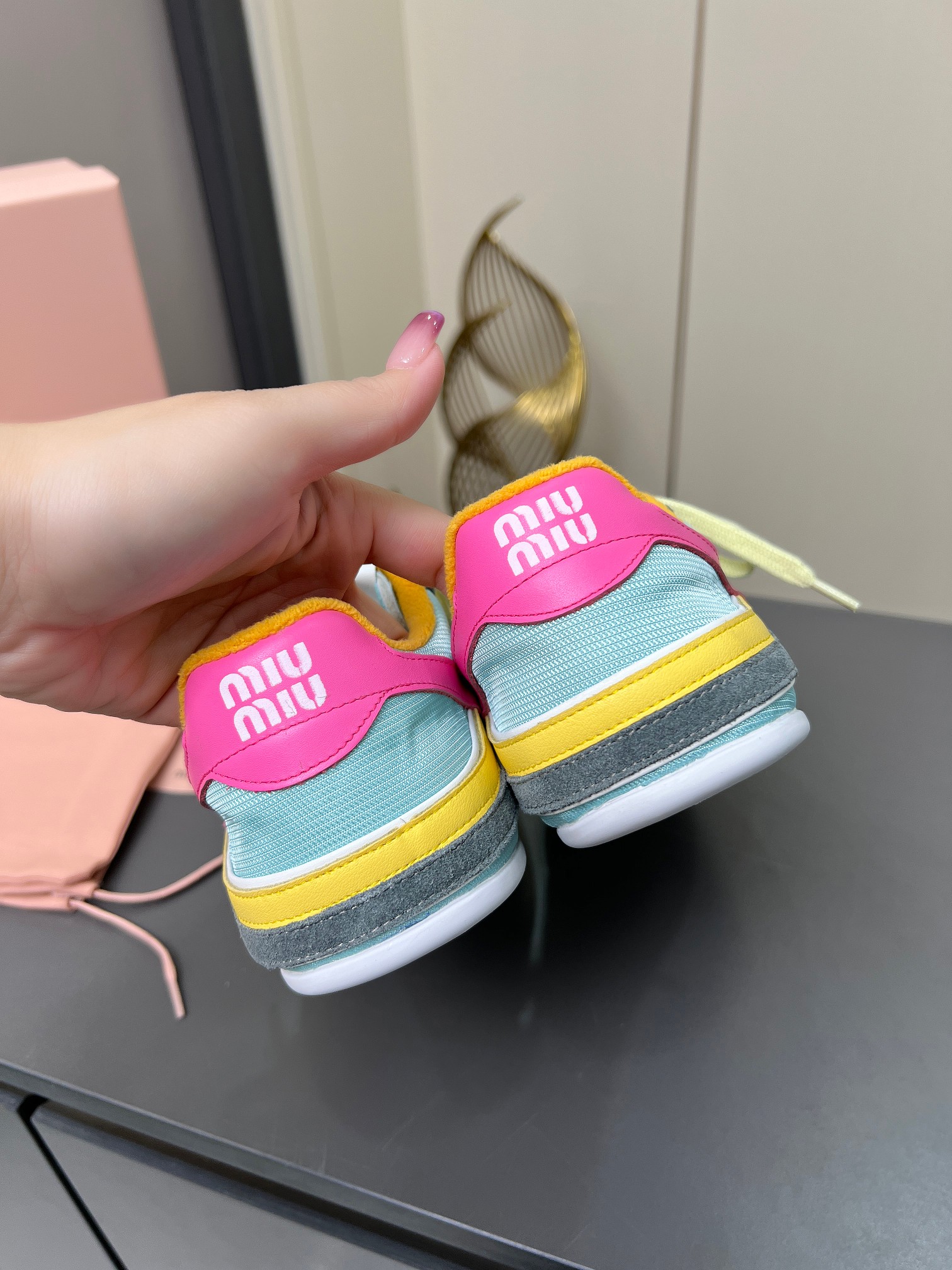 這款鞋子是AAAAA 1:1 質量(非常棒). 使用了和原版一模一樣的材料. 商標部分也保持了和繆繆/Miu Miu一樣. 圖片拍攝是實物鞋子拍攝, 您所收到的實物保證和我們圖片一模一樣.