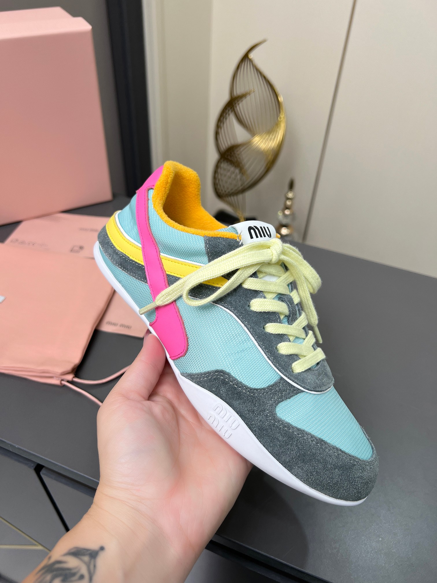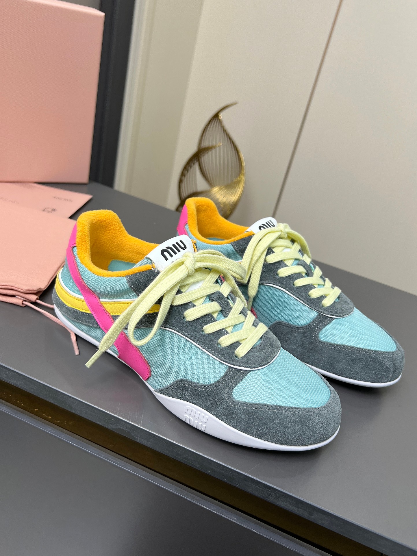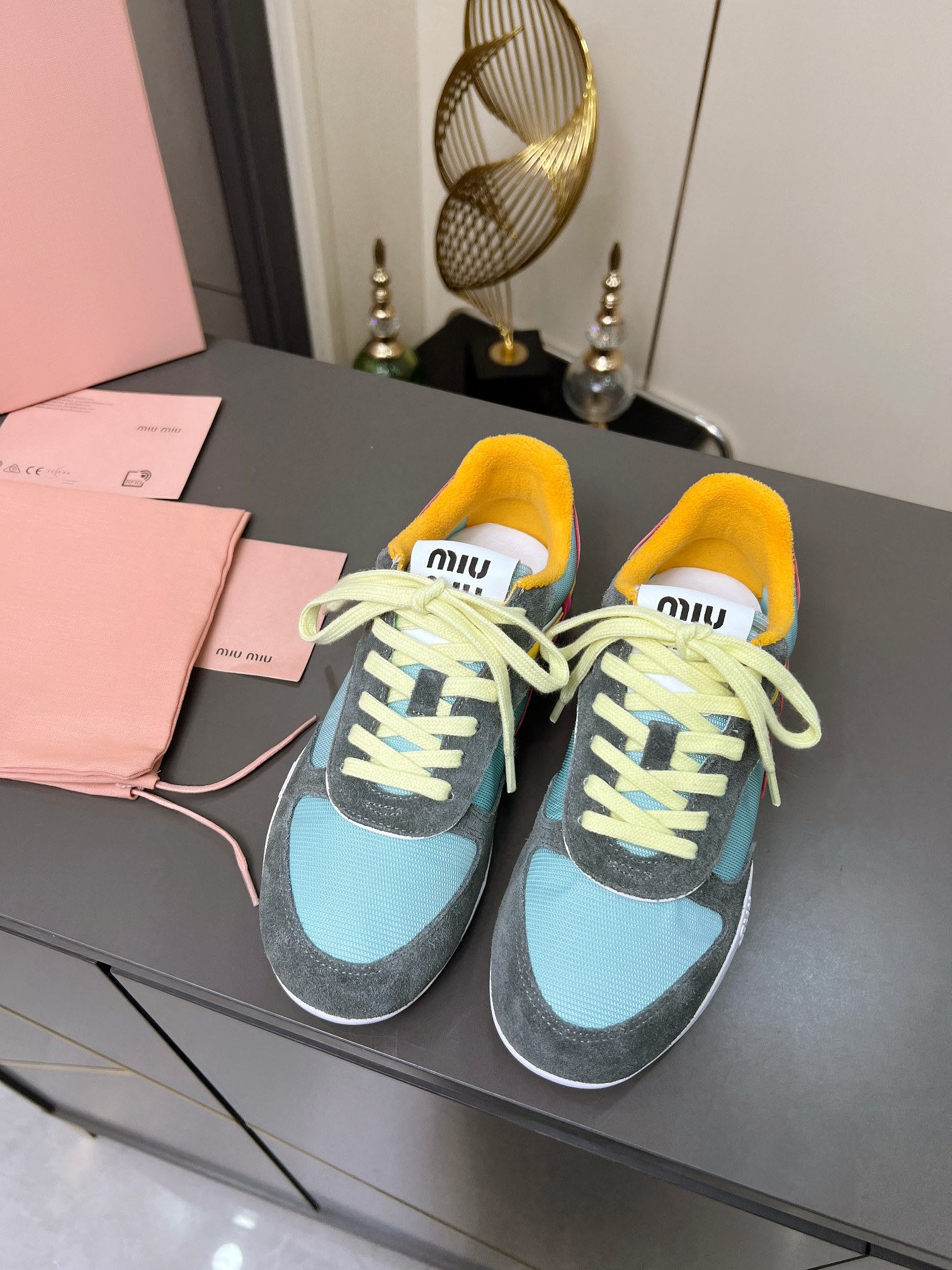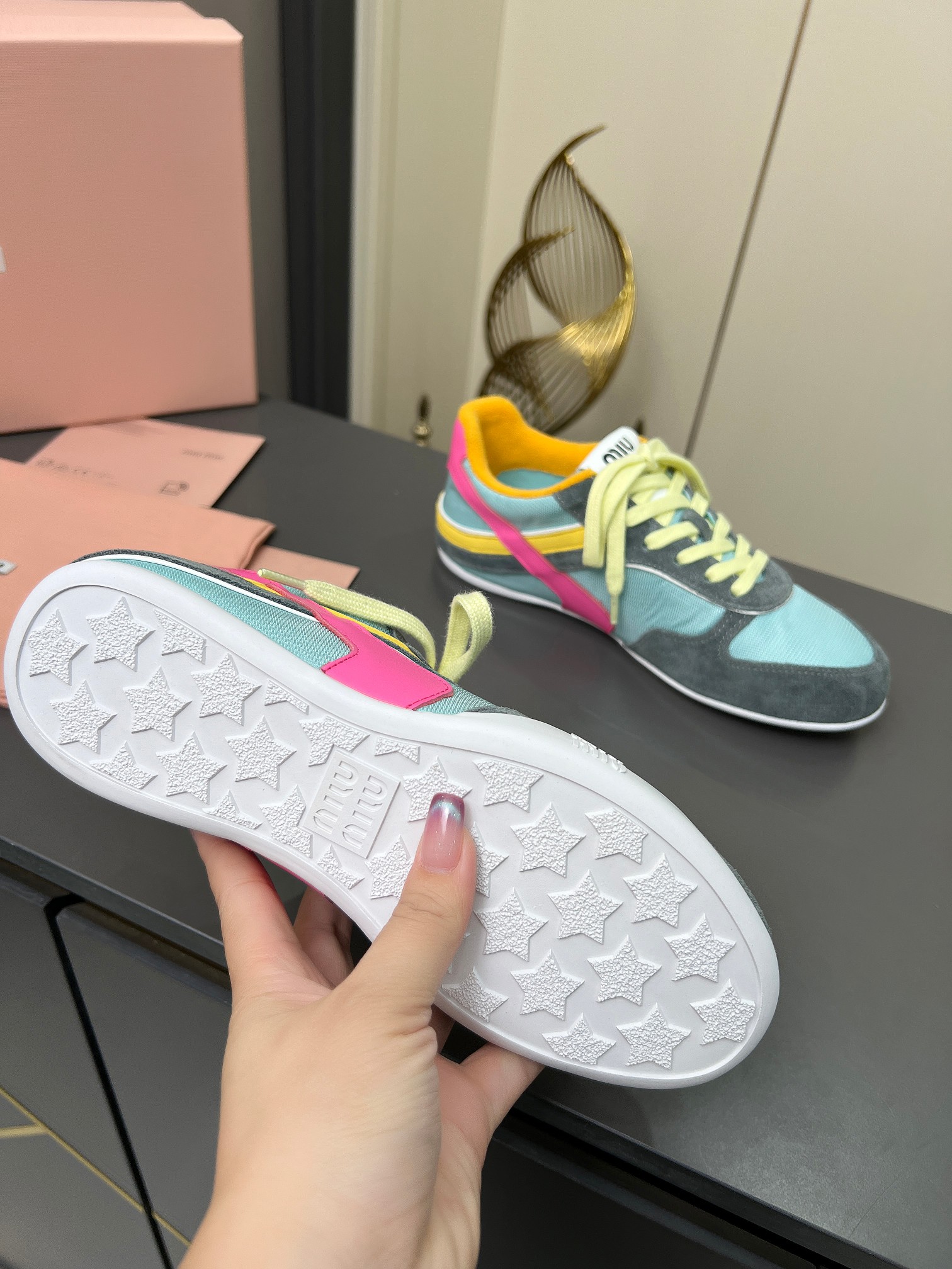 這款鞋子是AAAAA 1:1 質量(非常棒). 使用了和原版一模一樣的材料. 商標部分也保持了和繆繆/Miu Miu一樣. 圖片拍攝是實物鞋子拍攝, 您所收到的實物保證和我們圖片一模一樣.