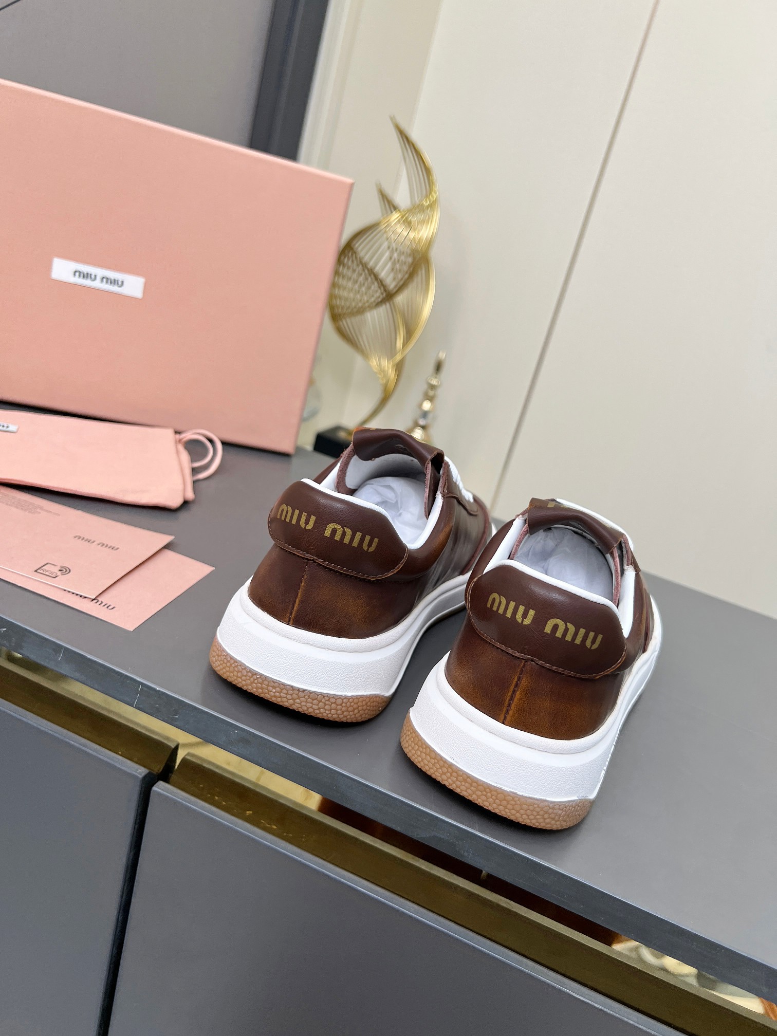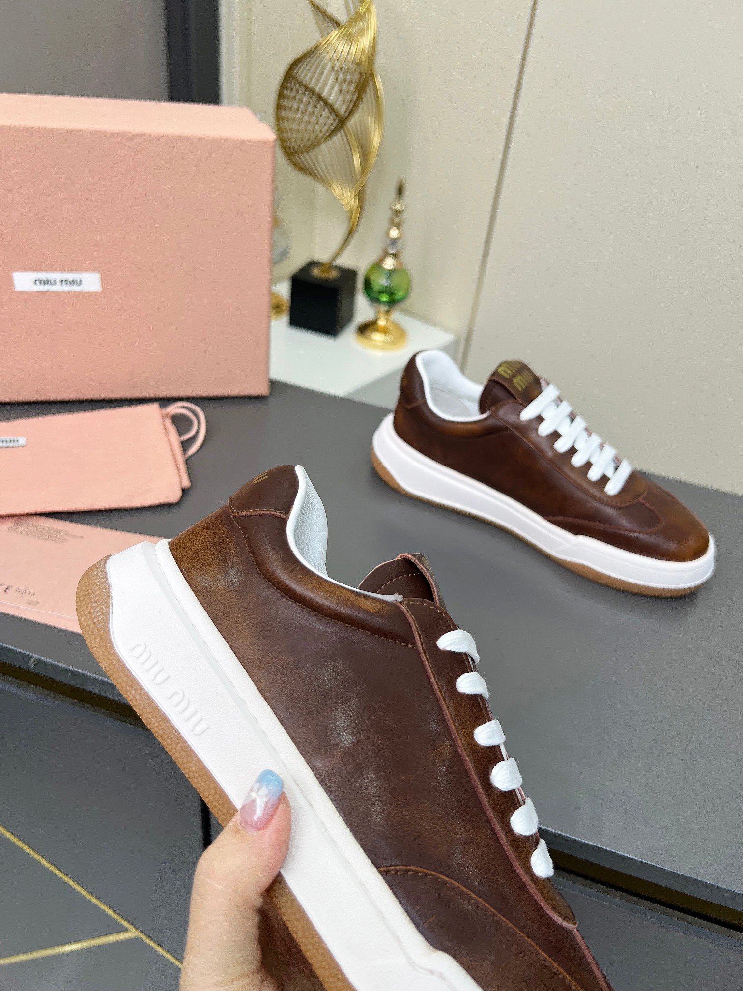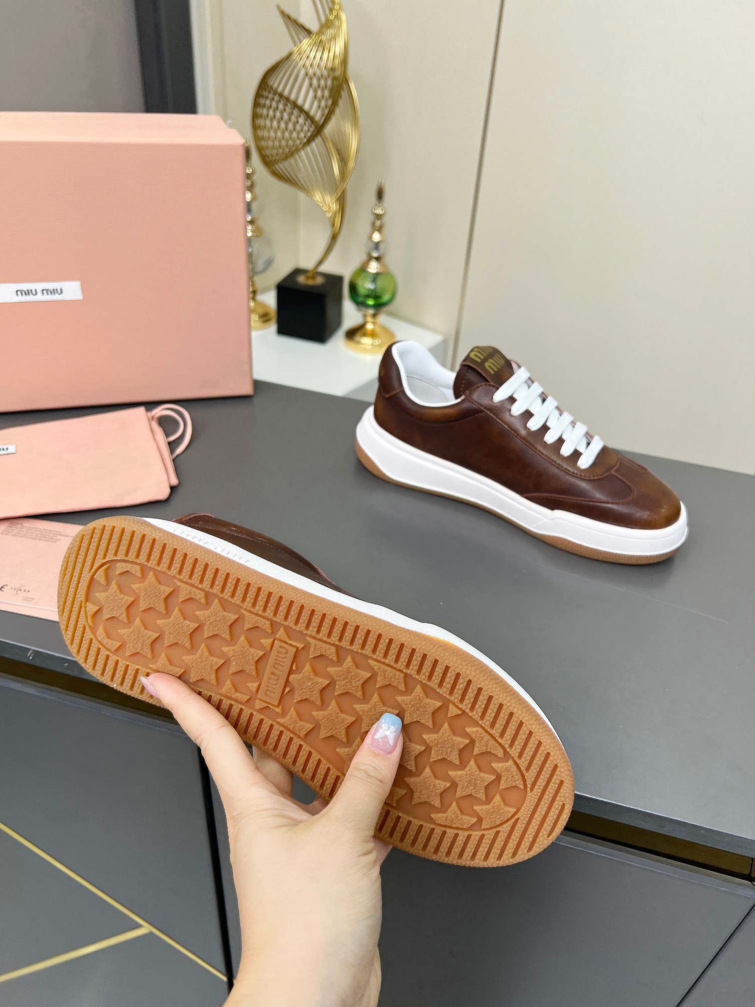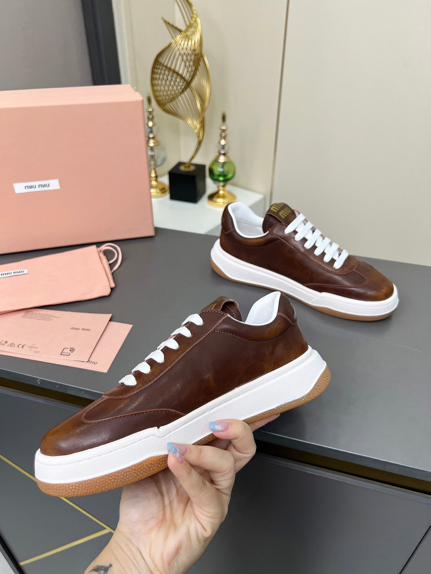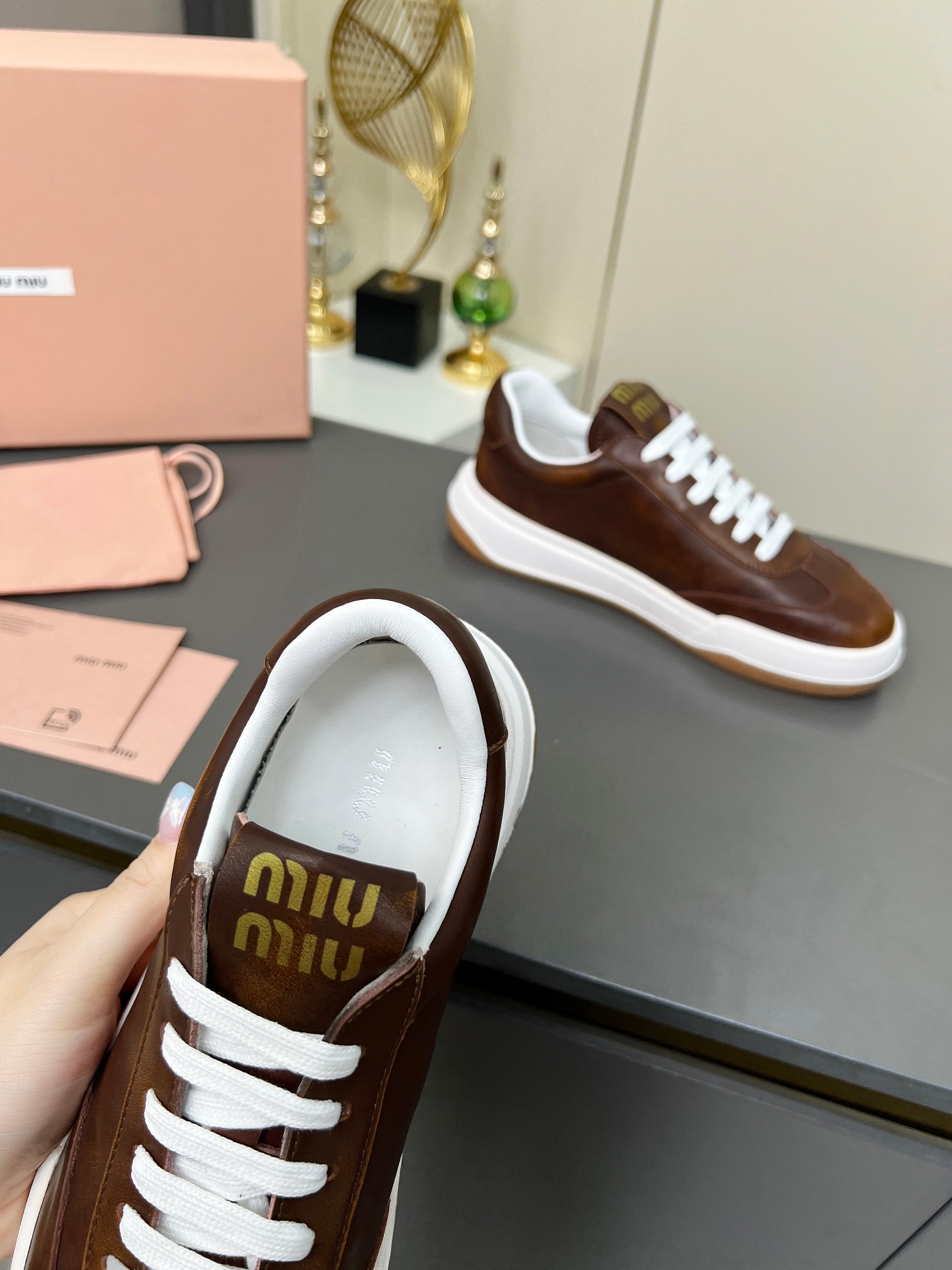 這款鞋子是AAAAA 1:1 質量(非常棒). 使用了和原版一模一樣的材料. 商標部分也保持了和繆繆/Miu Miu一樣. 圖片拍攝是實物鞋子拍攝, 您所收到的實物保證和我們圖片一模一樣.