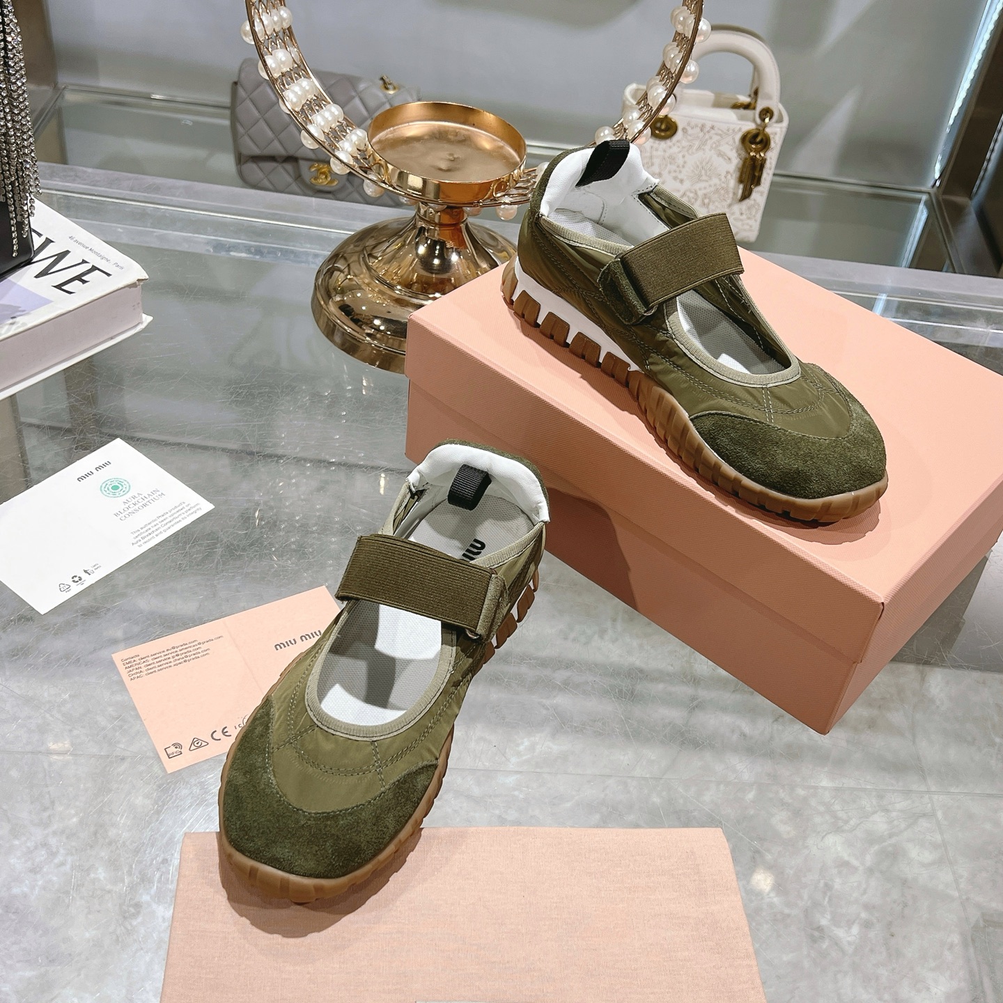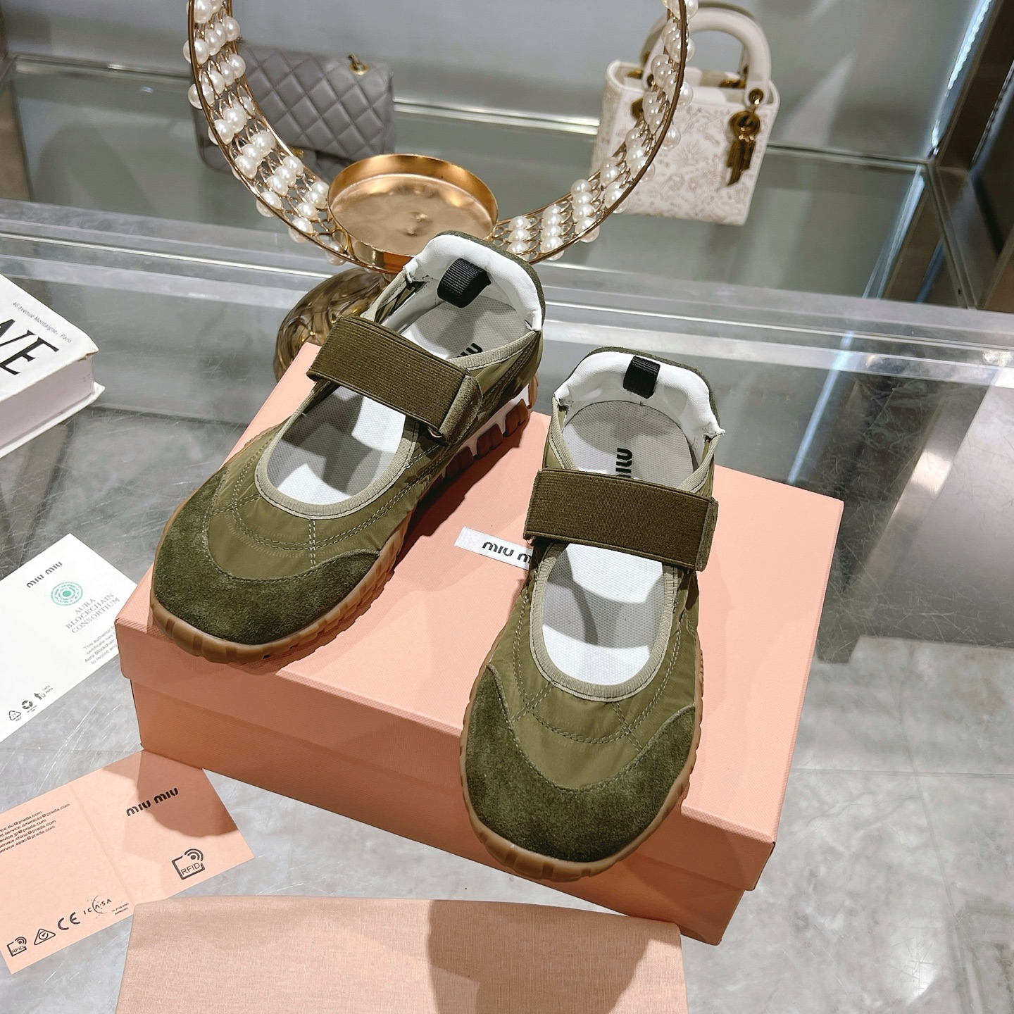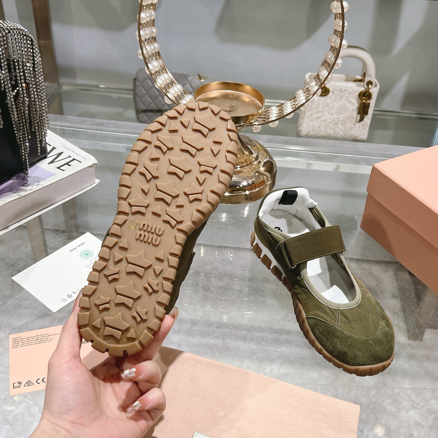 這款鞋子是AAAAA 1:1 質量(非常棒). 使用了和原版一模一樣的材料. 商標部分也保持了和繆繆/Miu Miu一樣. 圖片拍攝是實物鞋子拍攝, 您所收到的實物保證和我們圖片一模一樣.