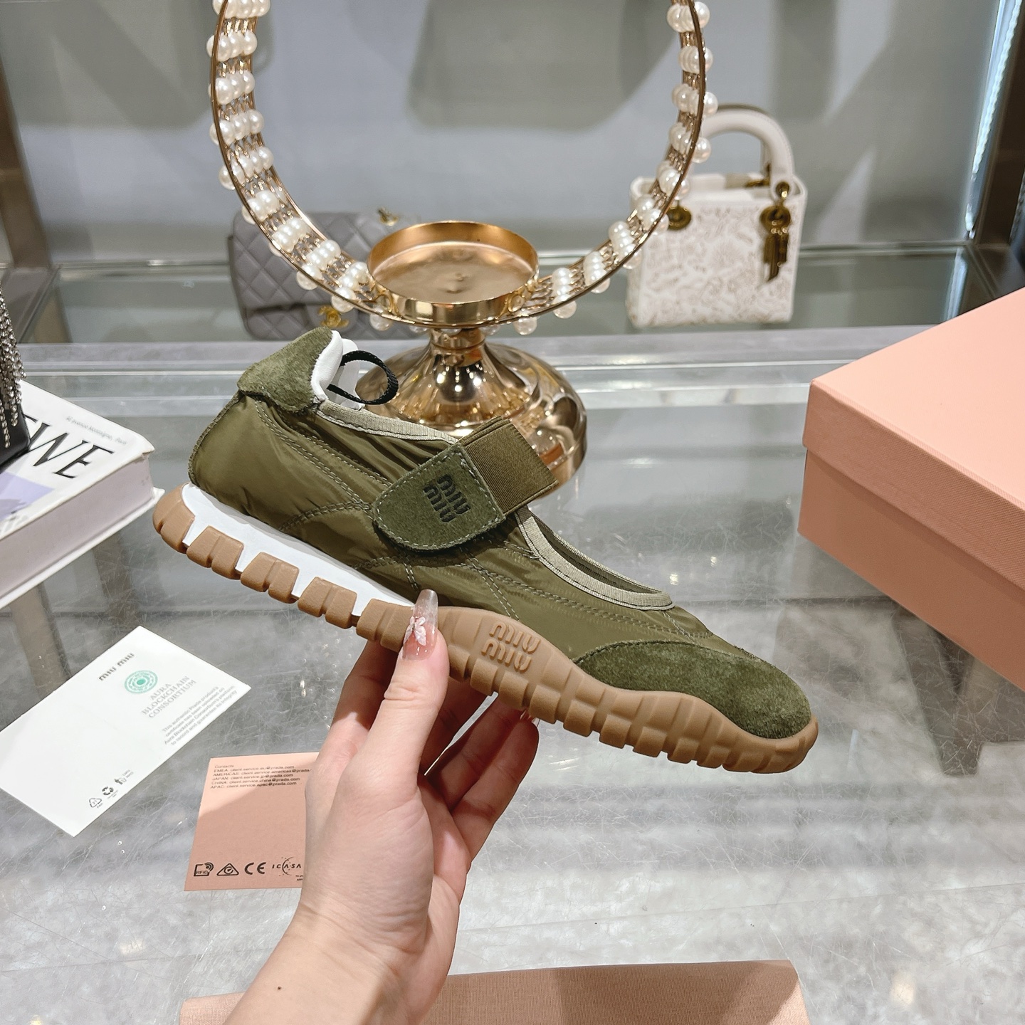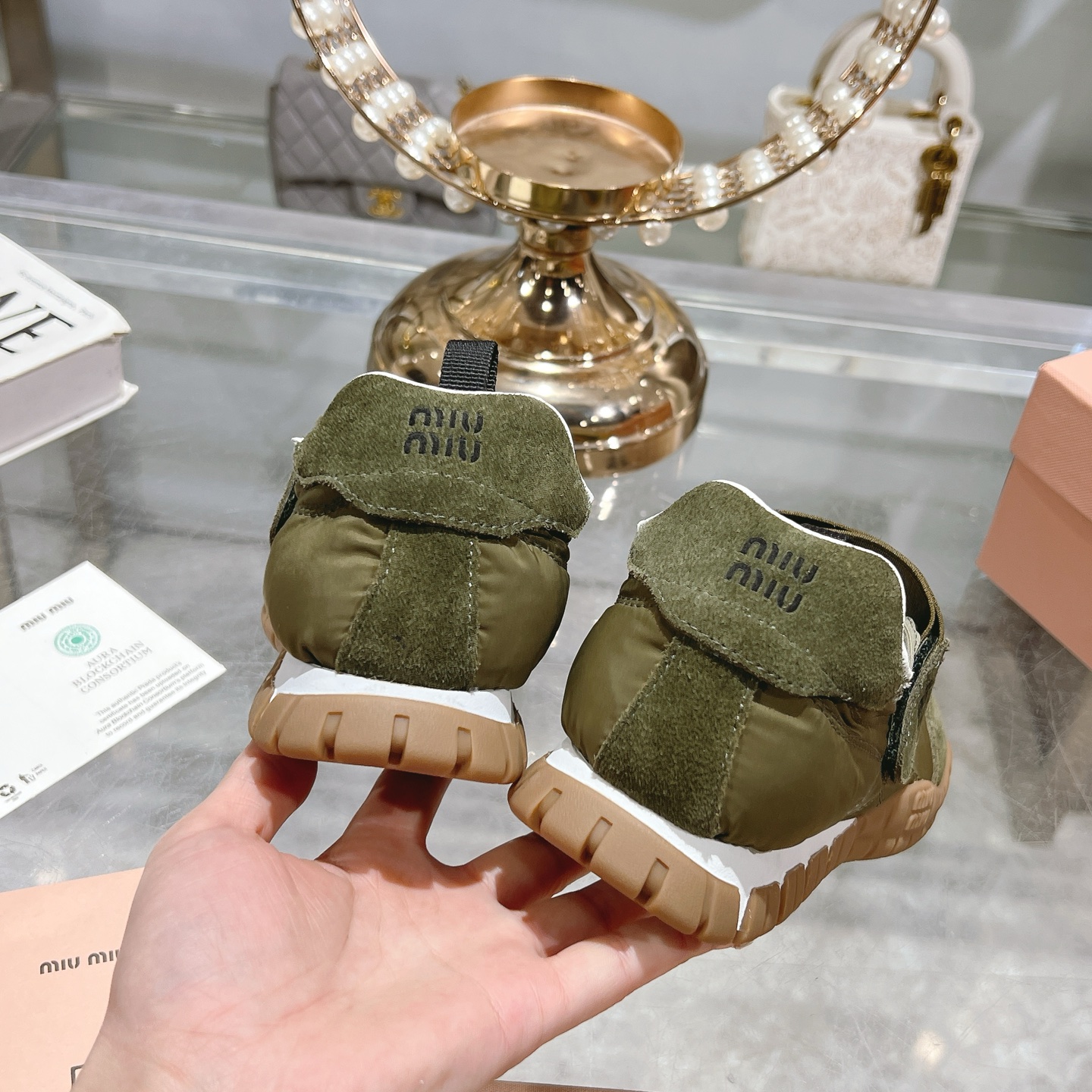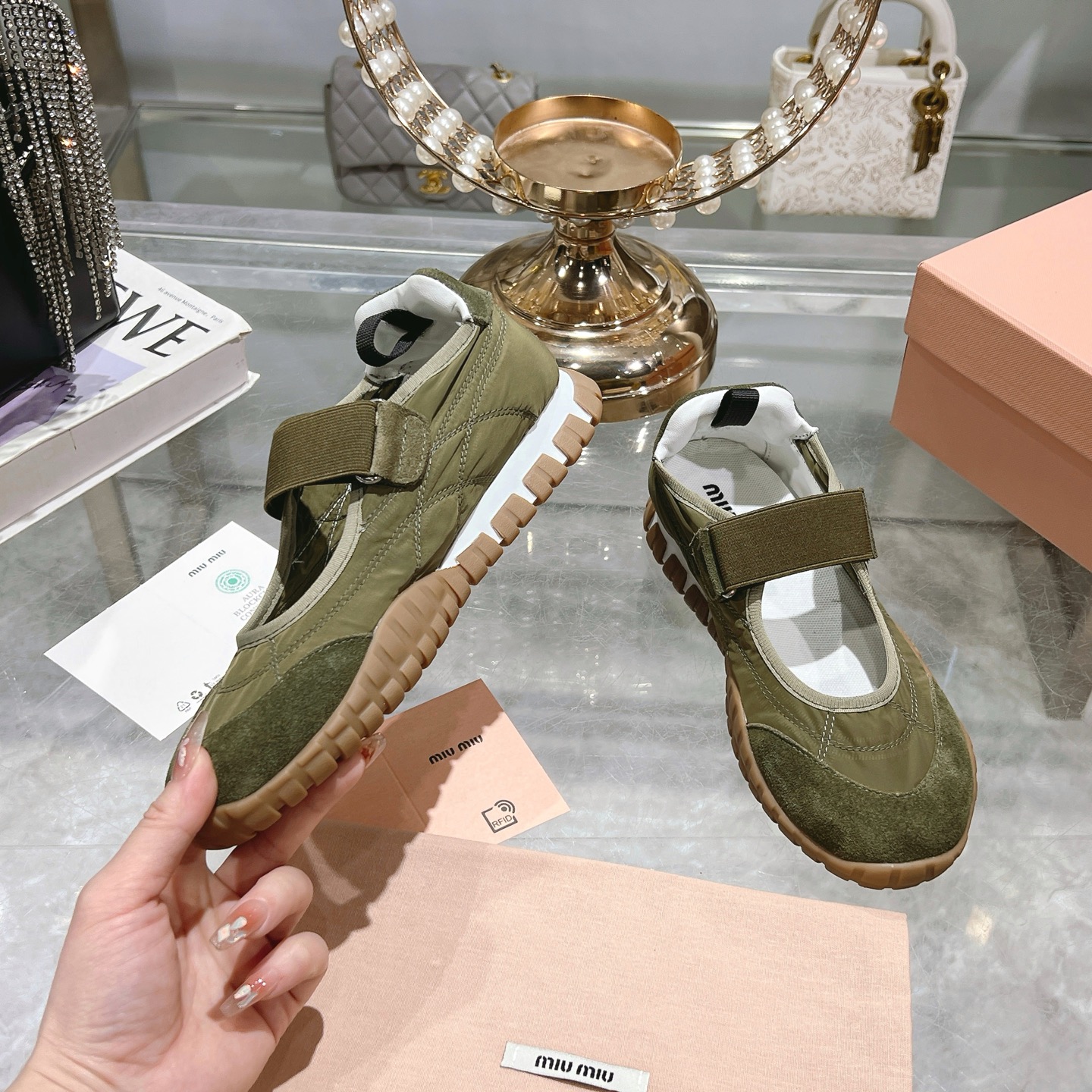 這款鞋子是AAAAA 1:1 質量(非常棒). 使用了和原版一模一樣的材料. 商標部分也保持了和繆繆/Miu Miu一樣. 圖片拍攝是實物鞋子拍攝, 您所收到的實物保證和我們圖片一模一樣.