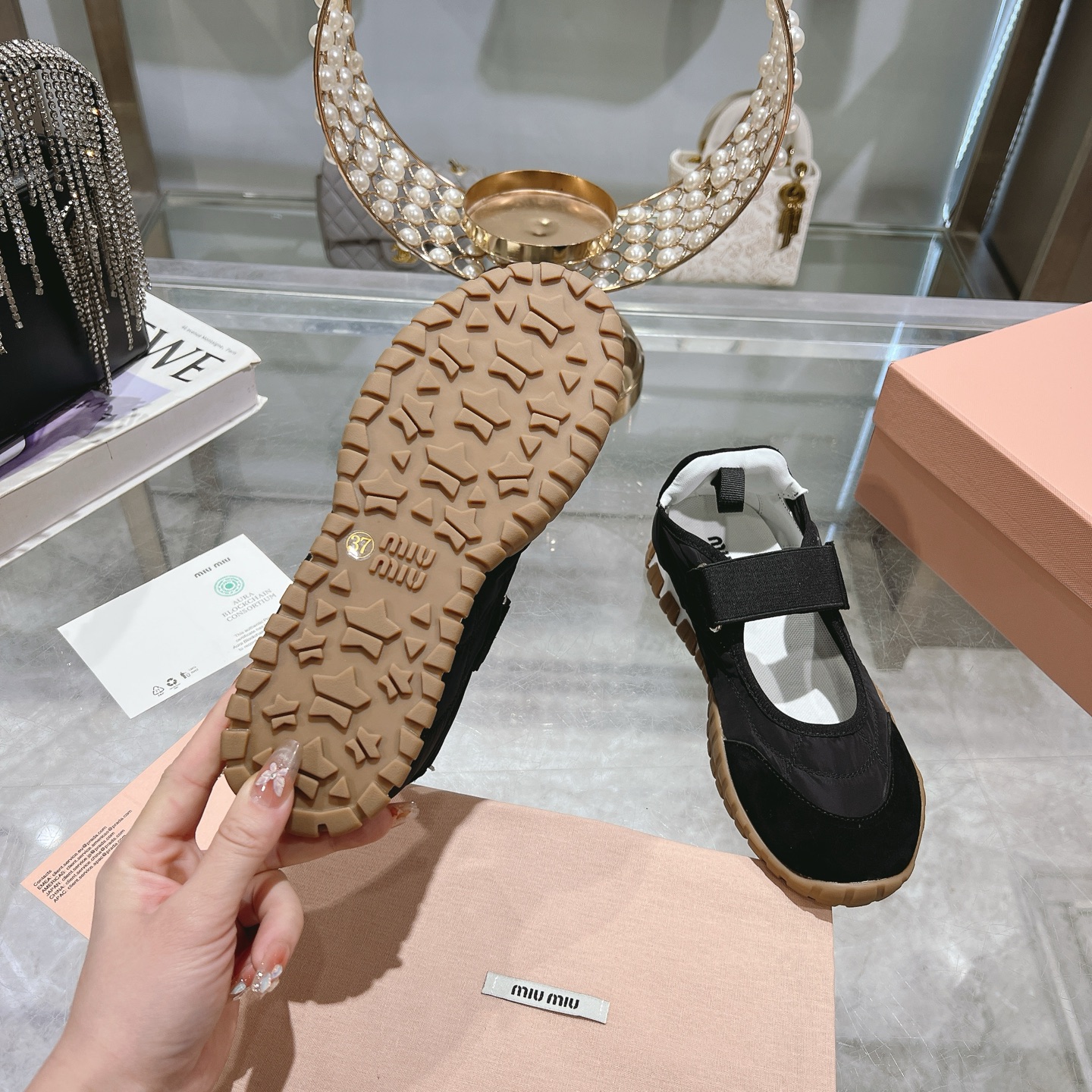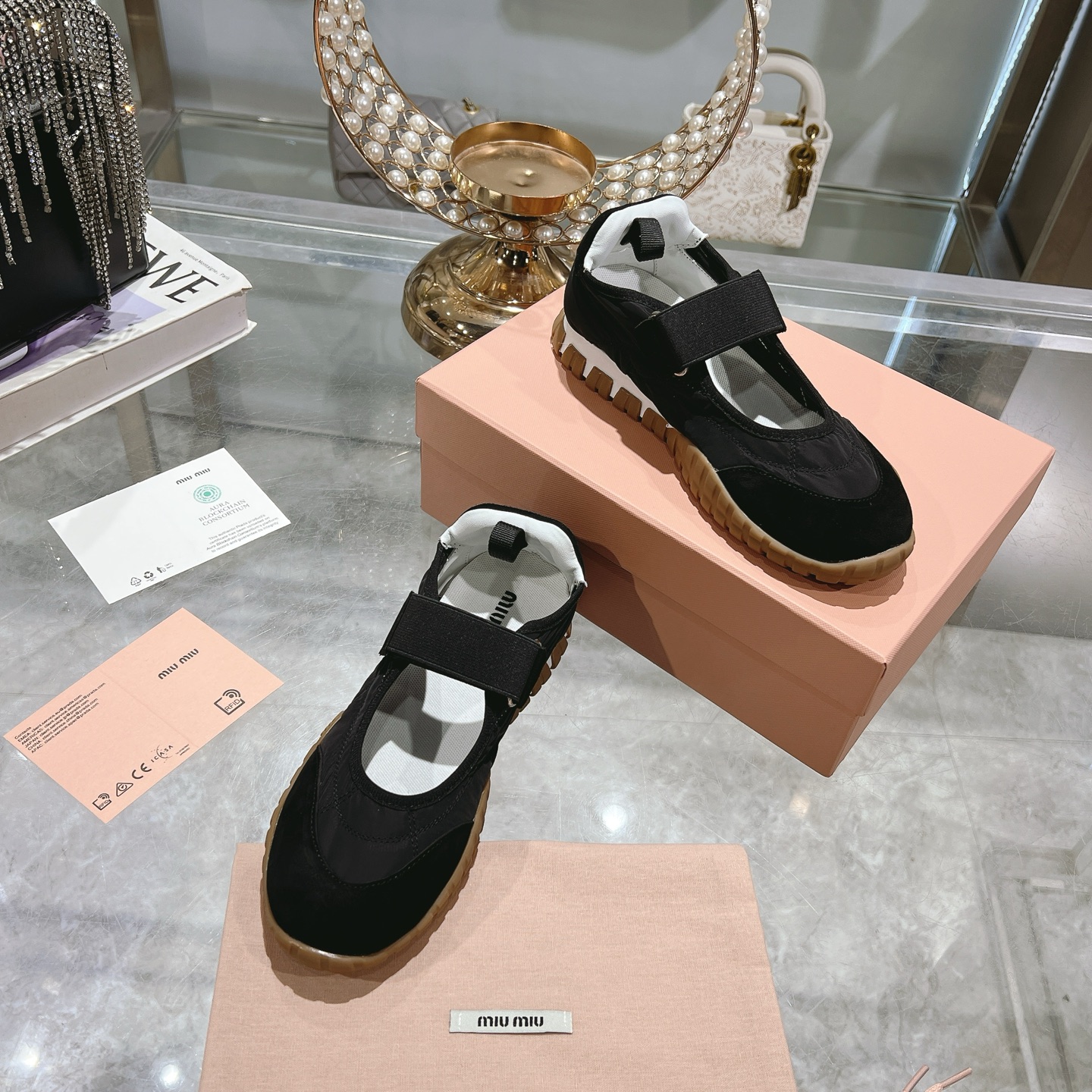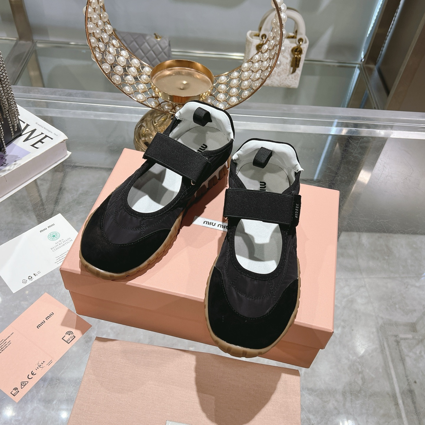 這款鞋子是AAAAA 1:1 質量(非常棒). 使用了和原版一模一樣的材料. 商標部分也保持了和繆繆/Miu Miu一樣. 圖片拍攝是實物鞋子拍攝, 您所收到的實物保證和我們圖片一模一樣.