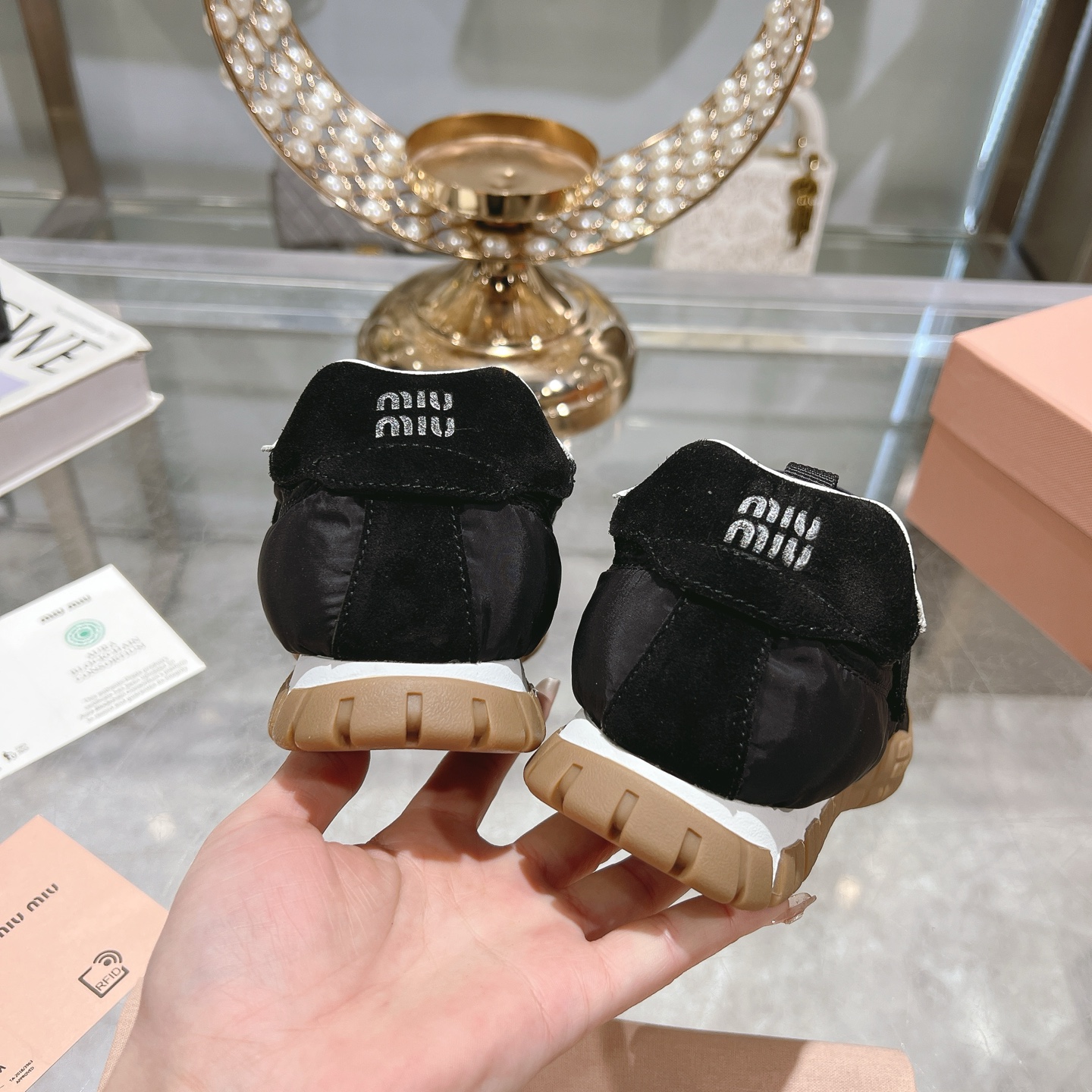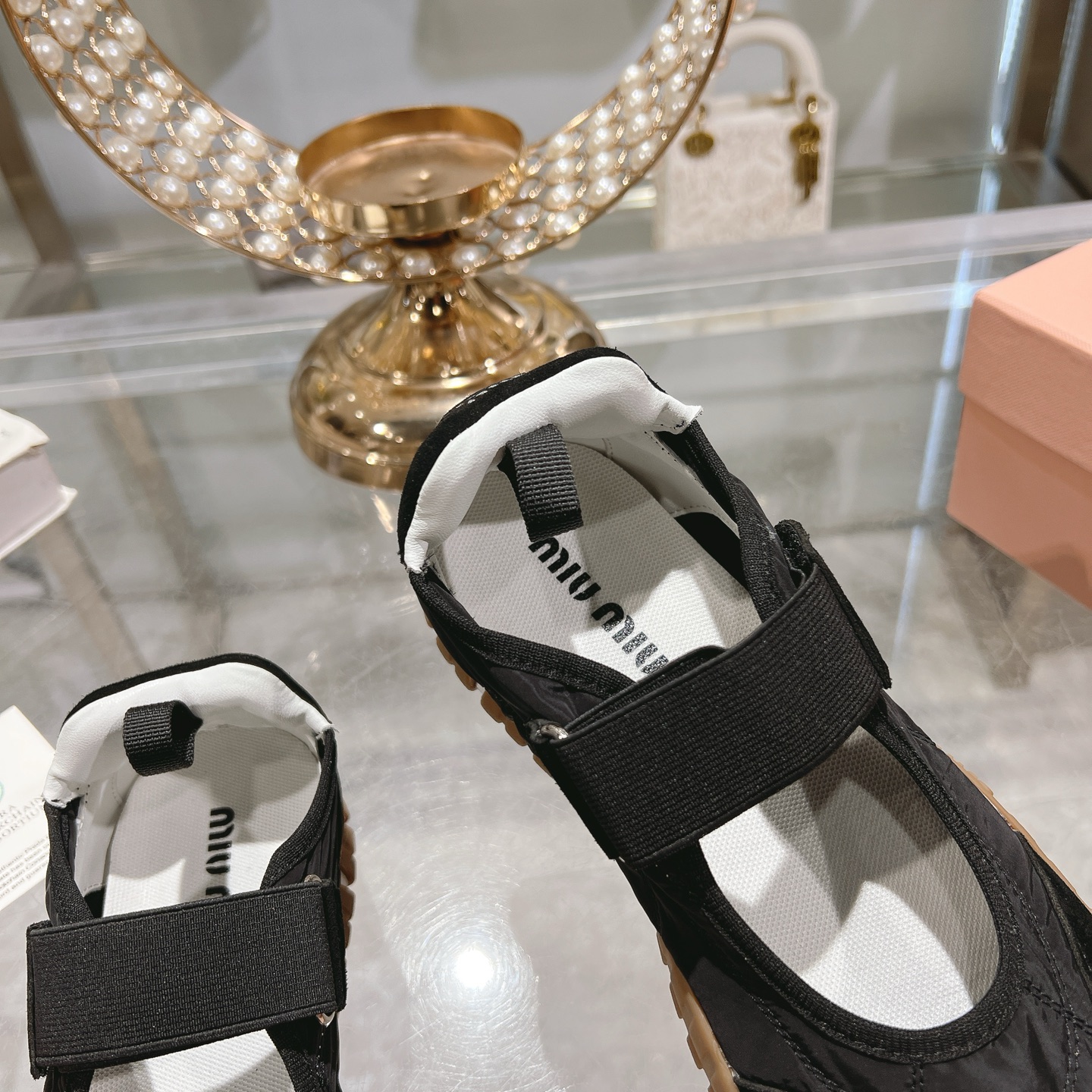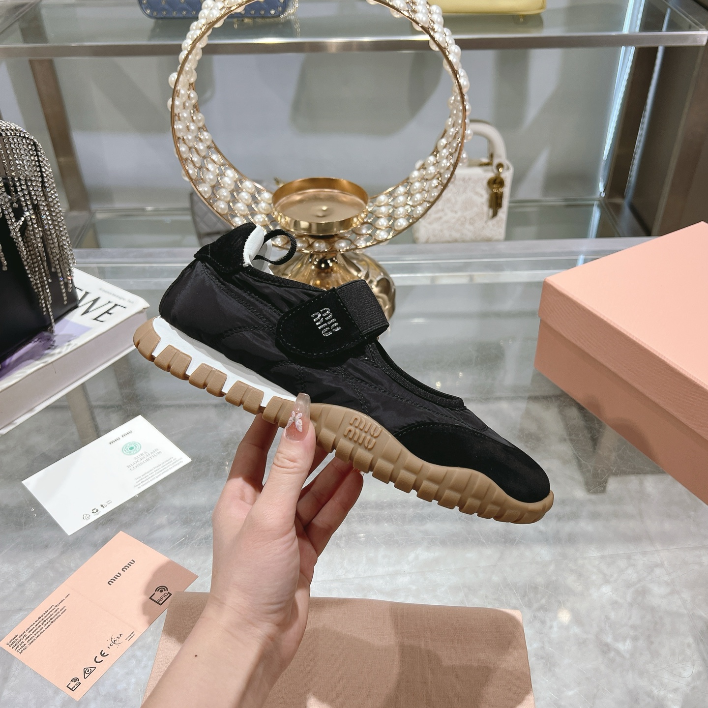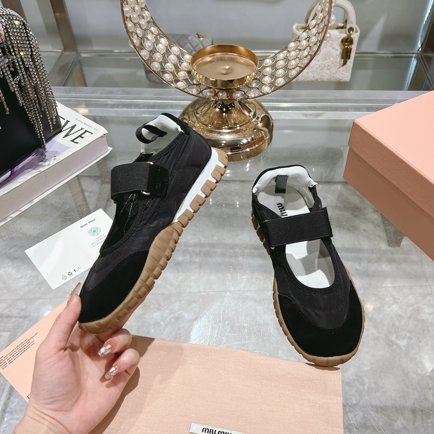 這款鞋子是AAAAA 1:1 質量(非常棒). 使用了和原版一模一樣的材料. 商標部分也保持了和繆繆/Miu Miu一樣. 圖片拍攝是實物鞋子拍攝, 您所收到的實物保證和我們圖片一模一樣.