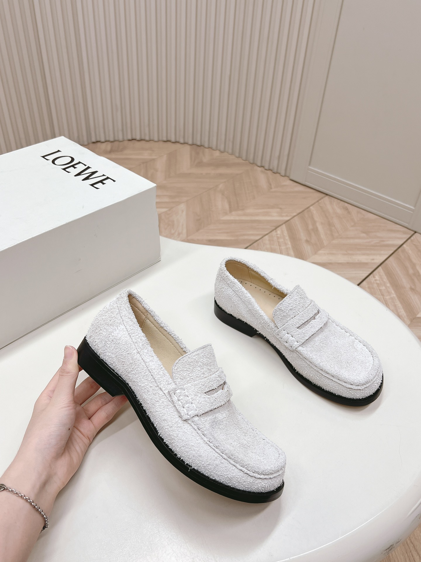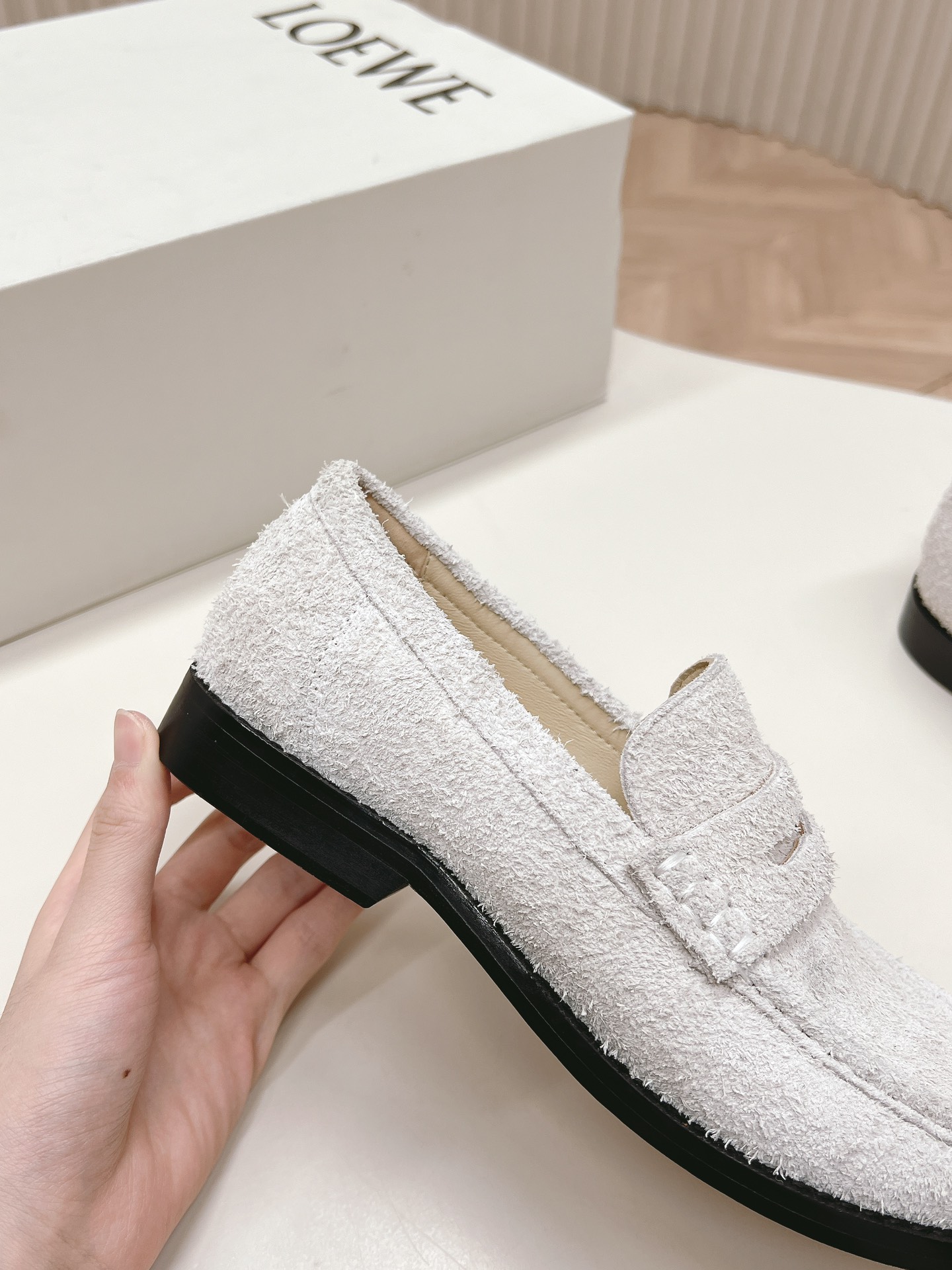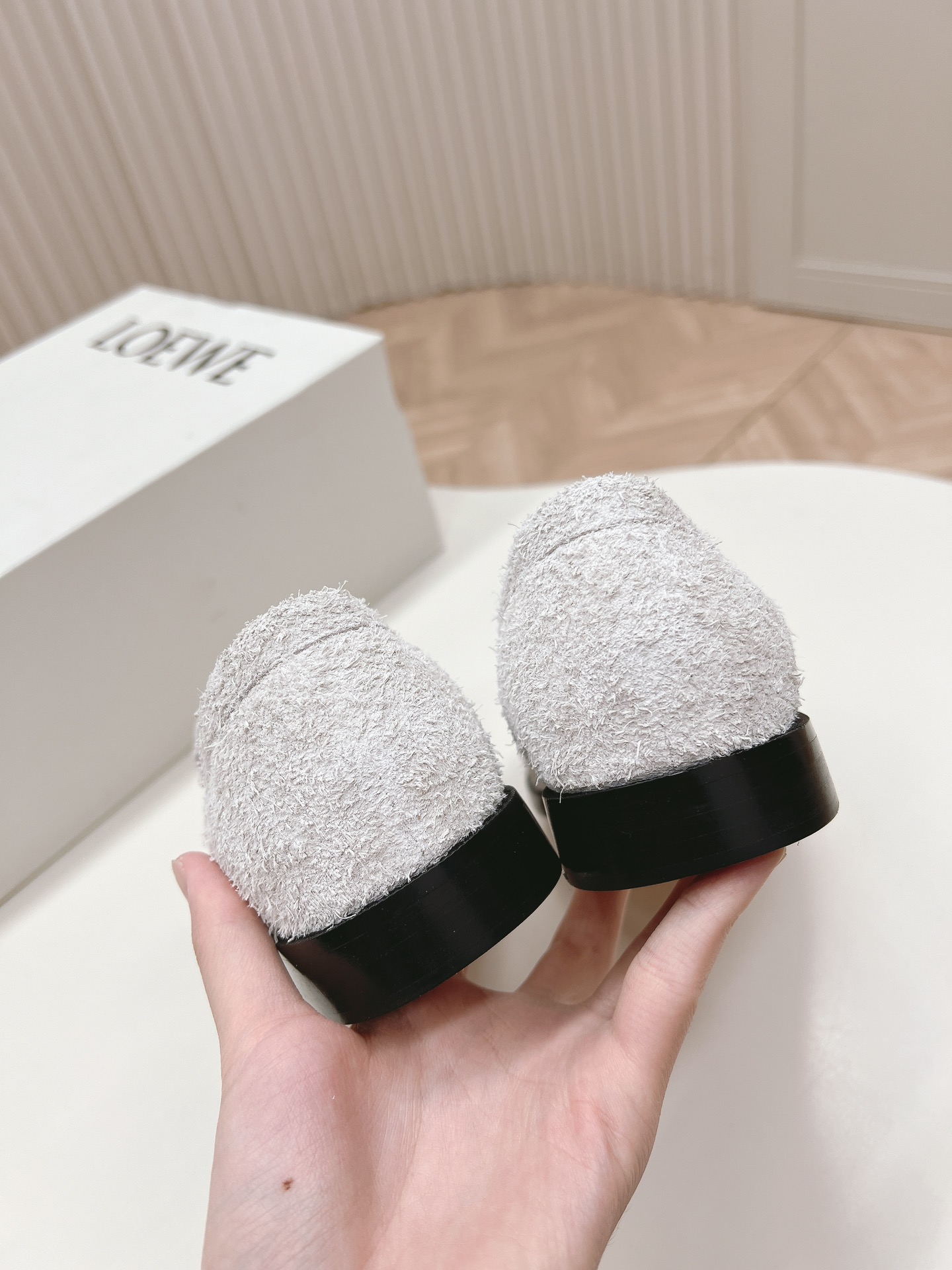 這款鞋子是AAAAA 1:1 質量(非常棒). 使用了和原版一模一樣的材料. 商標部分也保持了和Loewe一樣. 圖片拍攝是實物鞋子拍攝, 您所收到的實物保證和我們圖片一模一樣.