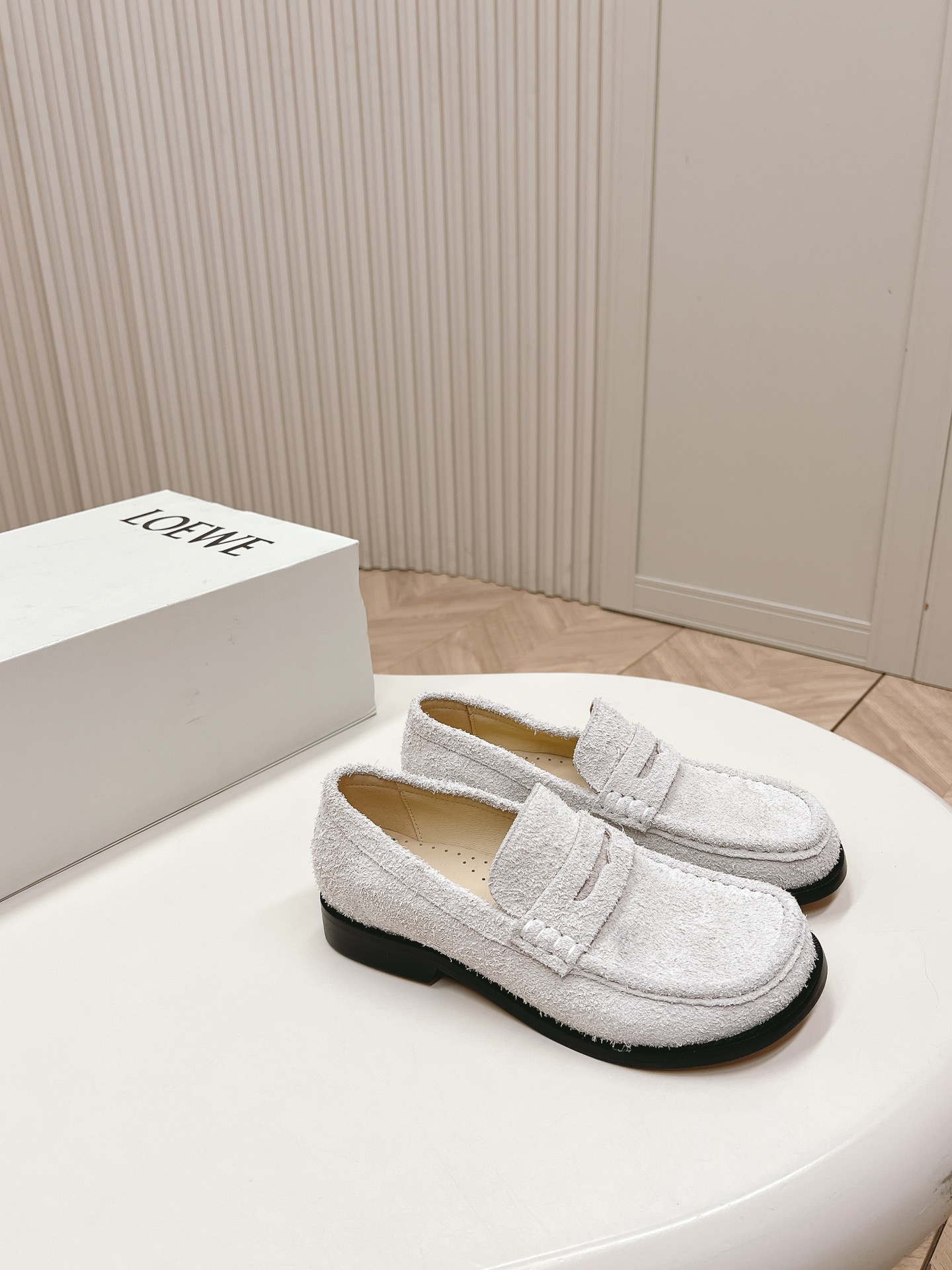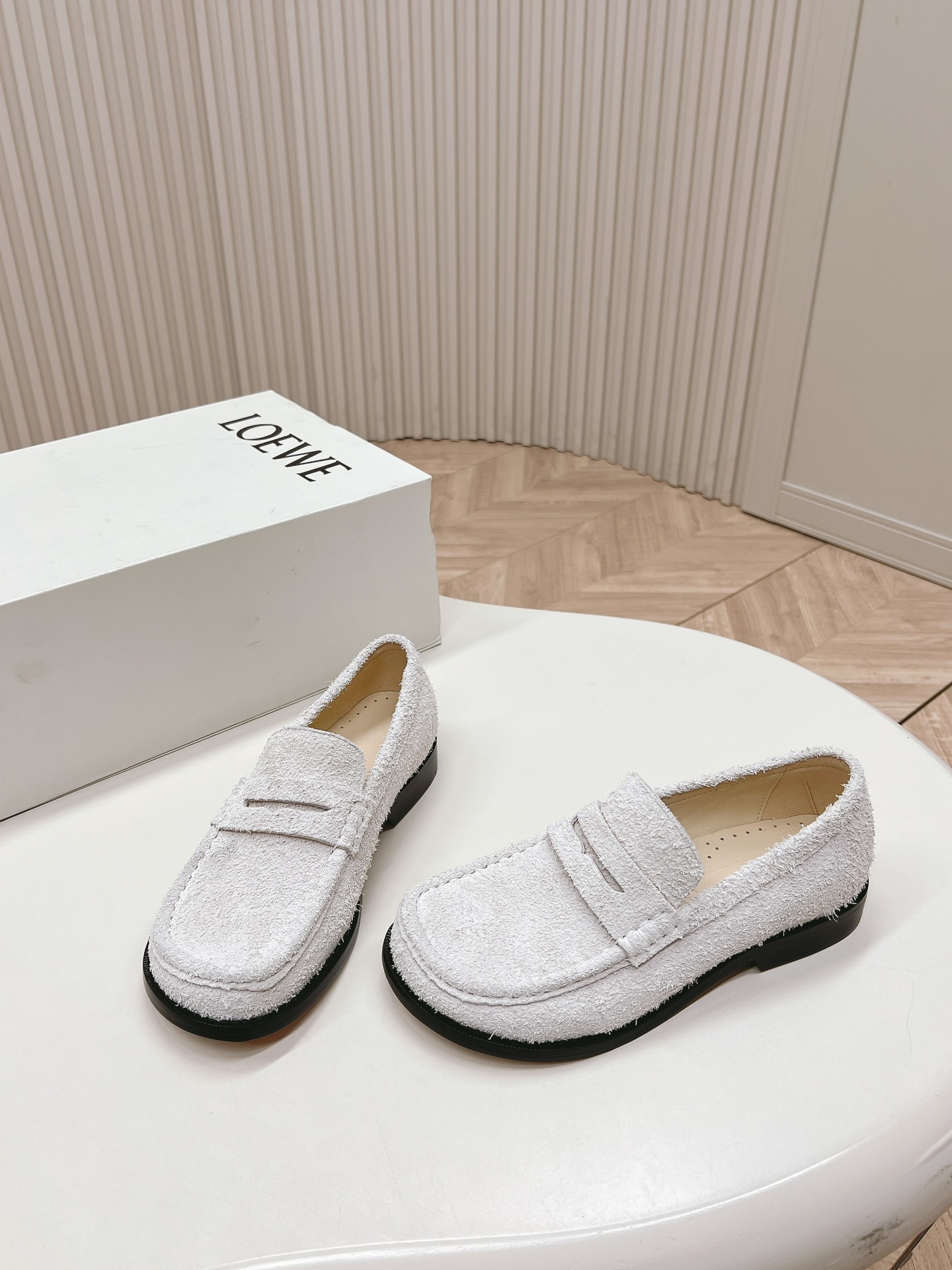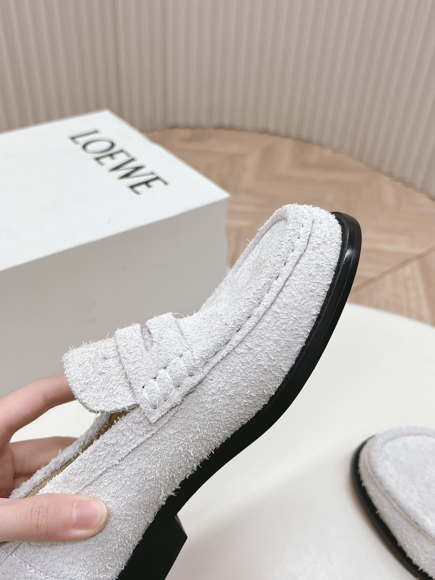這款鞋子是AAAAA 1:1 質量(非常棒). 使用了和原版一模一樣的材料. 商標部分也保持了和Loewe一樣. 圖片拍攝是實物鞋子拍攝, 您所收到的實物保證和我們圖片一模一樣.