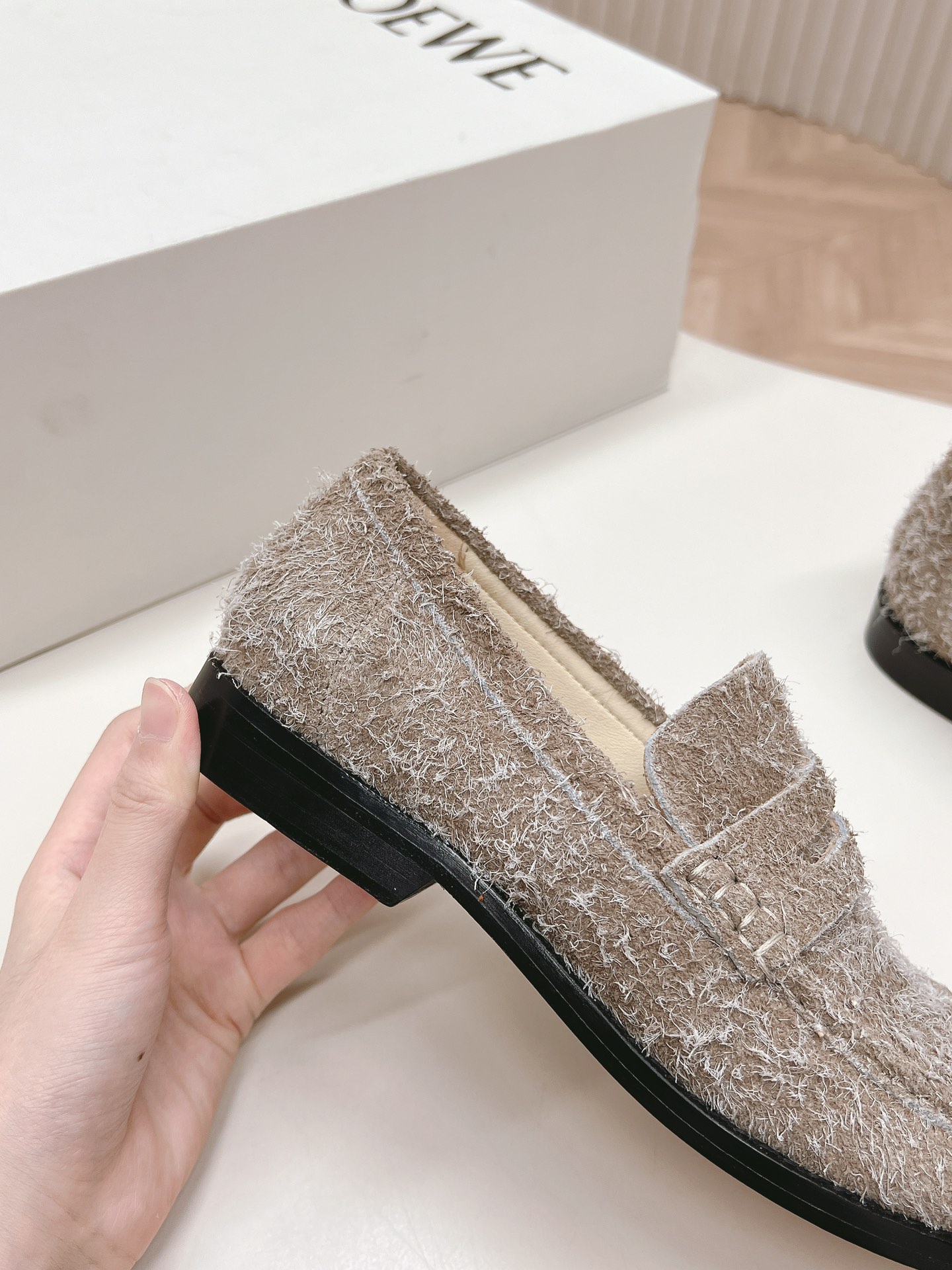 這款鞋子是AAAAA 1:1 質量(非常棒). 使用了和原版一模一樣的材料. 商標部分也保持了和Loewe一樣. 圖片拍攝是實物鞋子拍攝, 您所收到的實物保證和我們圖片一模一樣.