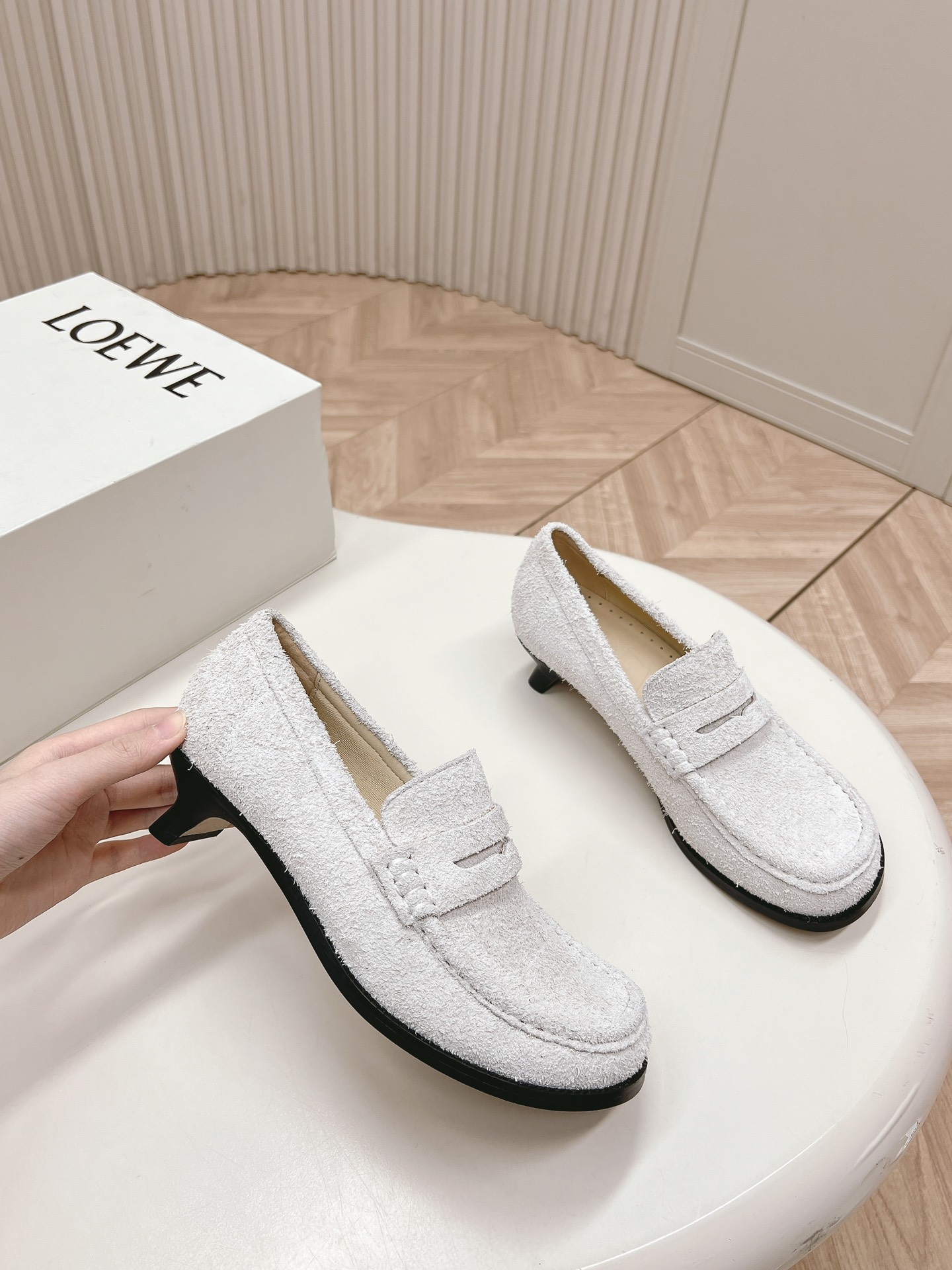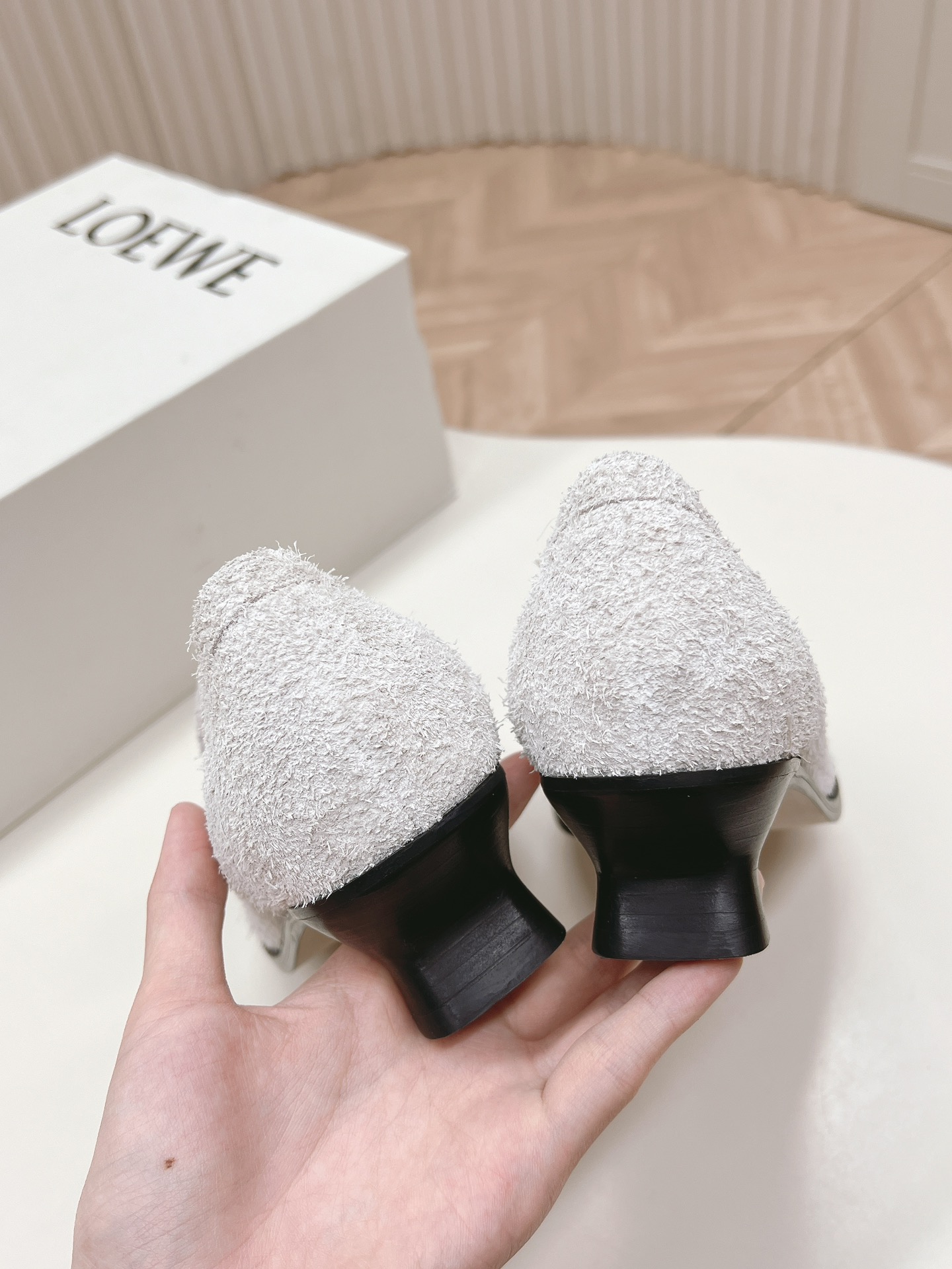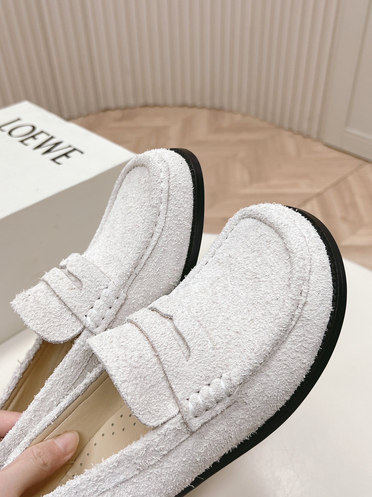 這款鞋子是AAAAA 1:1 質量(非常棒). 使用了和原版一模一樣的材料. 商標部分也保持了和Loewe一樣. 圖片拍攝是實物鞋子拍攝, 您所收到的實物保證和我們圖片一模一樣.