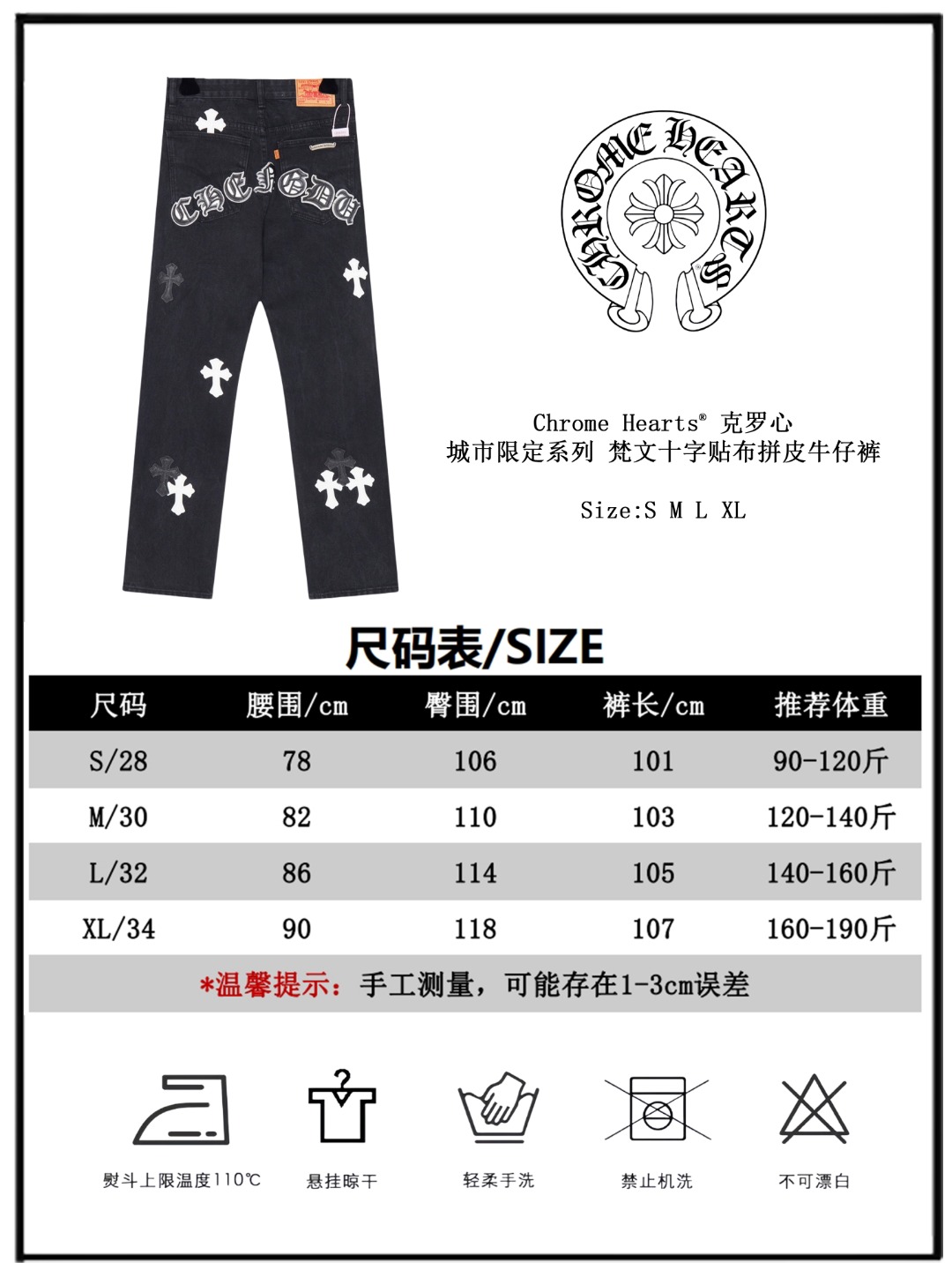這款衣服是AAAAA 1:1 質量(非常棒). 使用了和原版一模一樣的材料. 商標部分也保持了和鉻心/Chrome Hearts一樣. 圖片拍攝是實物衣服拍攝, 您所收到的實物保證和我們圖片一模一樣.
