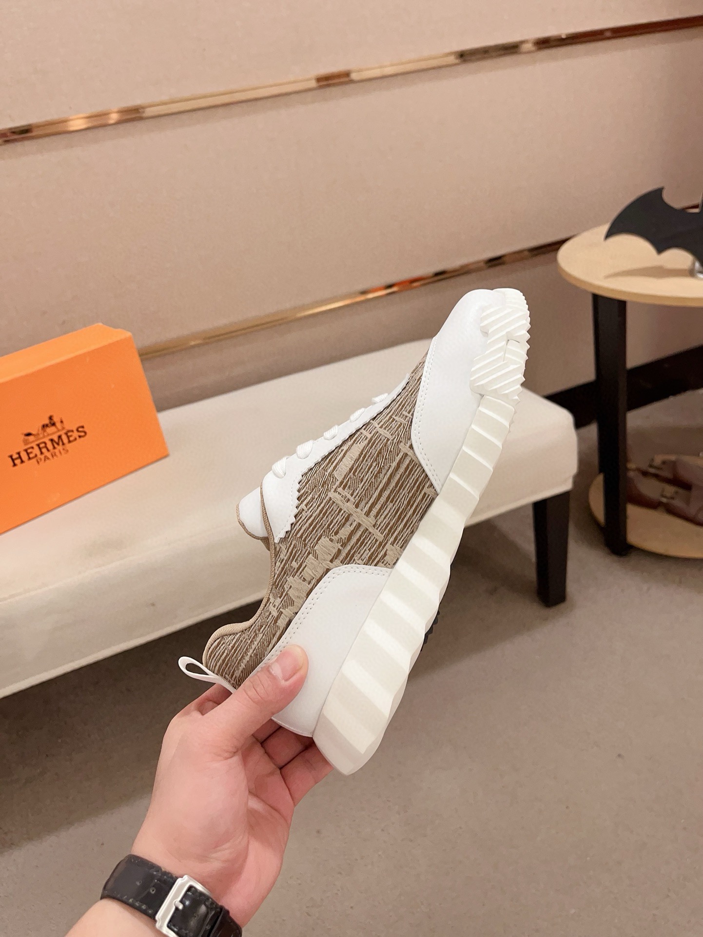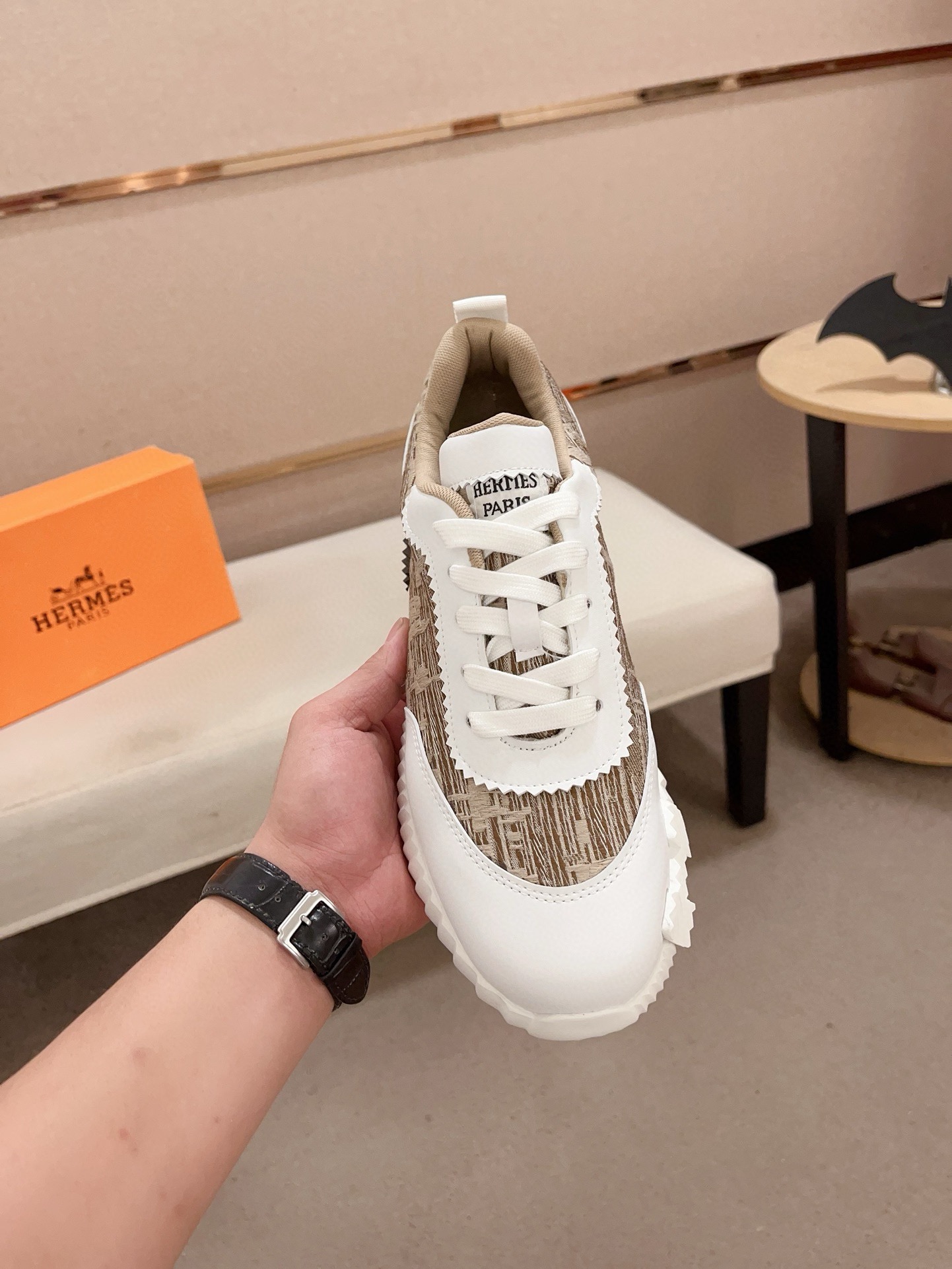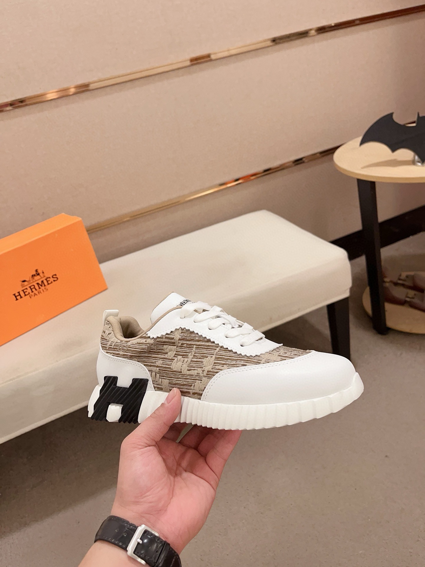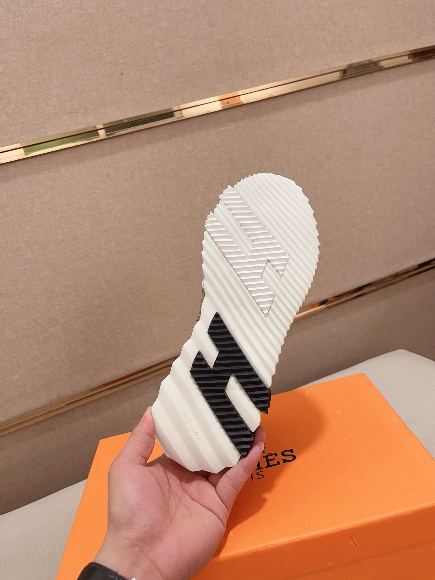 這款鞋子是AAAAA 1:1 質量(非常棒). 使用了和原版一模一樣的材料. 商標部分也保持了和愛馬仕/Hermes一樣. 圖片拍攝是實物鞋子拍攝, 您所收到的實物保證和我們圖片一模一樣.