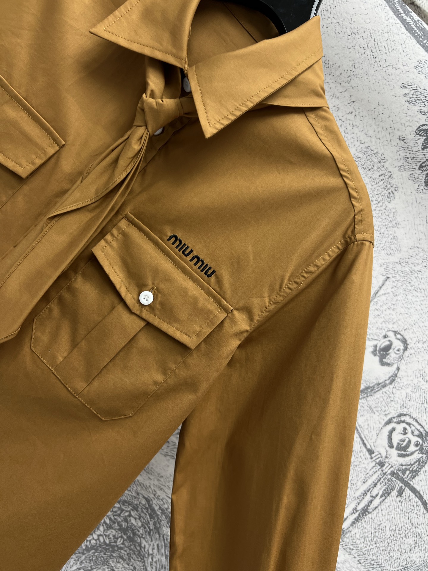 這款衣服是AAAAA 1:1 質量(非常棒). 使用了和原版一模一樣的材料. 商標部分也保持了和繆繆/Miu Miu一樣. 圖片拍攝是實物衣服拍攝, 您所收到的實物保證和我們圖片一模一樣.
