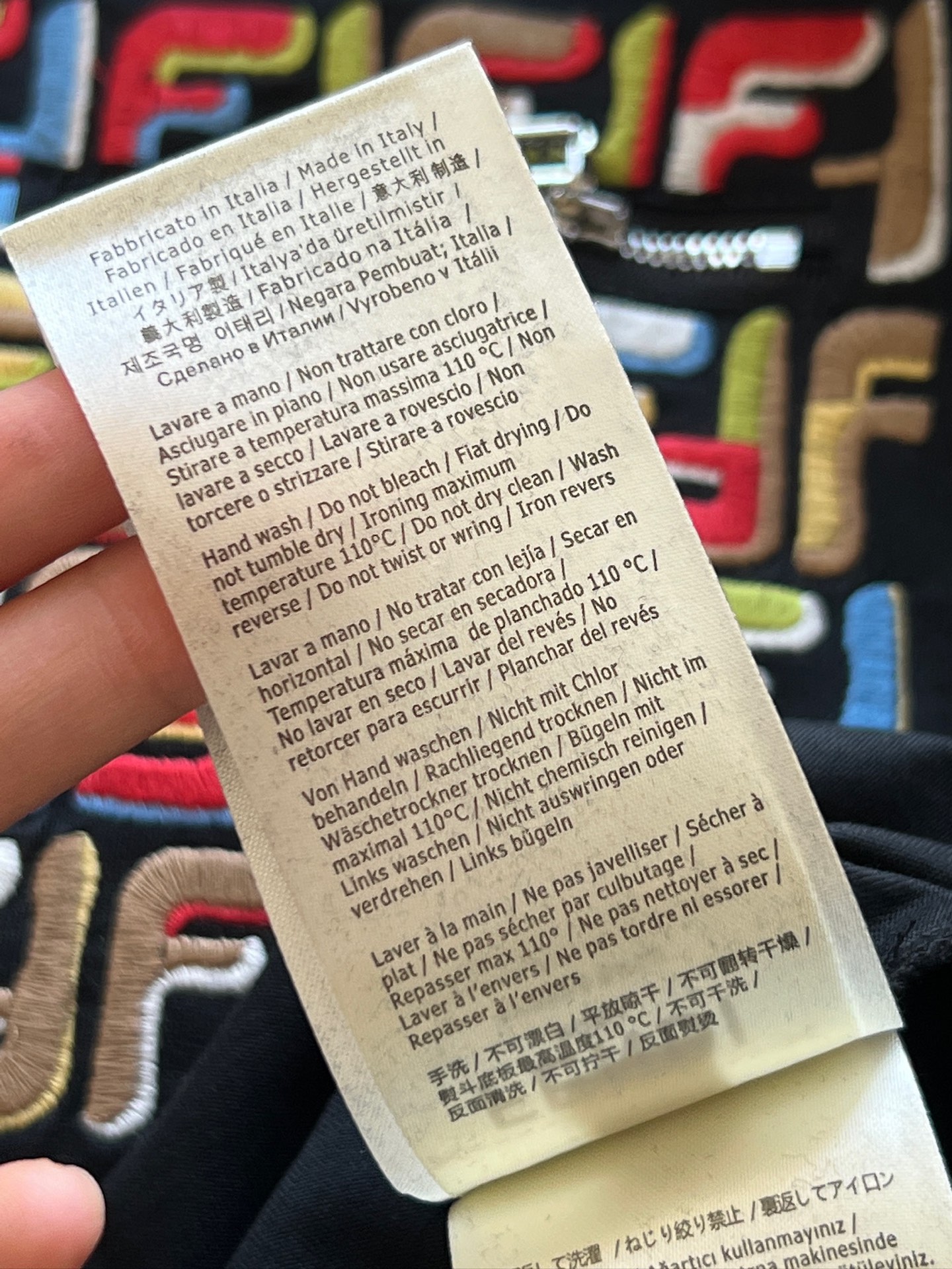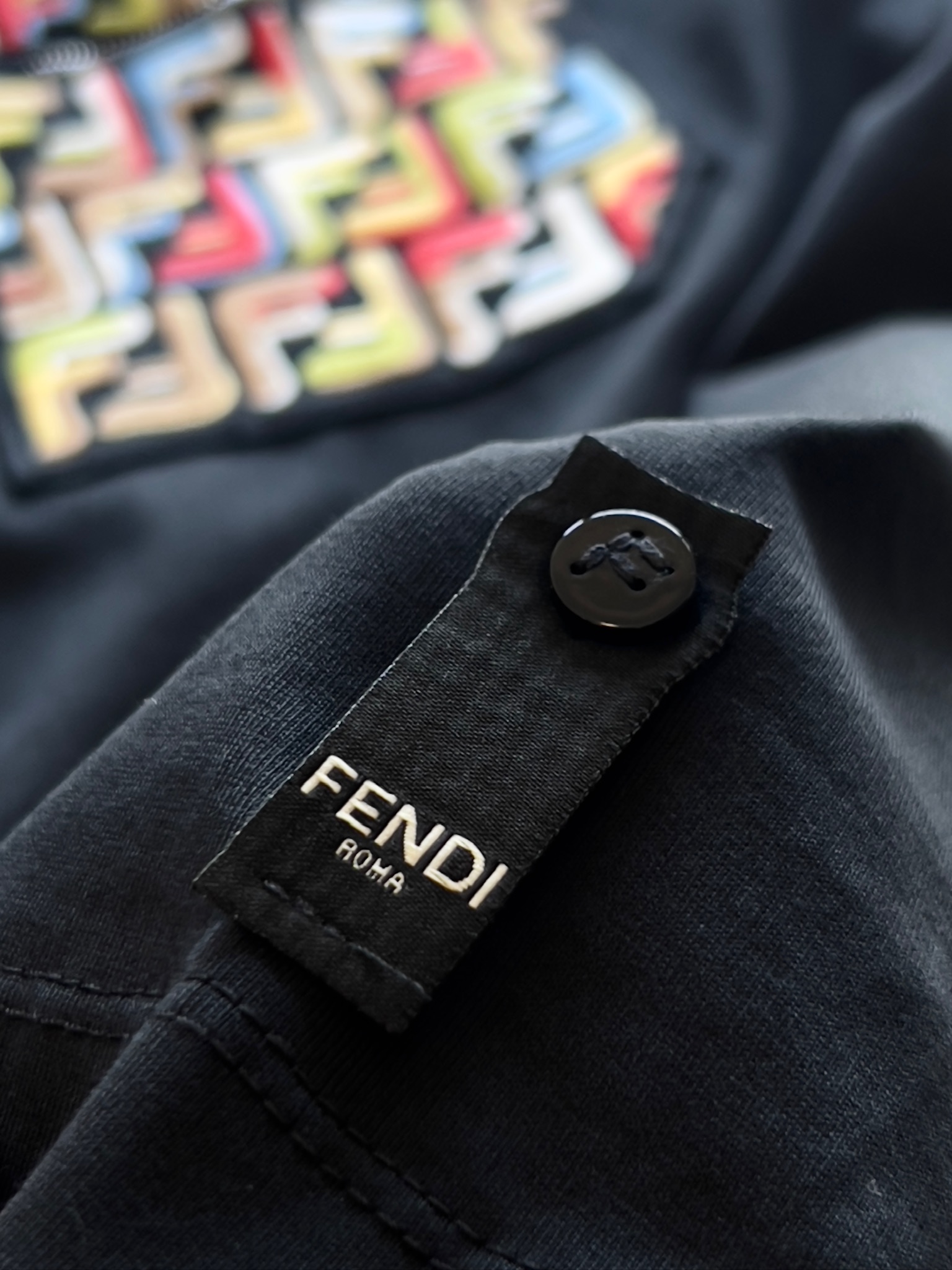 這款衣服是AAAAA 1:1 質量(非常棒). 使用了和原版一模一樣的材料. 商標部分也保持了和芬迪/Fendi一樣. 圖片拍攝是實物衣服拍攝, 您所收到的實物保證和我們圖片一模一樣.