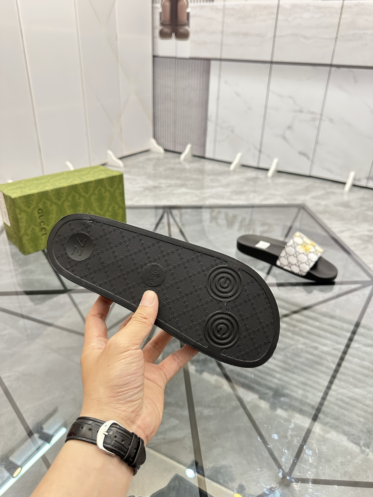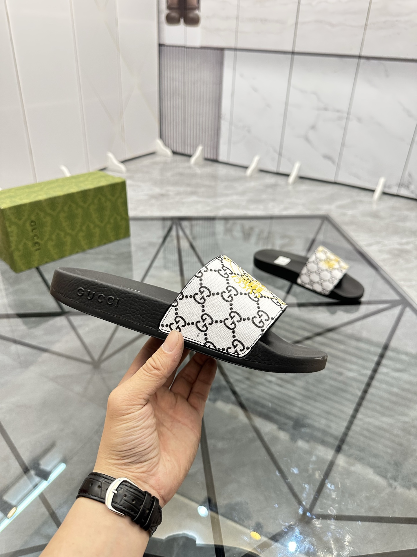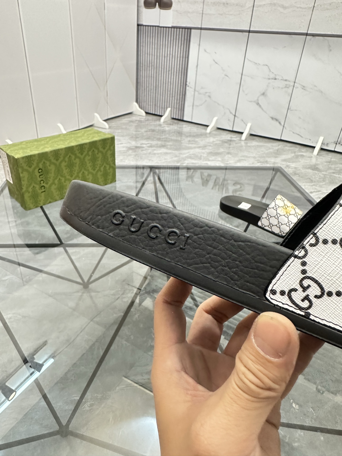 這款鞋子是AAAAA 1:1 質量(非常棒). 使用了和原版一模一樣的材料. 商標部分也保持了和古奇/Gucci一樣. 圖片拍攝是實物鞋子拍攝, 您所收到的實物保證和我們圖片一模一樣.