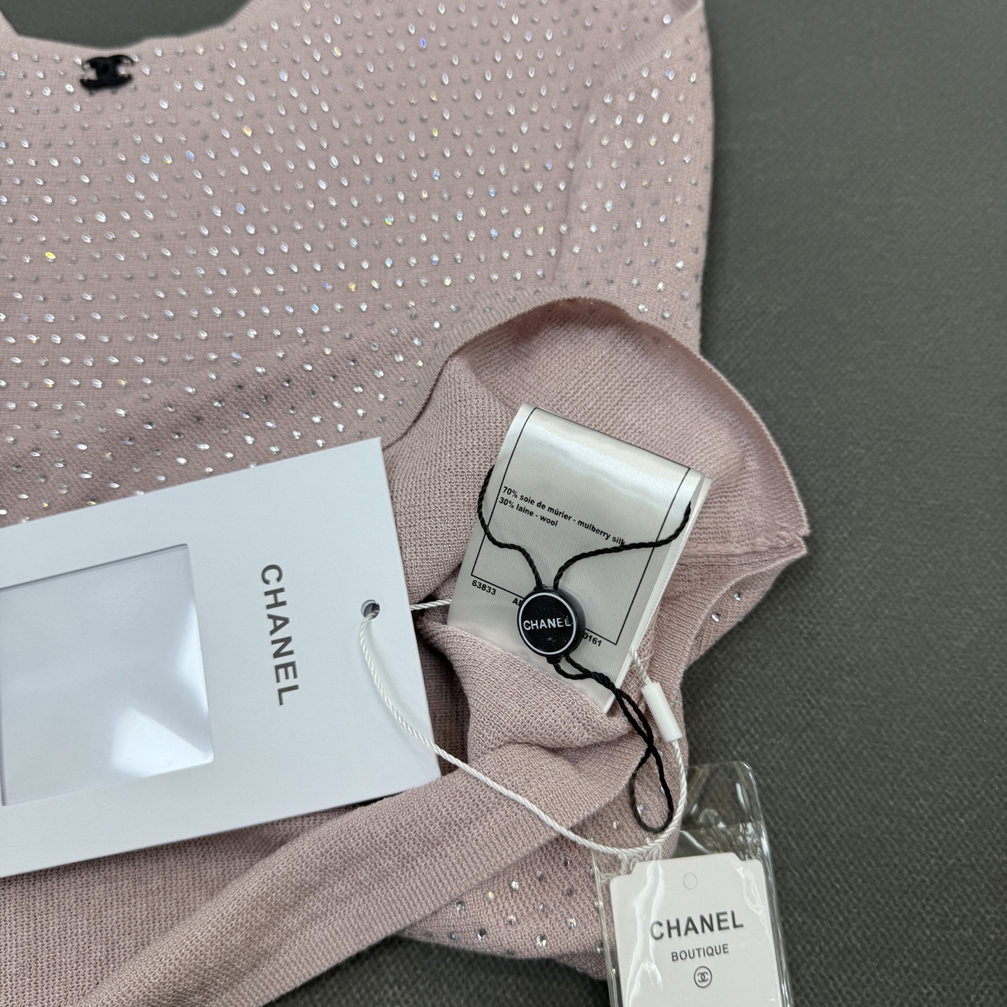 這款衣服是AAAAA 1:1 質量(非常棒). 使用了和原版一模一樣的材料. 商標部分也保持了和香奈兒/Chanel一樣. 圖片拍攝是實物衣服拍攝, 您所收到的實物保證和我們圖片一模一樣.