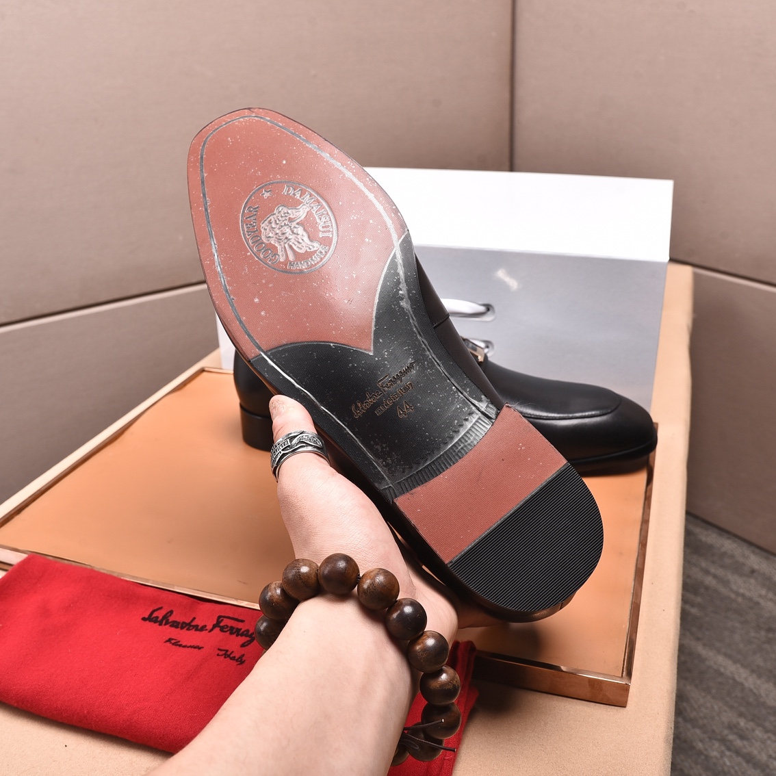 這款鞋子是AAAAA 1:1 質量(非常棒). 使用了和原版一模一樣的材料. 商標部分也保持了和菲拉格慕/Salvatore Ferragamo一樣. 圖片拍攝是實物鞋子拍攝, 您所收到的實物保證和我們圖片一模一樣.