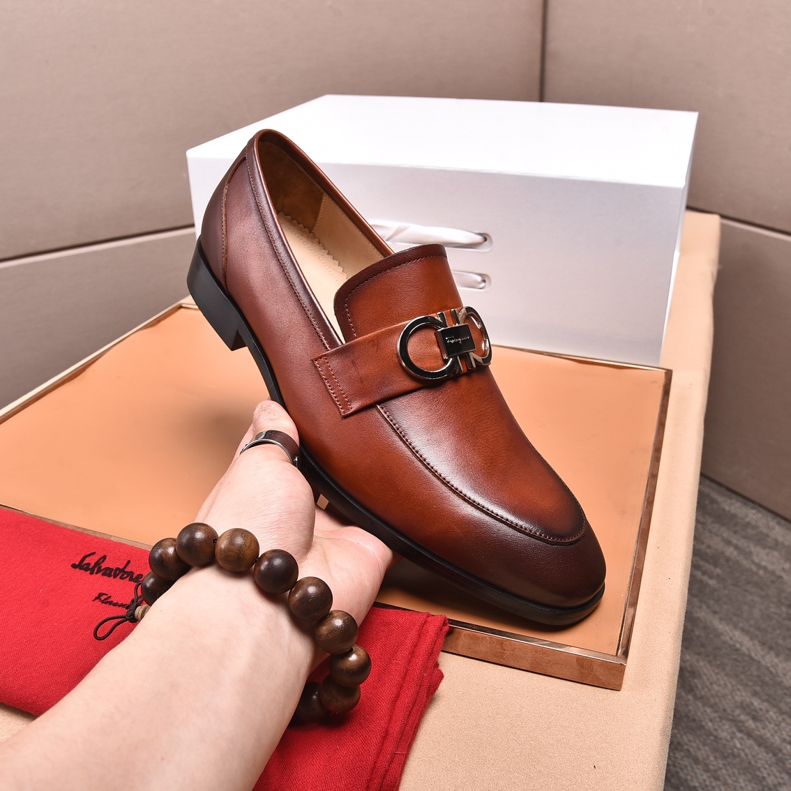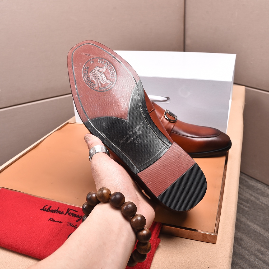 這款鞋子是AAAAA 1:1 質量(非常棒). 使用了和原版一模一樣的材料. 商標部分也保持了和菲拉格慕/Salvatore Ferragamo一樣. 圖片拍攝是實物鞋子拍攝, 您所收到的實物保證和我們圖片一模一樣.