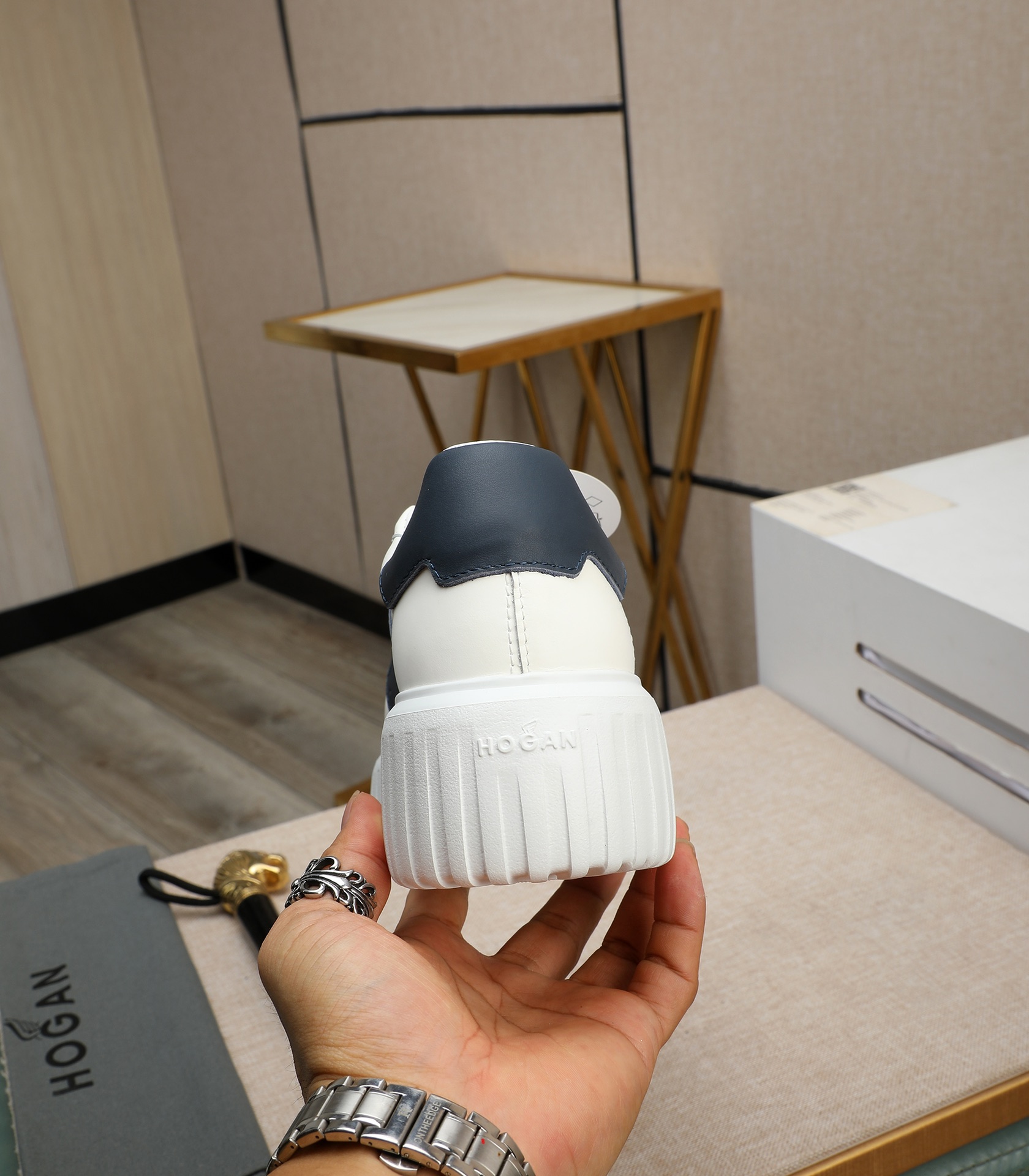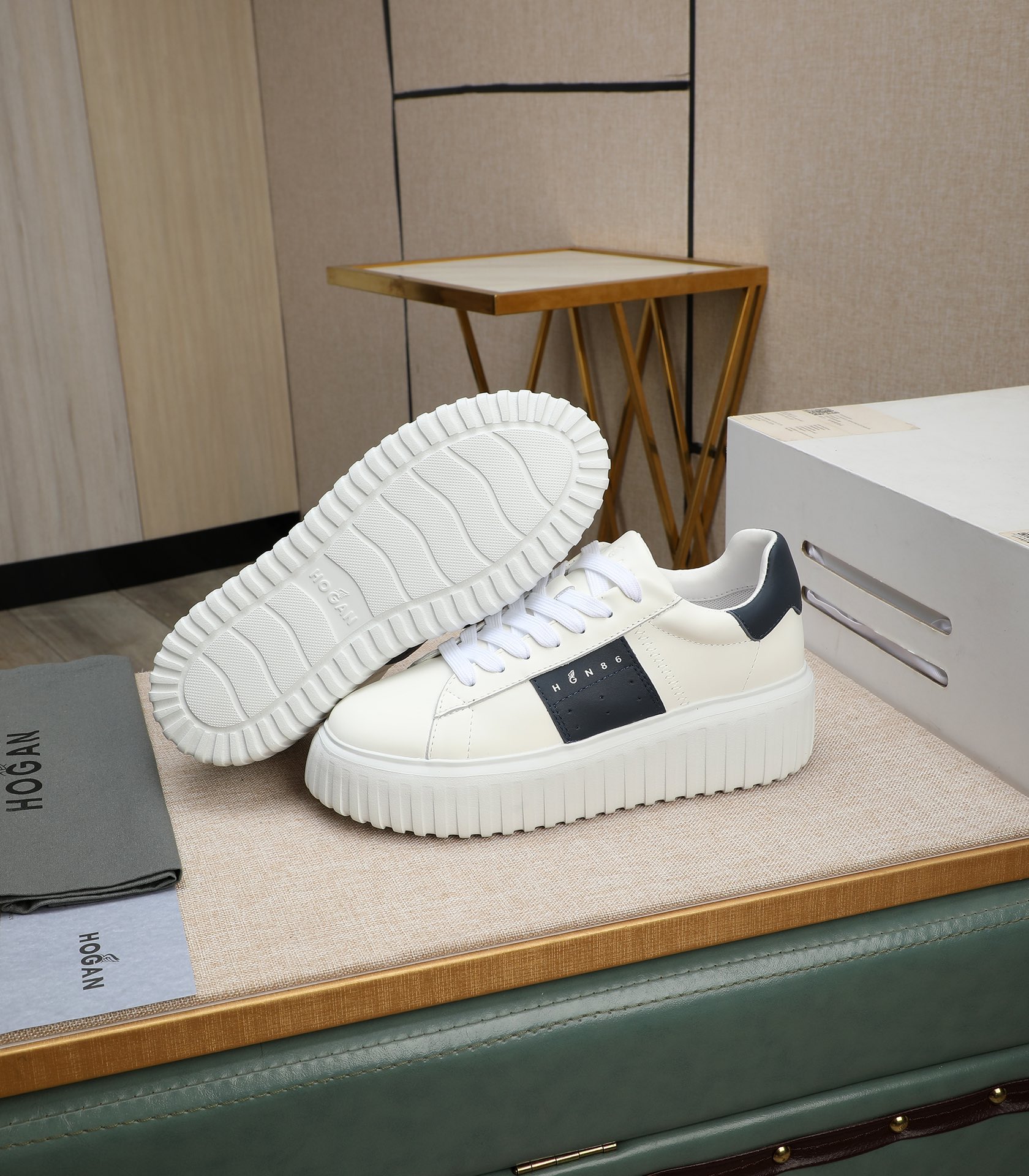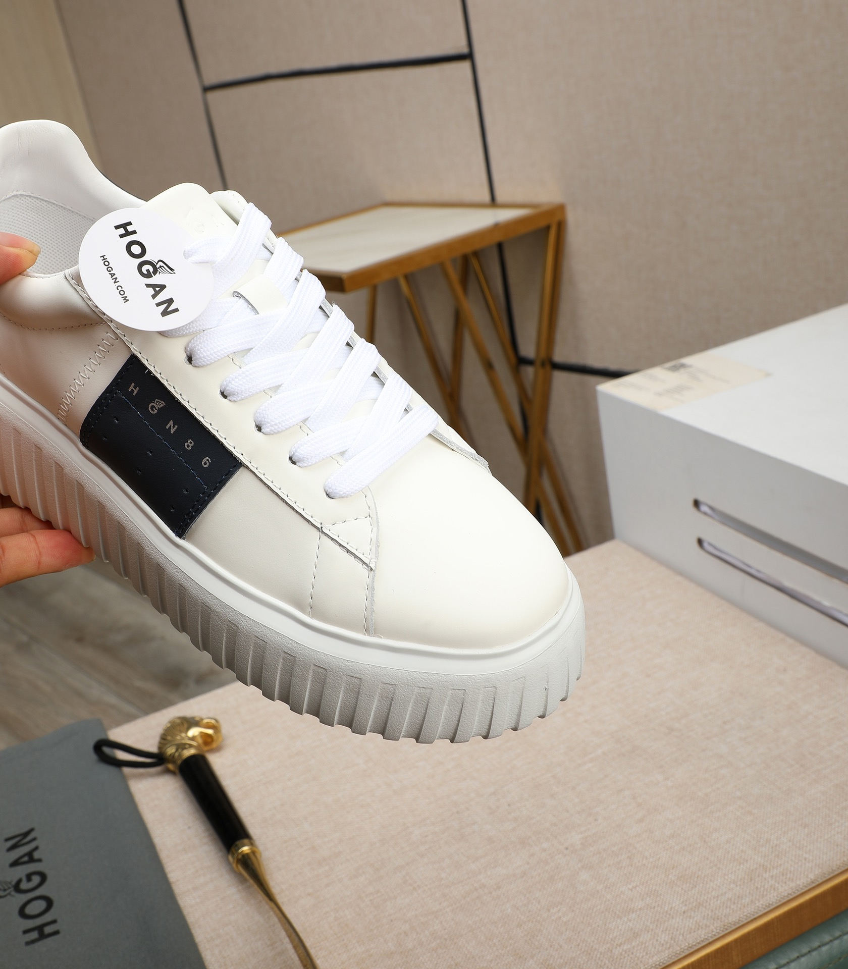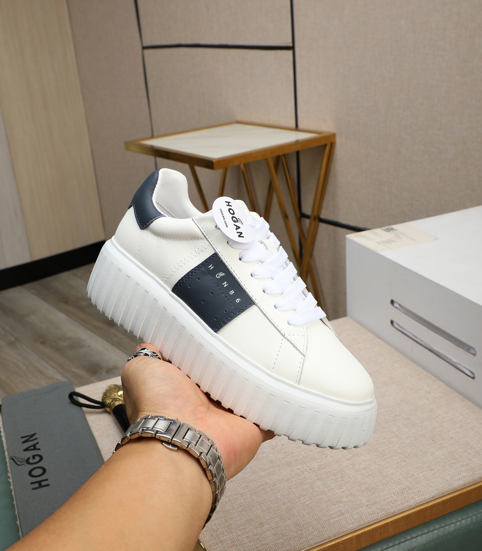 這款鞋子是AAAAA 1:1 質量(非常棒). 使用了和原版一模一樣的材料. 商標部分也保持了和Hogan一樣. 圖片拍攝是實物鞋子拍攝, 您所收到的實物保證和我們圖片一模一樣.