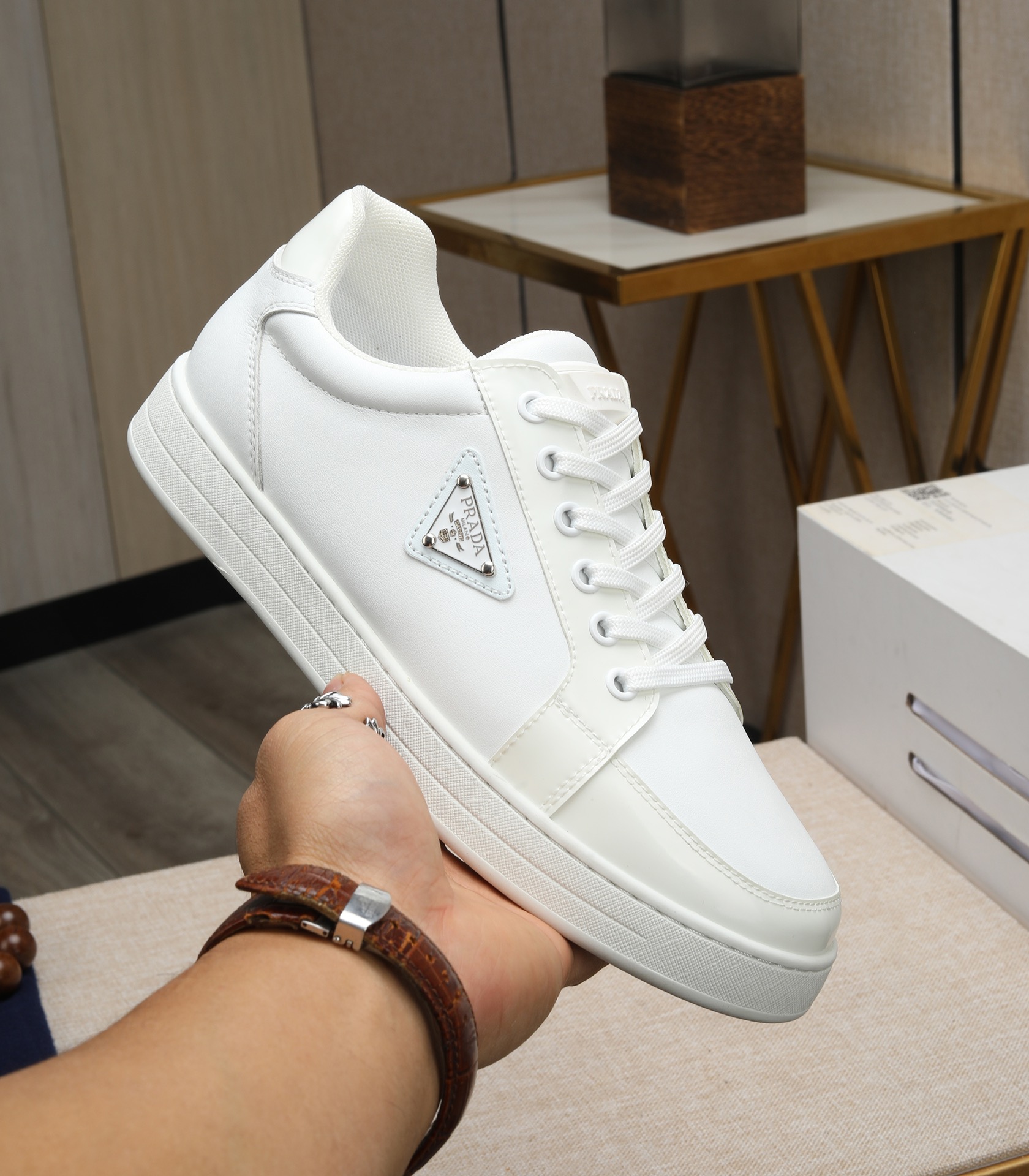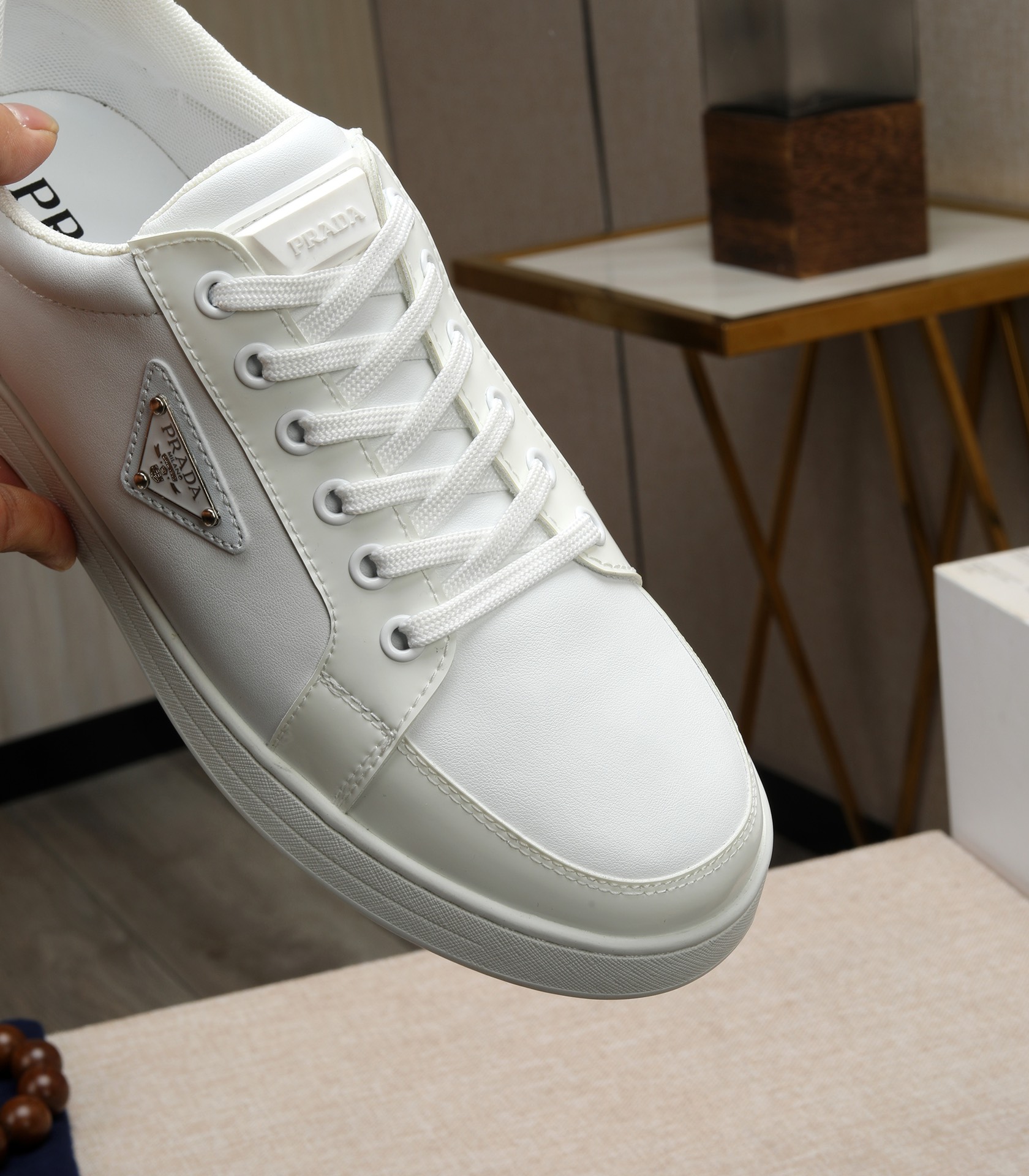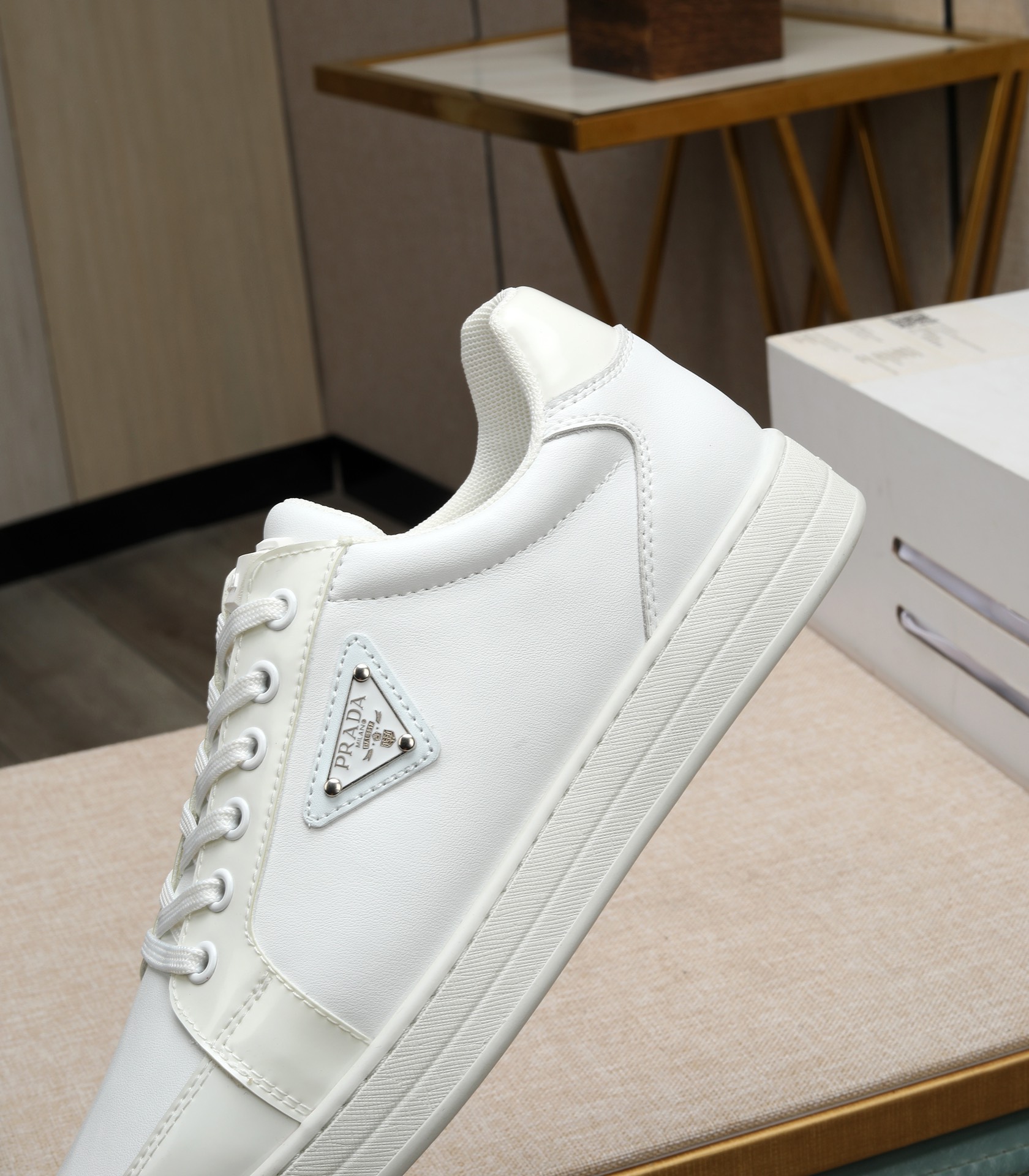 這款鞋子是AAAAA 1:1 質量(非常棒). 使用了和原版一模一樣的材料. 商標部分也保持了和普拉達/Prada一樣. 圖片拍攝是實物鞋子拍攝, 您所收到的實物保證和我們圖片一模一樣.
