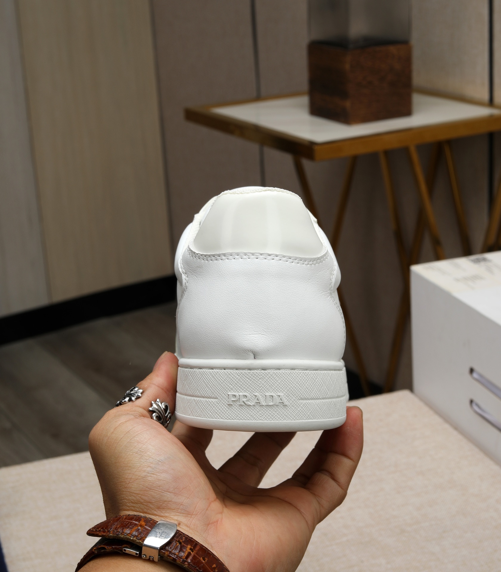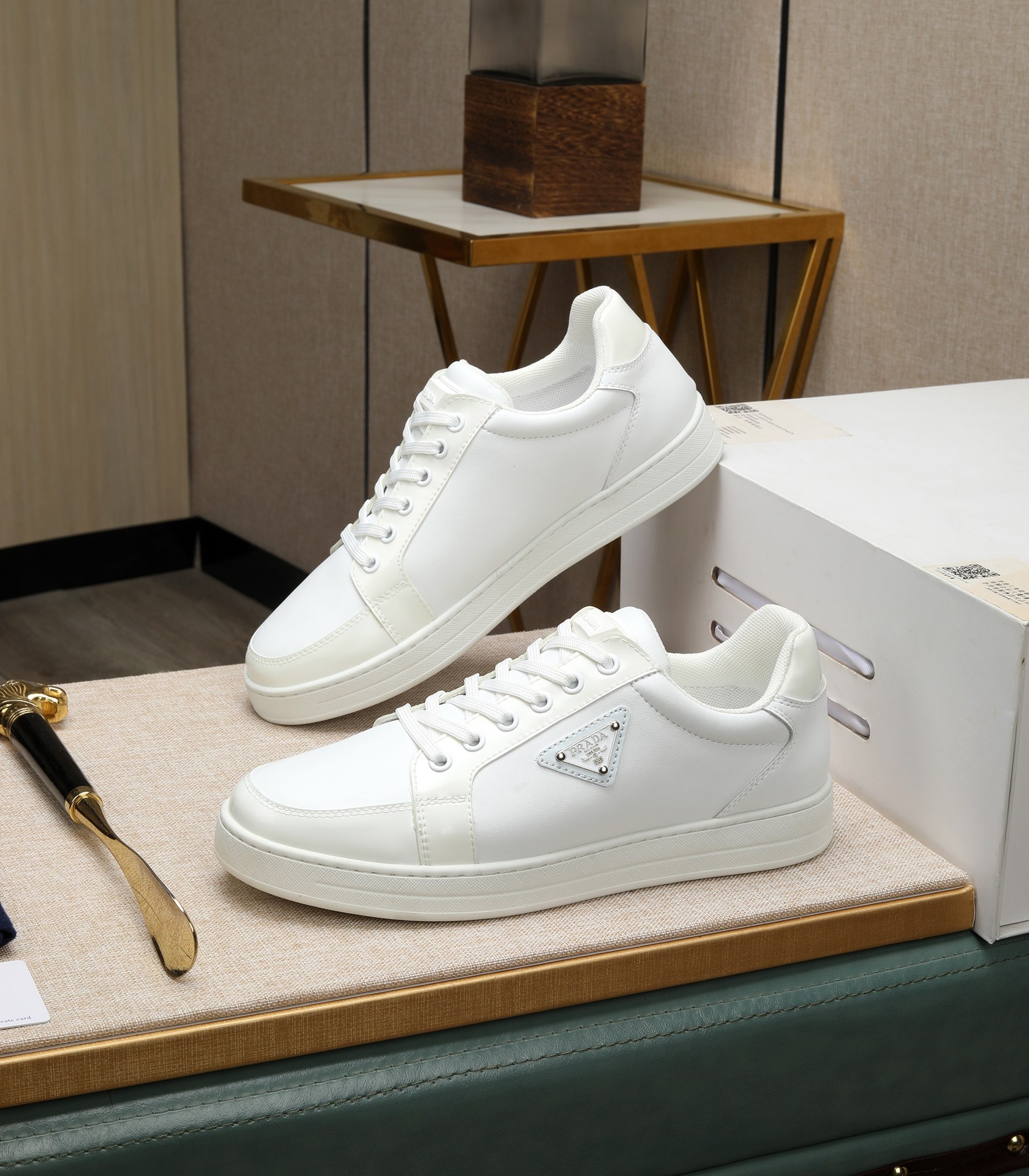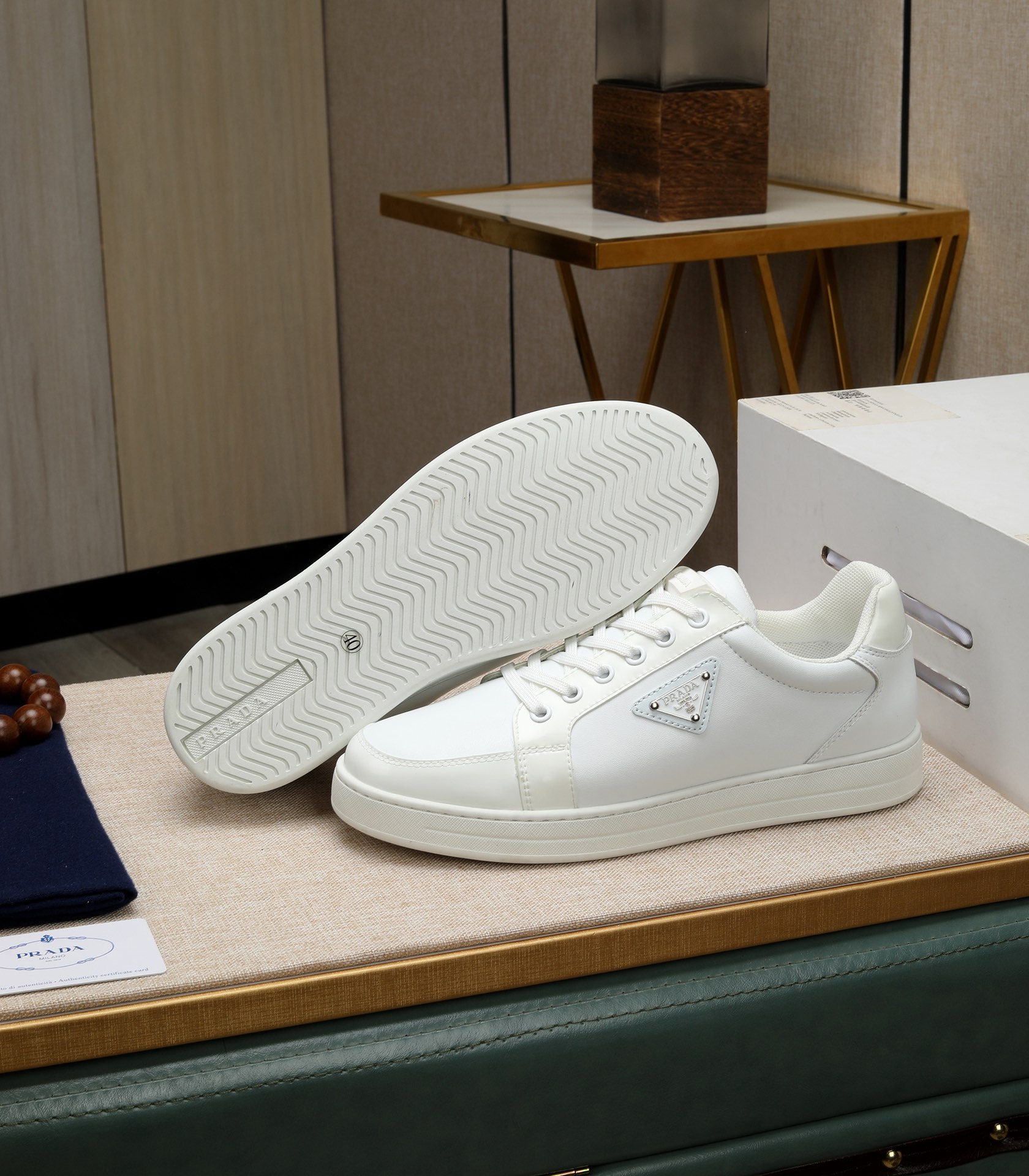 這款鞋子是AAAAA 1:1 質量(非常棒). 使用了和原版一模一樣的材料. 商標部分也保持了和普拉達/Prada一樣. 圖片拍攝是實物鞋子拍攝, 您所收到的實物保證和我們圖片一模一樣.