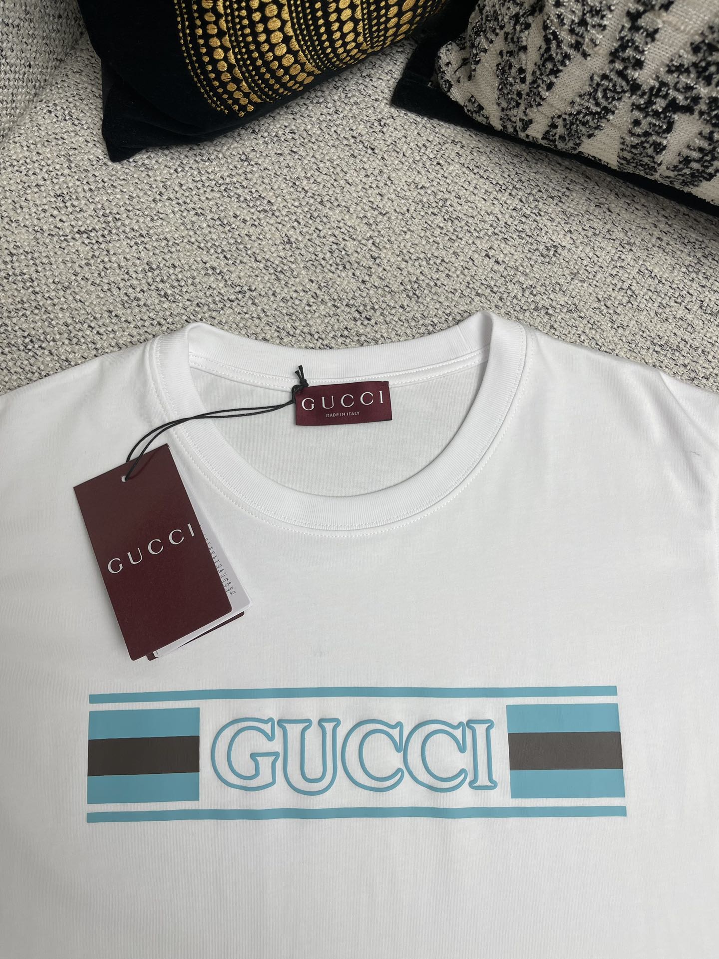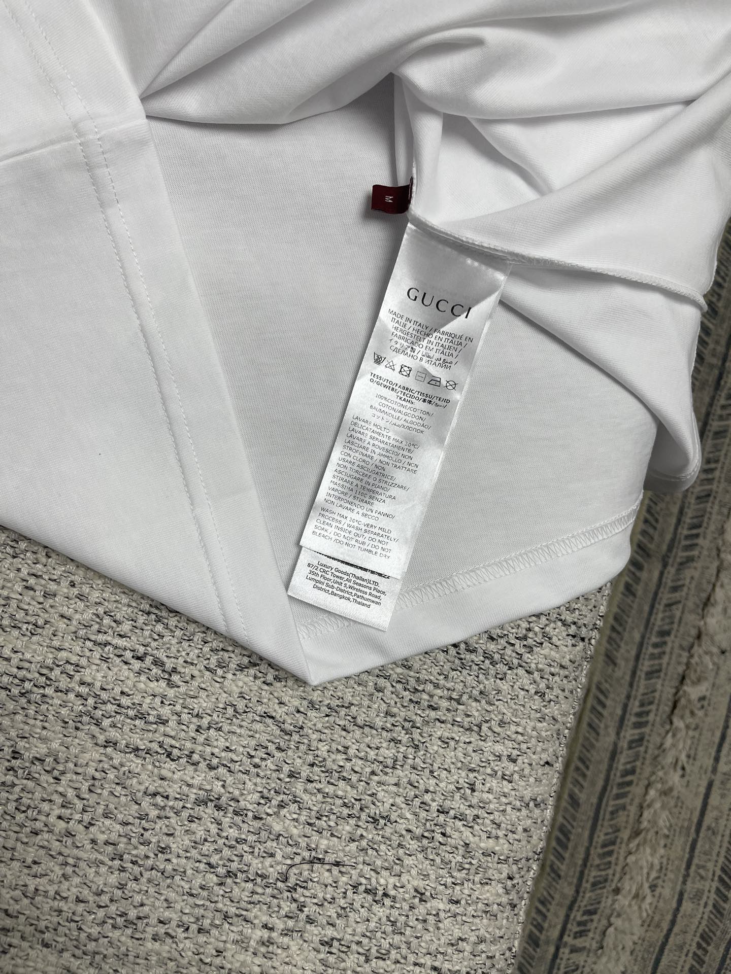 這款衣服是AAAAA 1:1 質量(非常棒). 使用了和原版一模一樣的材料. 商標部分也保持了和古奇/Gucci一樣. 圖片拍攝是實物衣服拍攝, 您所收到的實物保證和我們圖片一模一樣.