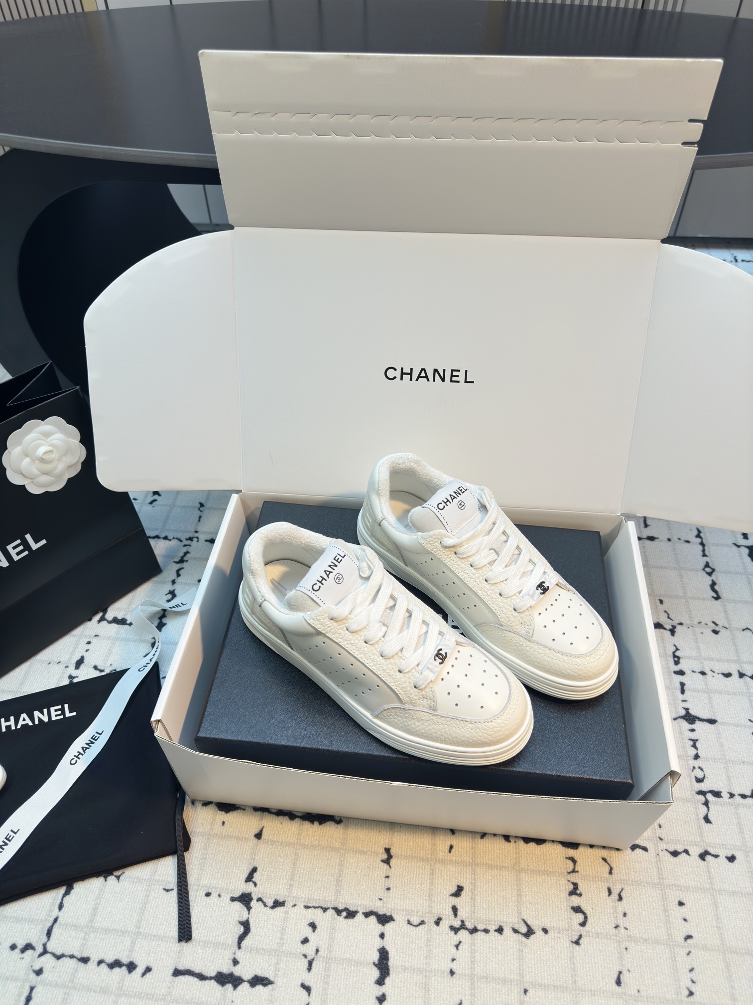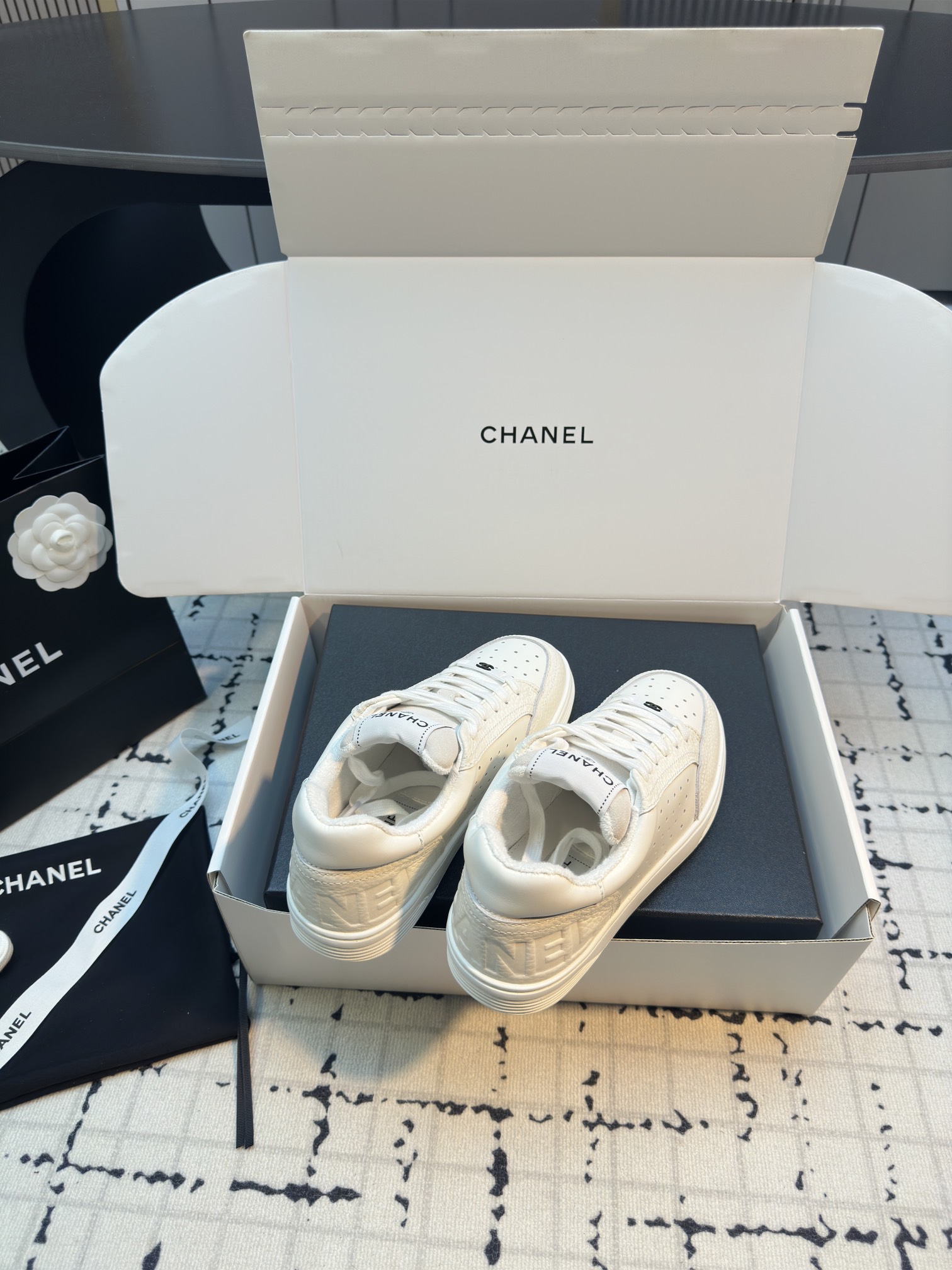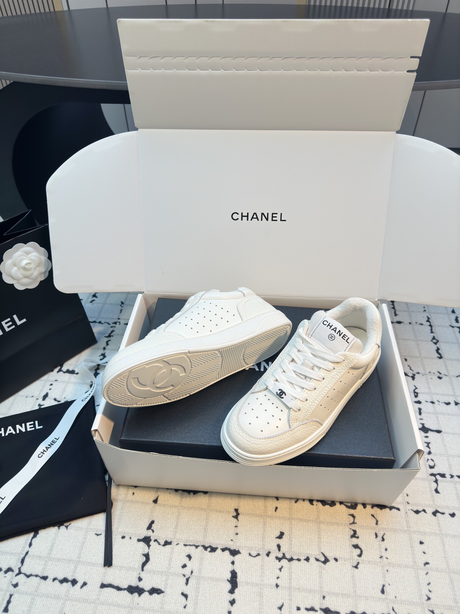 這款鞋子是AAAAA 1:1 質量(非常棒). 使用了和原版一模一樣的材料. 商標部分也保持了和香奈兒/Chanel一樣. 圖片拍攝是實物鞋子拍攝, 您所收到的實物保證和我們圖片一模一樣.