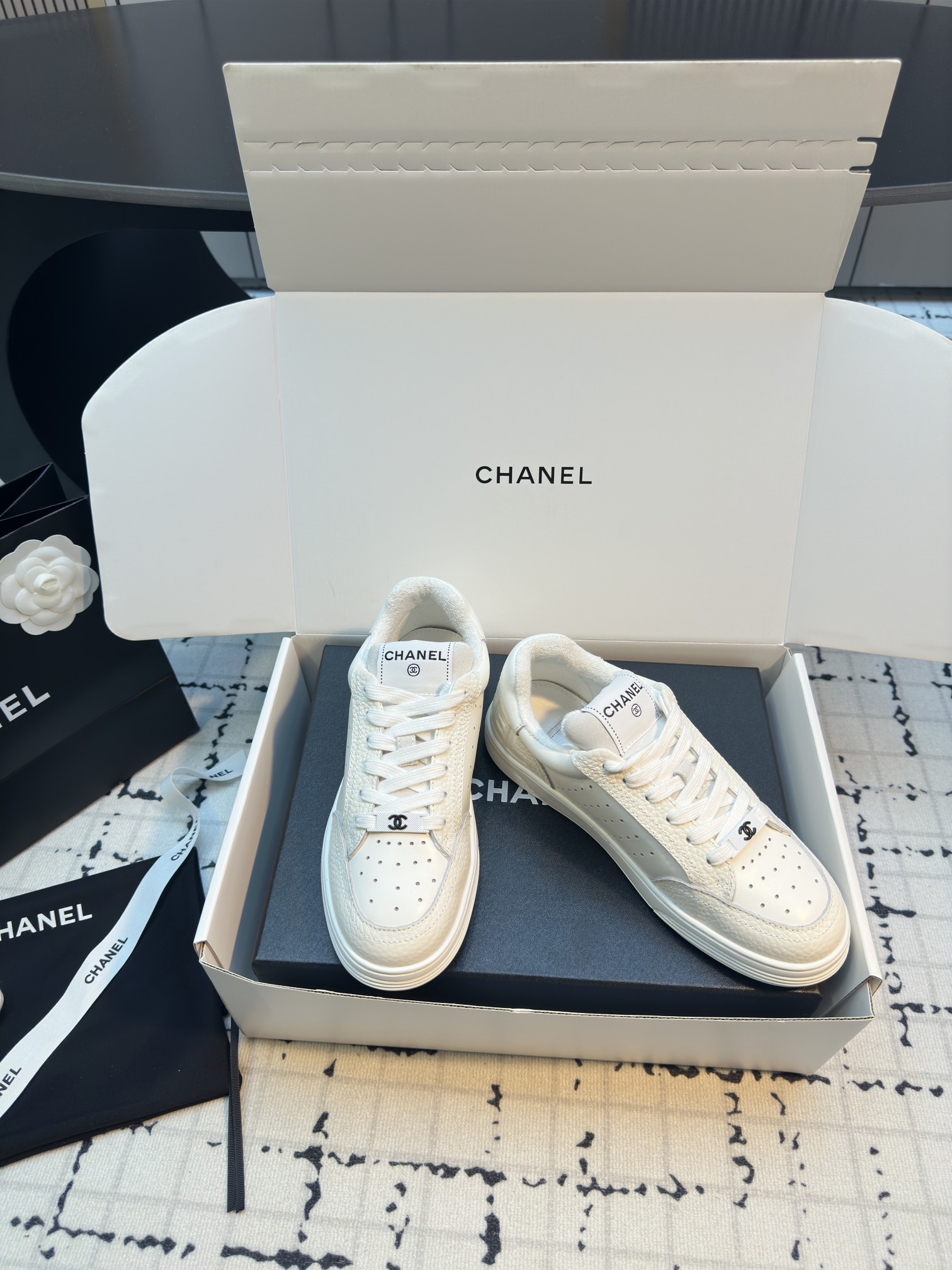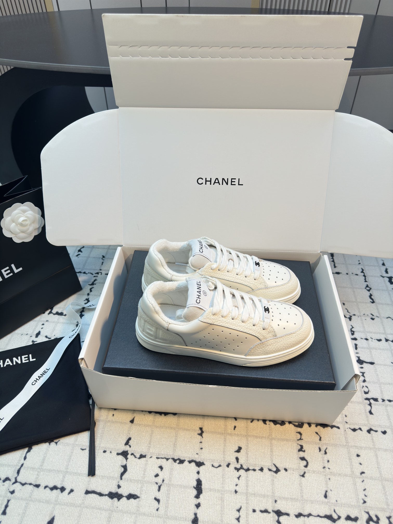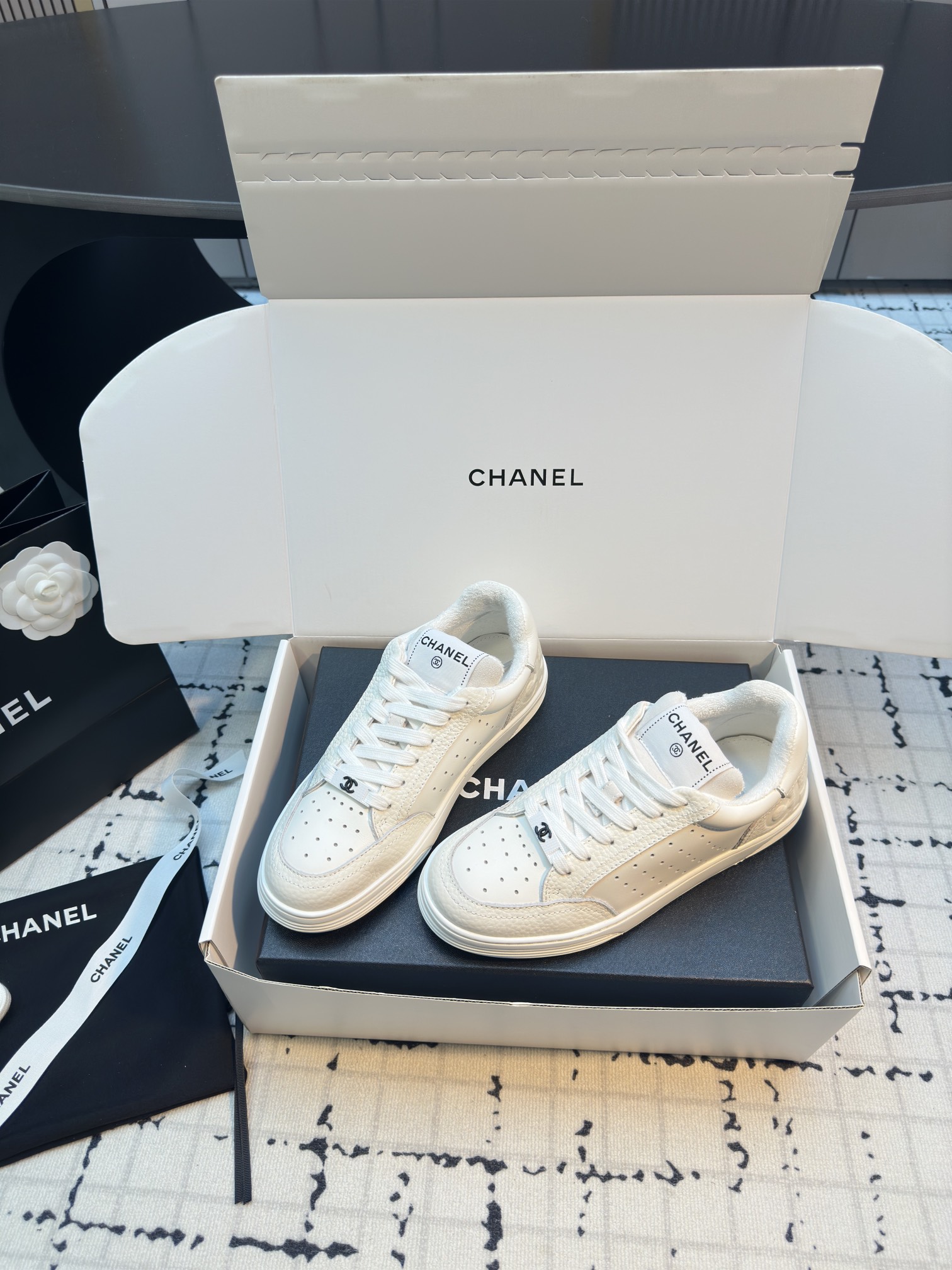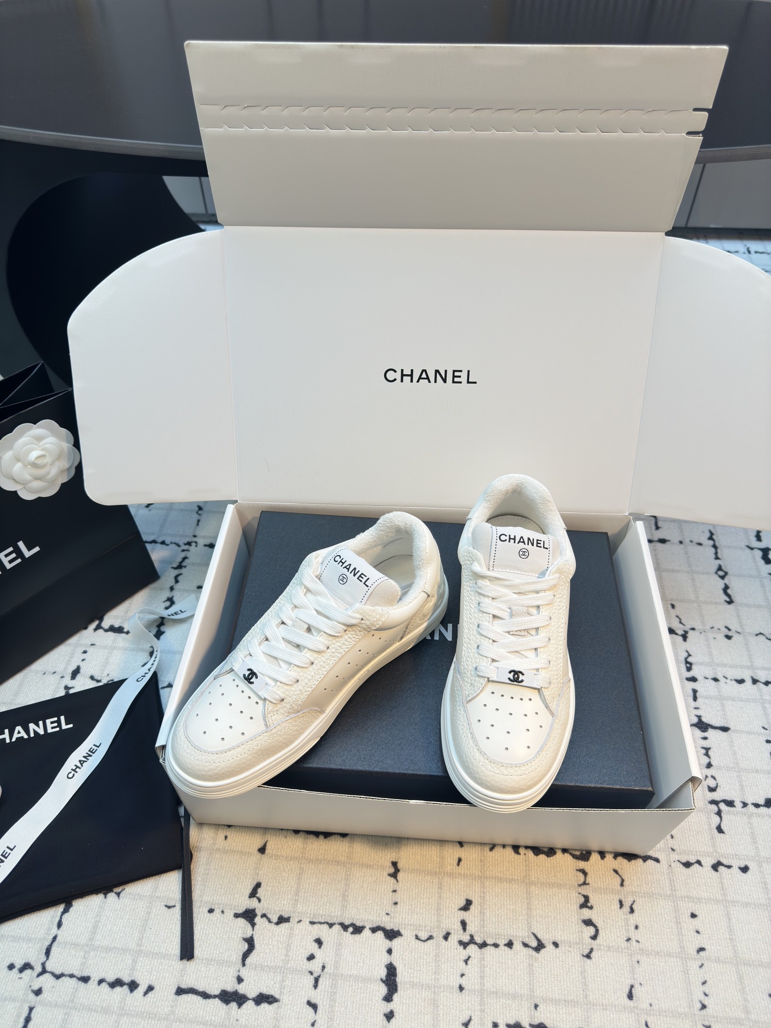 這款鞋子是AAAAA 1:1 質量(非常棒). 使用了和原版一模一樣的材料. 商標部分也保持了和香奈兒/Chanel一樣. 圖片拍攝是實物鞋子拍攝, 您所收到的實物保證和我們圖片一模一樣.