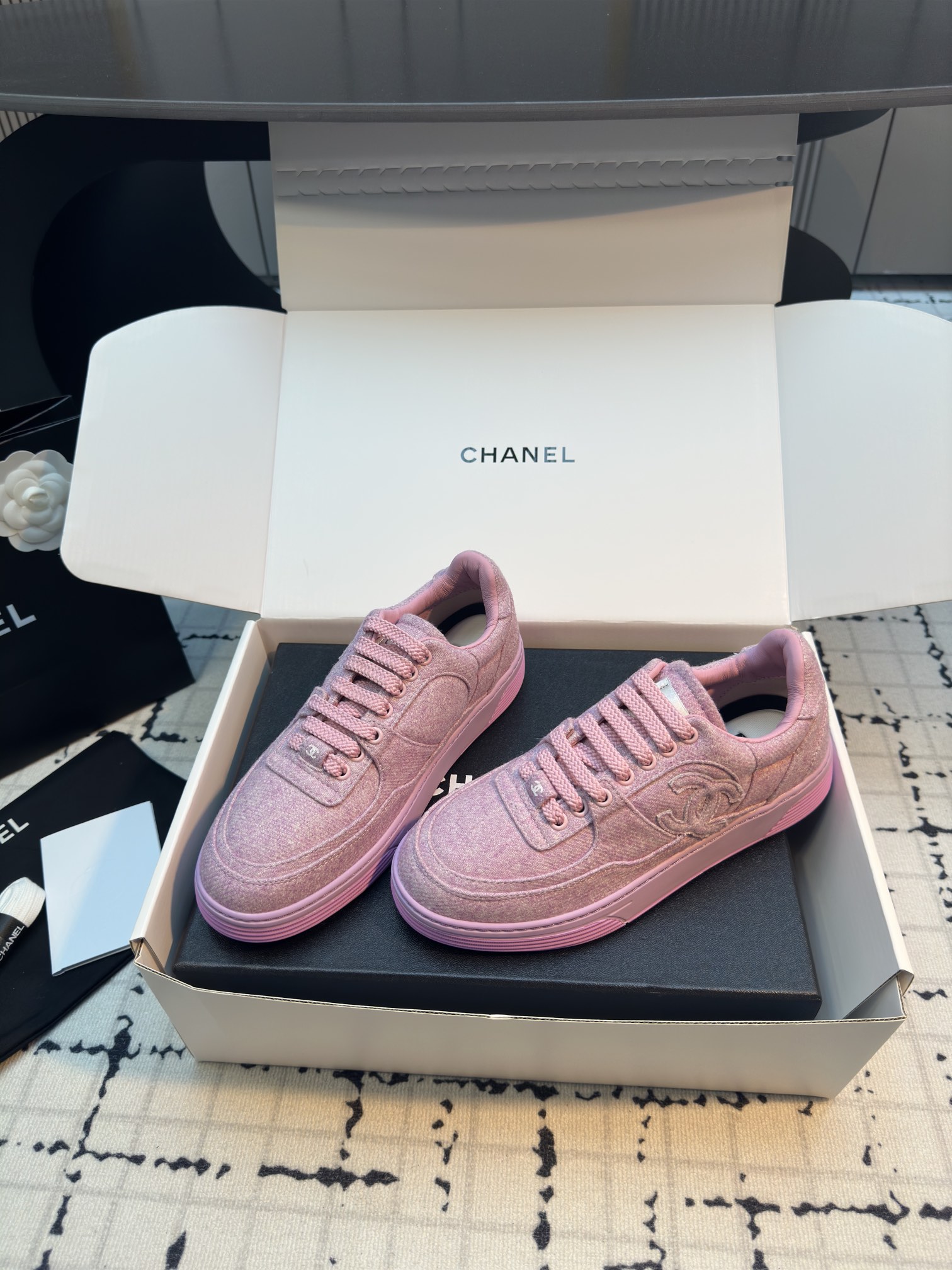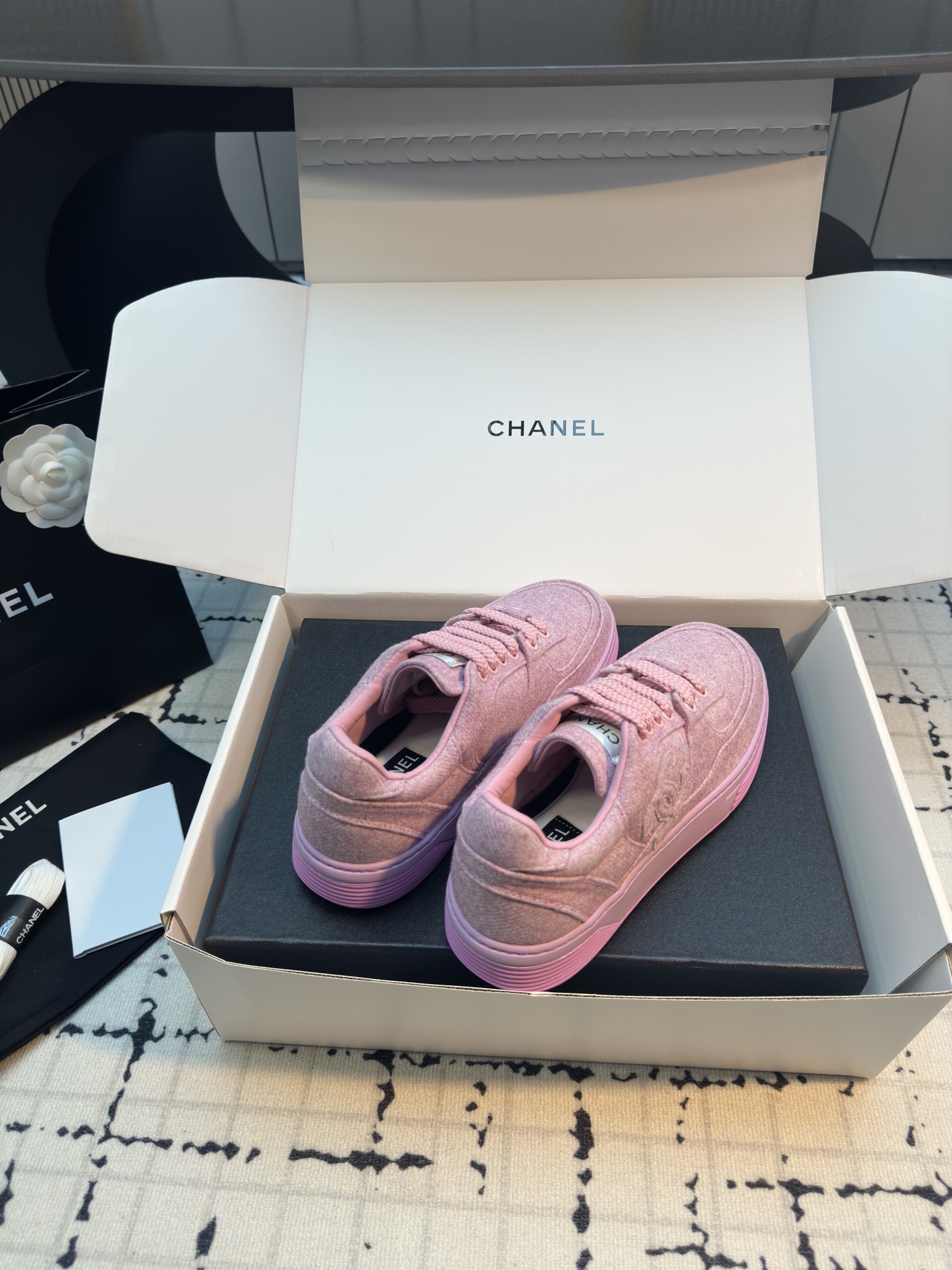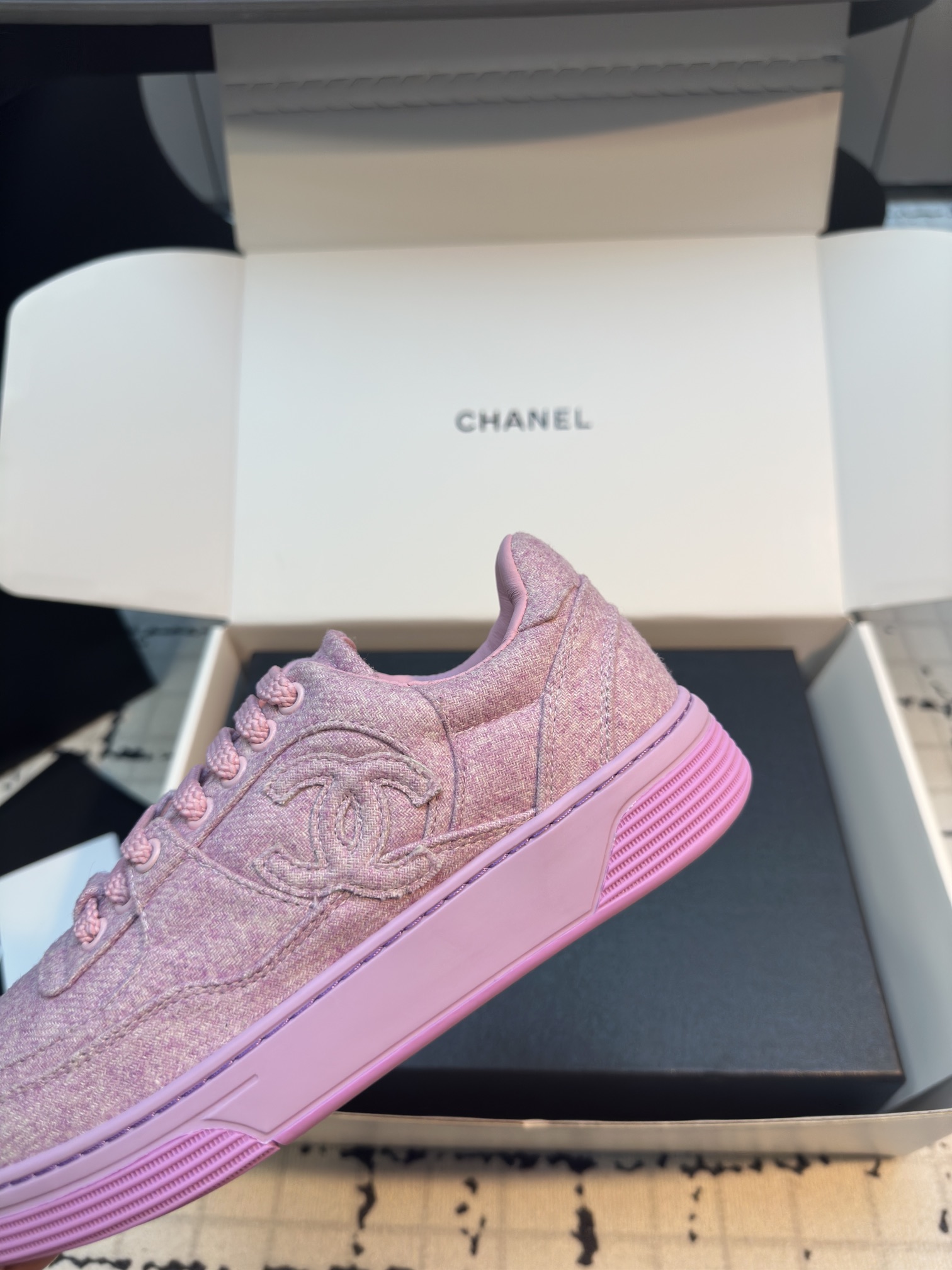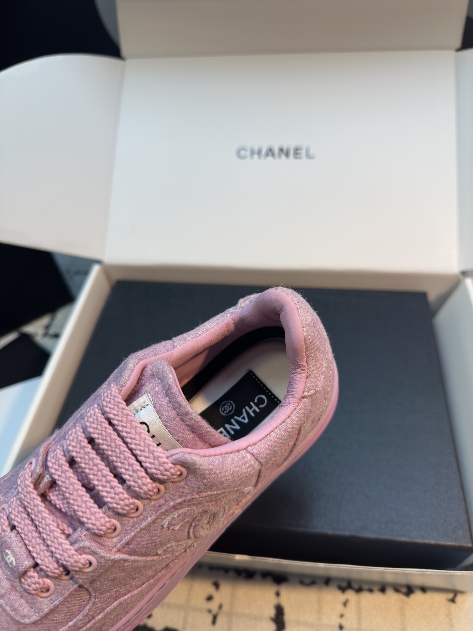 這款鞋子是AAAAA 1:1 質量(非常棒). 使用了和原版一模一樣的材料. 商標部分也保持了和香奈兒/Chanel一樣. 圖片拍攝是實物鞋子拍攝, 您所收到的實物保證和我們圖片一模一樣.