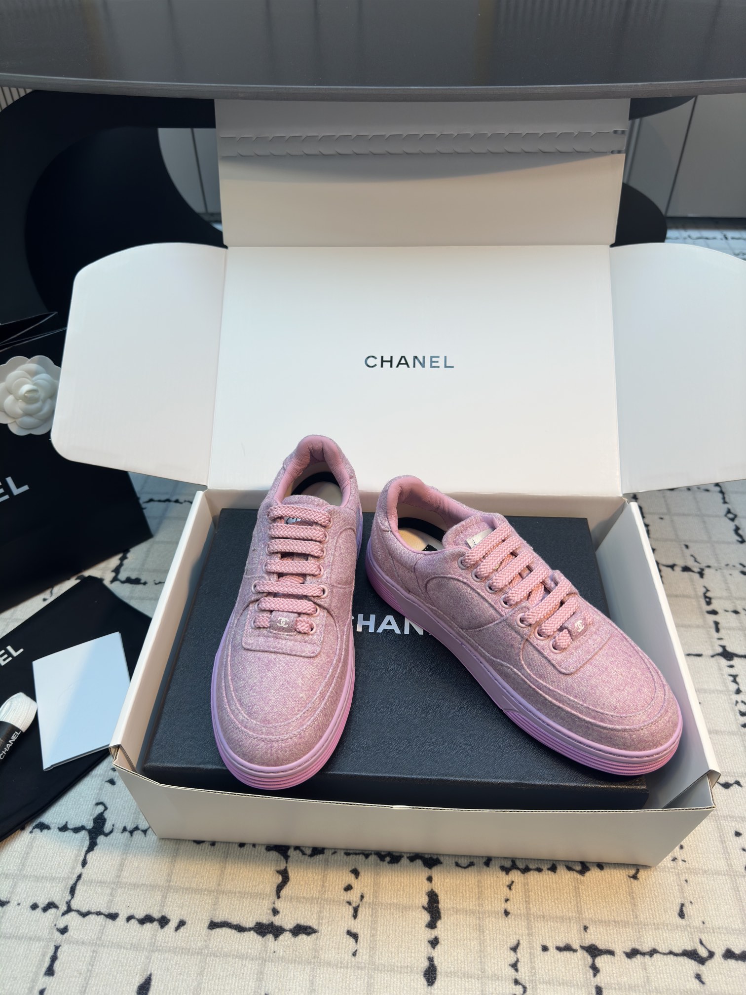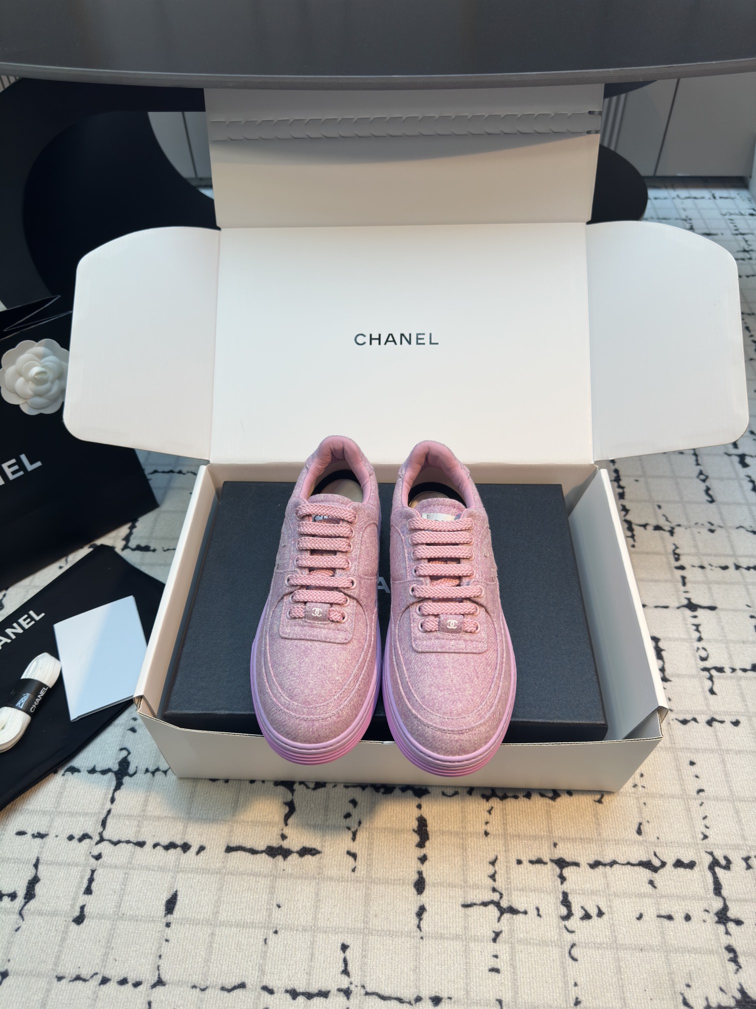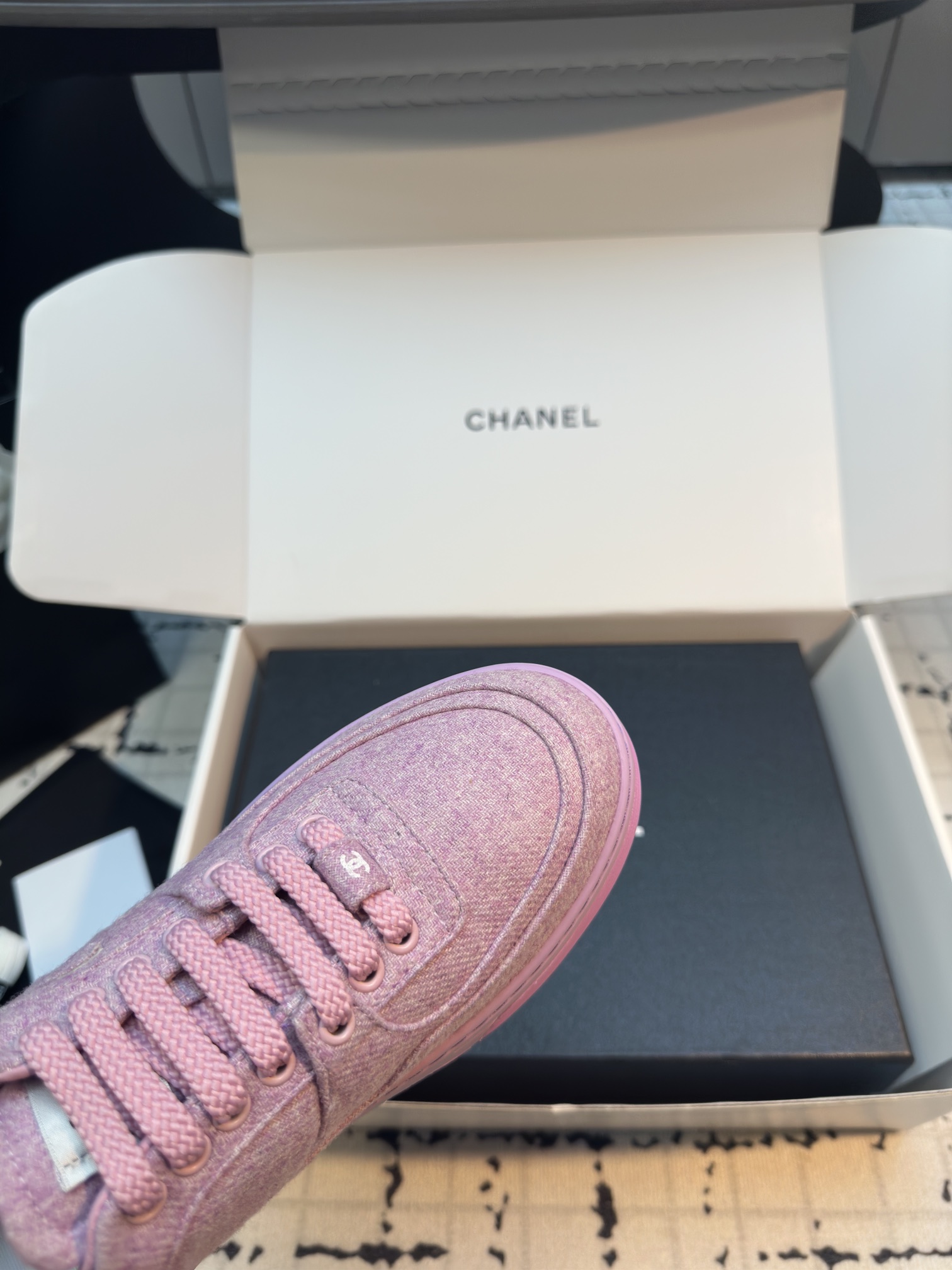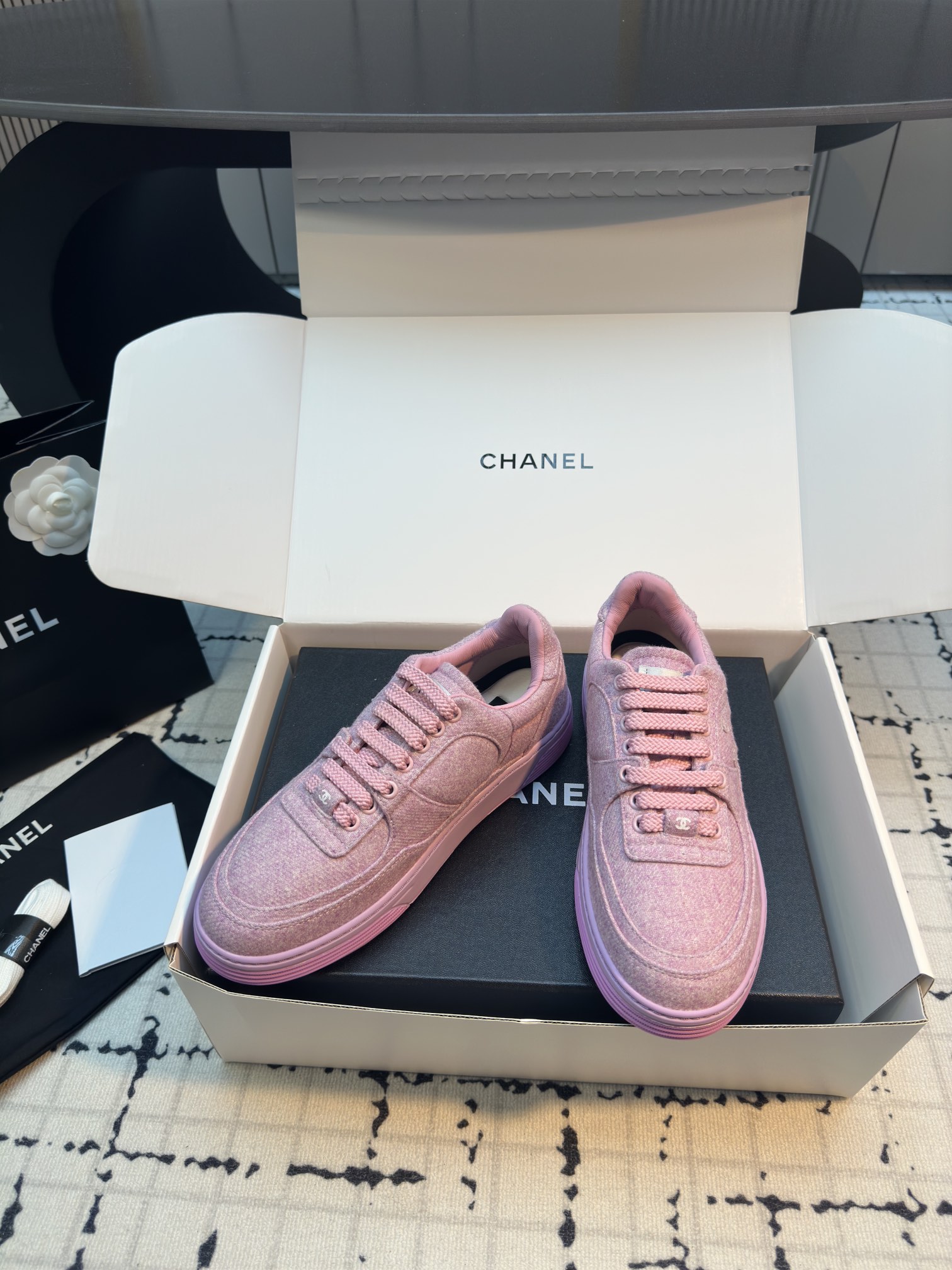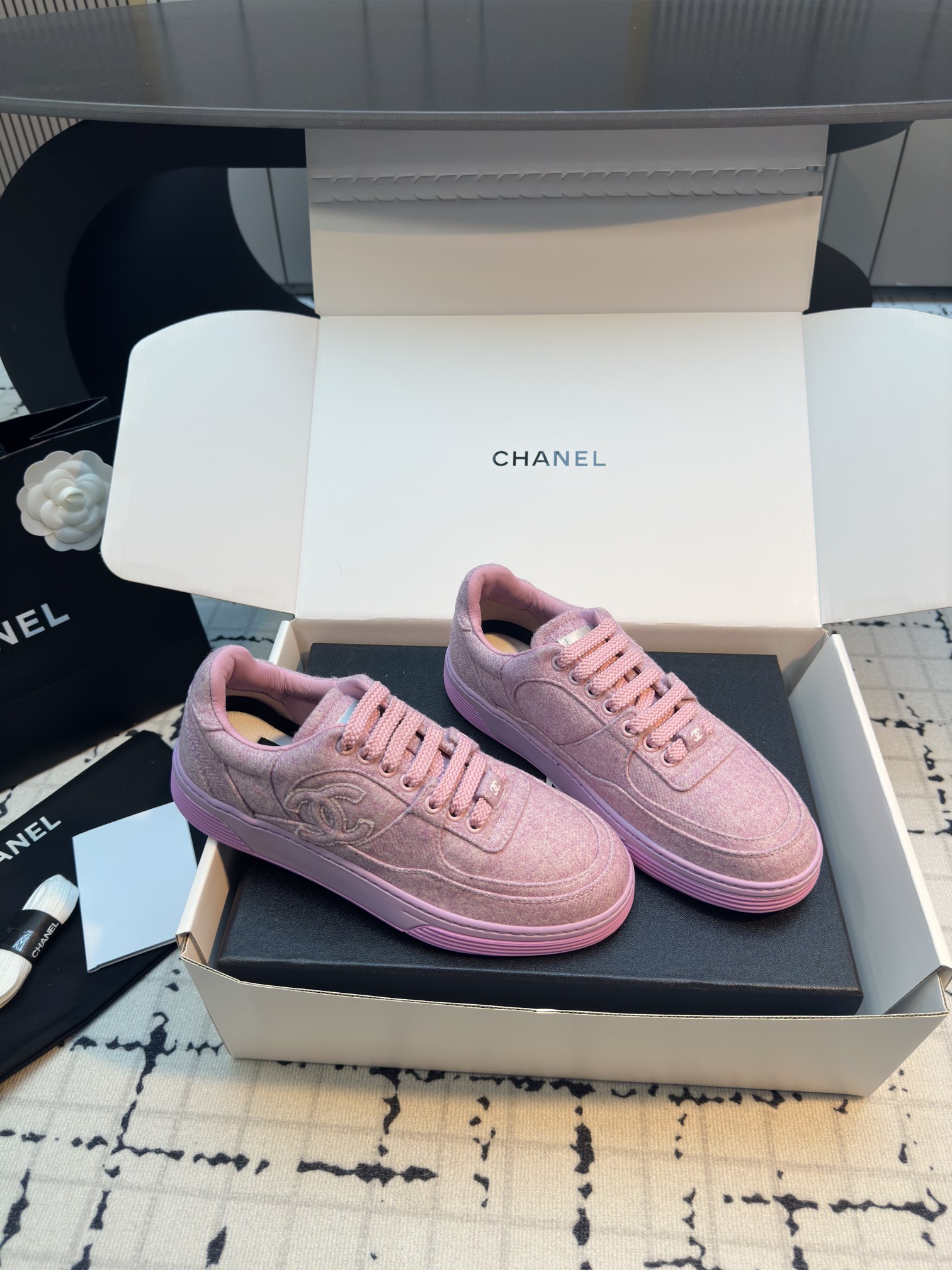 這款鞋子是AAAAA 1:1 質量(非常棒). 使用了和原版一模一樣的材料. 商標部分也保持了和香奈兒/Chanel一樣. 圖片拍攝是實物鞋子拍攝, 您所收到的實物保證和我們圖片一模一樣.