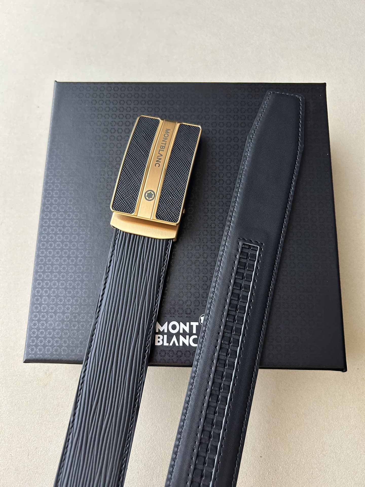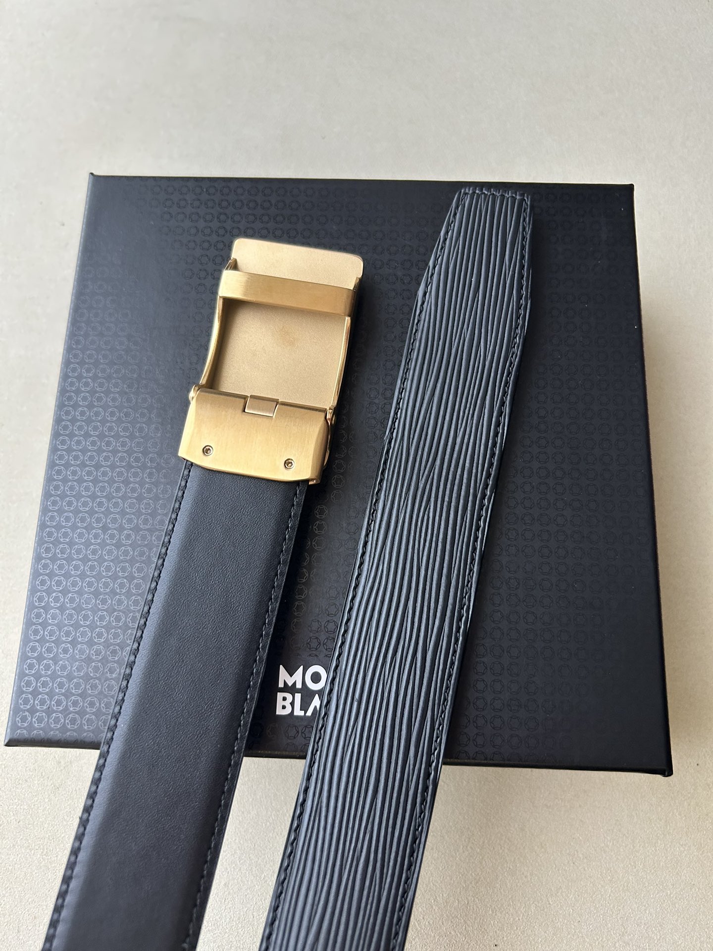 這款皮帶是AAAAA 1:1 質量(非常棒). 使用了和原版一模一樣的材料. 商標部分也保持了和萬寶龍/Montblanc一樣. 圖片拍攝是實物皮帶拍攝, 您所收到的實物保證和我們圖片一模一樣.