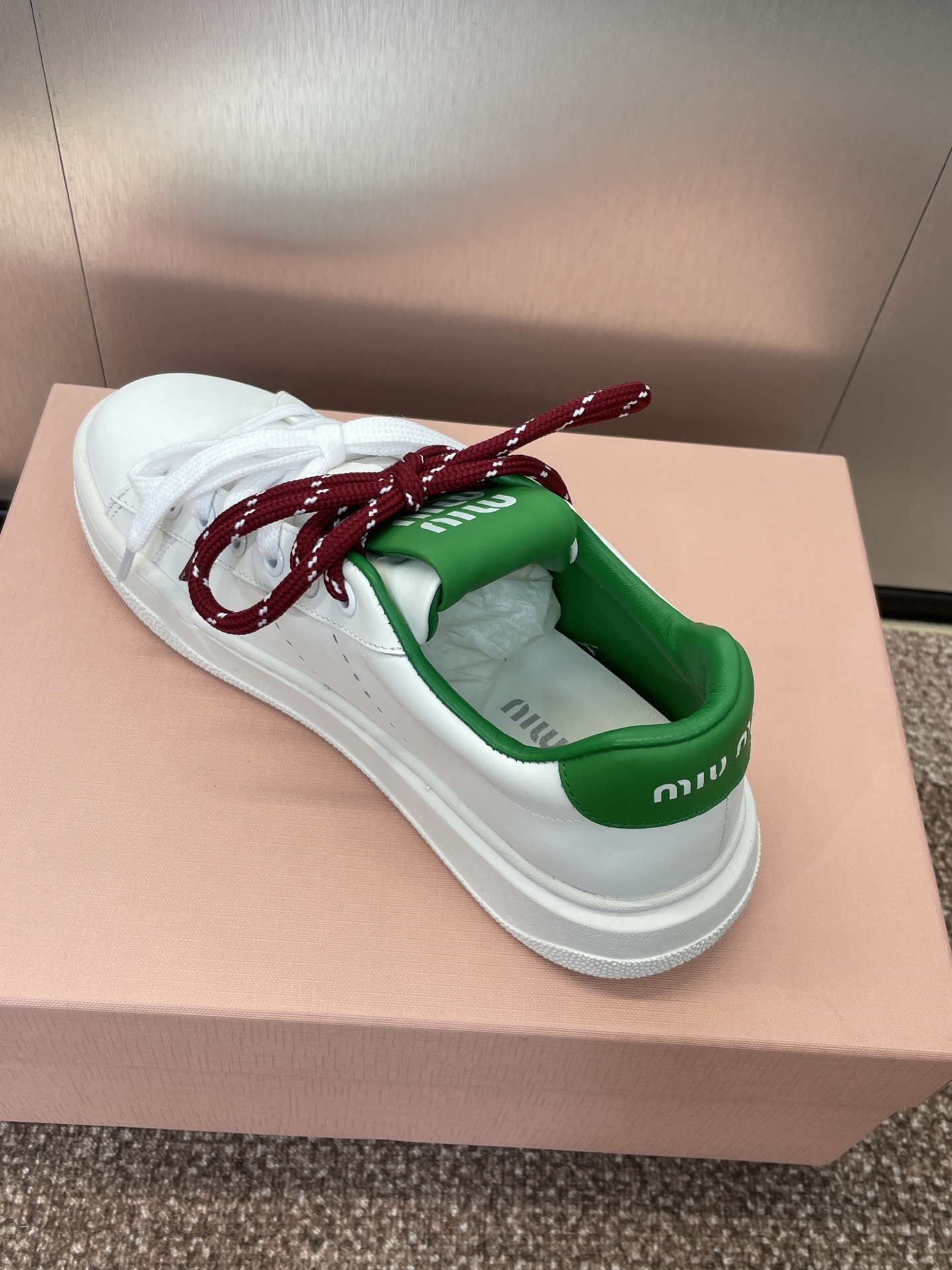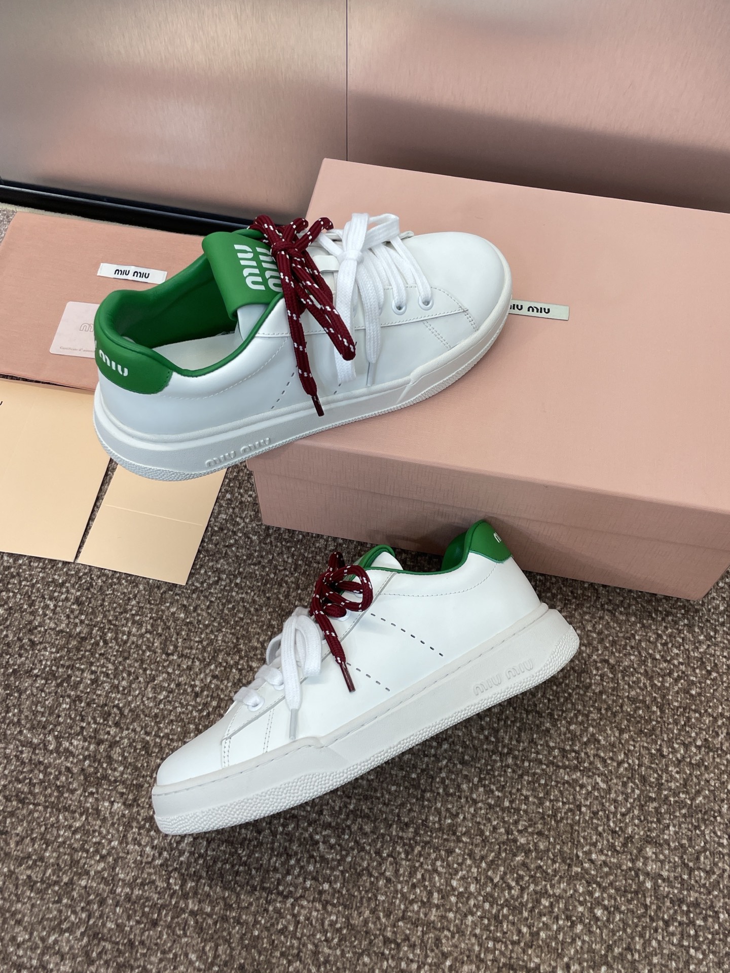 這款鞋子是AAAAA 1:1 質量(非常棒). 使用了和原版一模一樣的材料. 商標部分也保持了和繆繆/Miu Miu一樣. 圖片拍攝是實物鞋子拍攝, 您所收到的實物保證和我們圖片一模一樣.