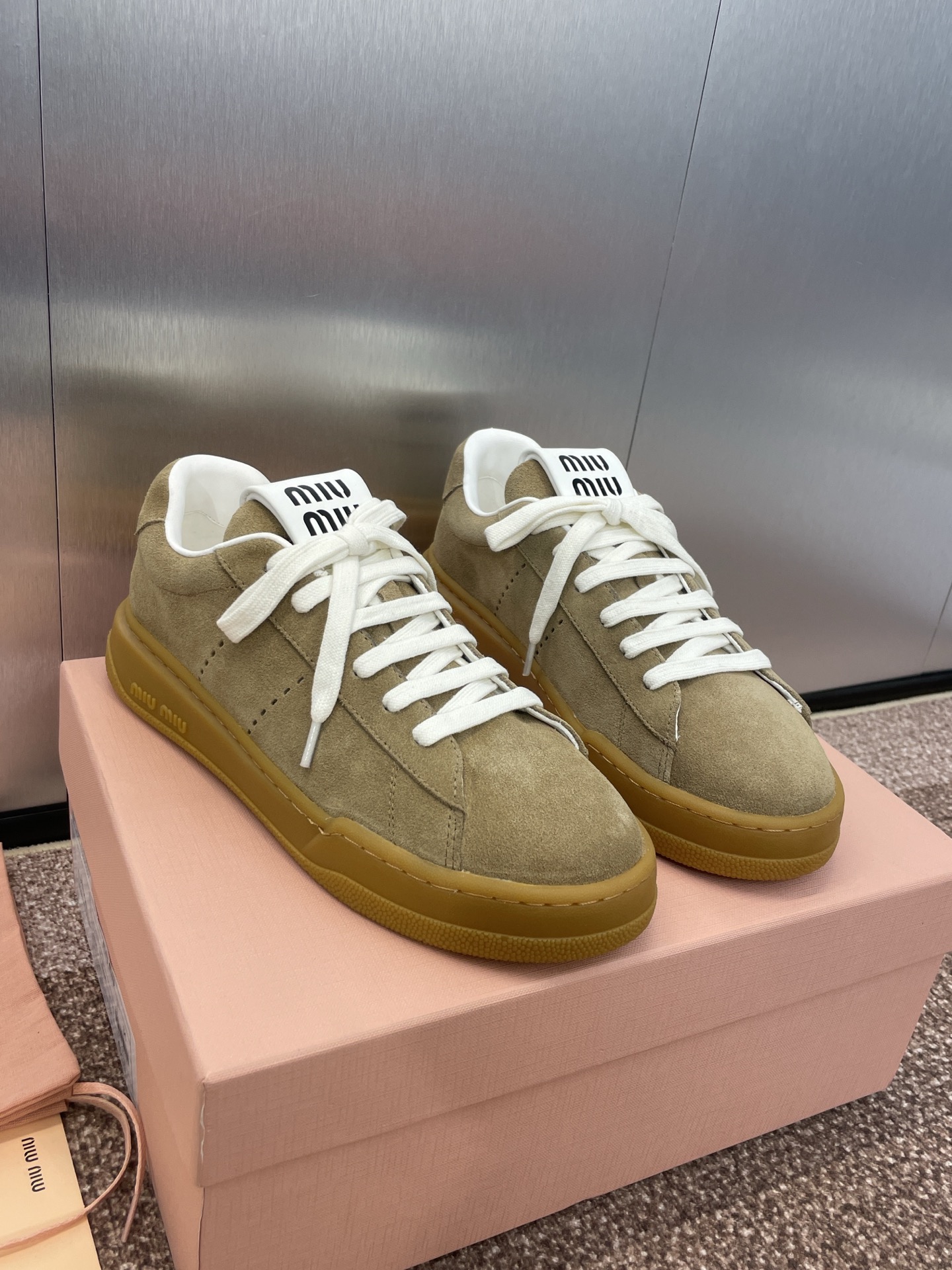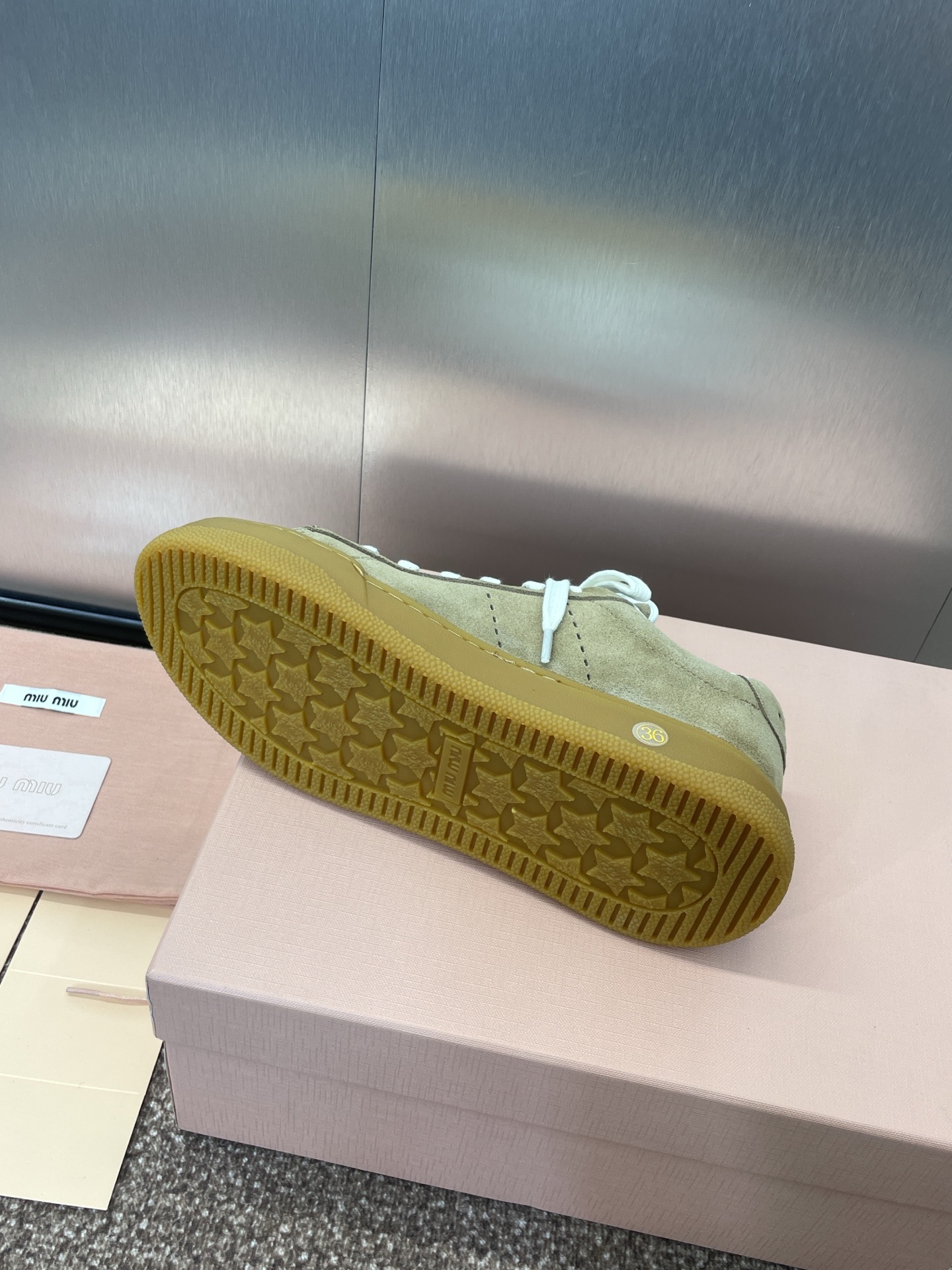 這款鞋子是AAAAA 1:1 質量(非常棒). 使用了和原版一模一樣的材料. 商標部分也保持了和繆繆/Miu Miu一樣. 圖片拍攝是實物鞋子拍攝, 您所收到的實物保證和我們圖片一模一樣.