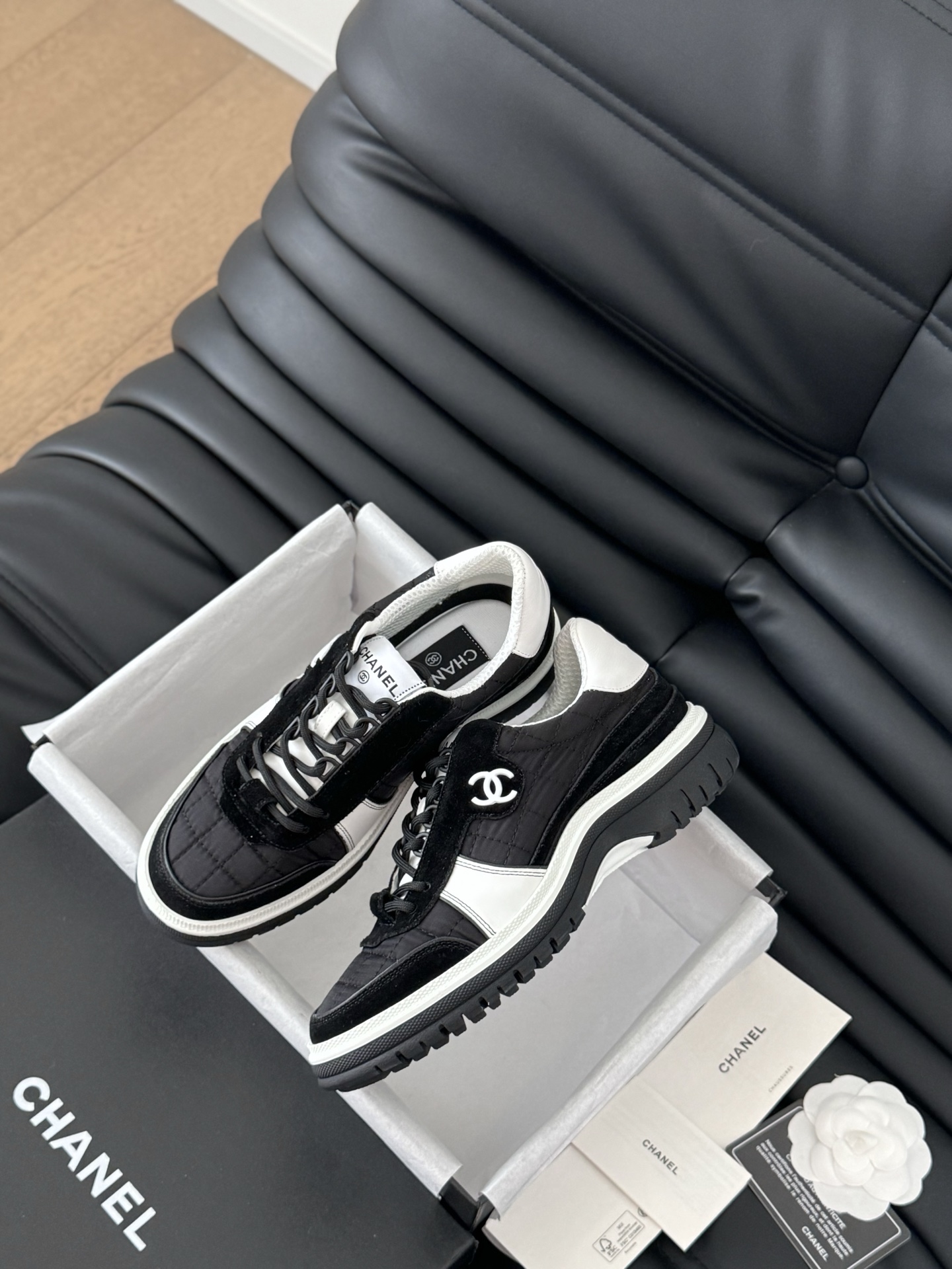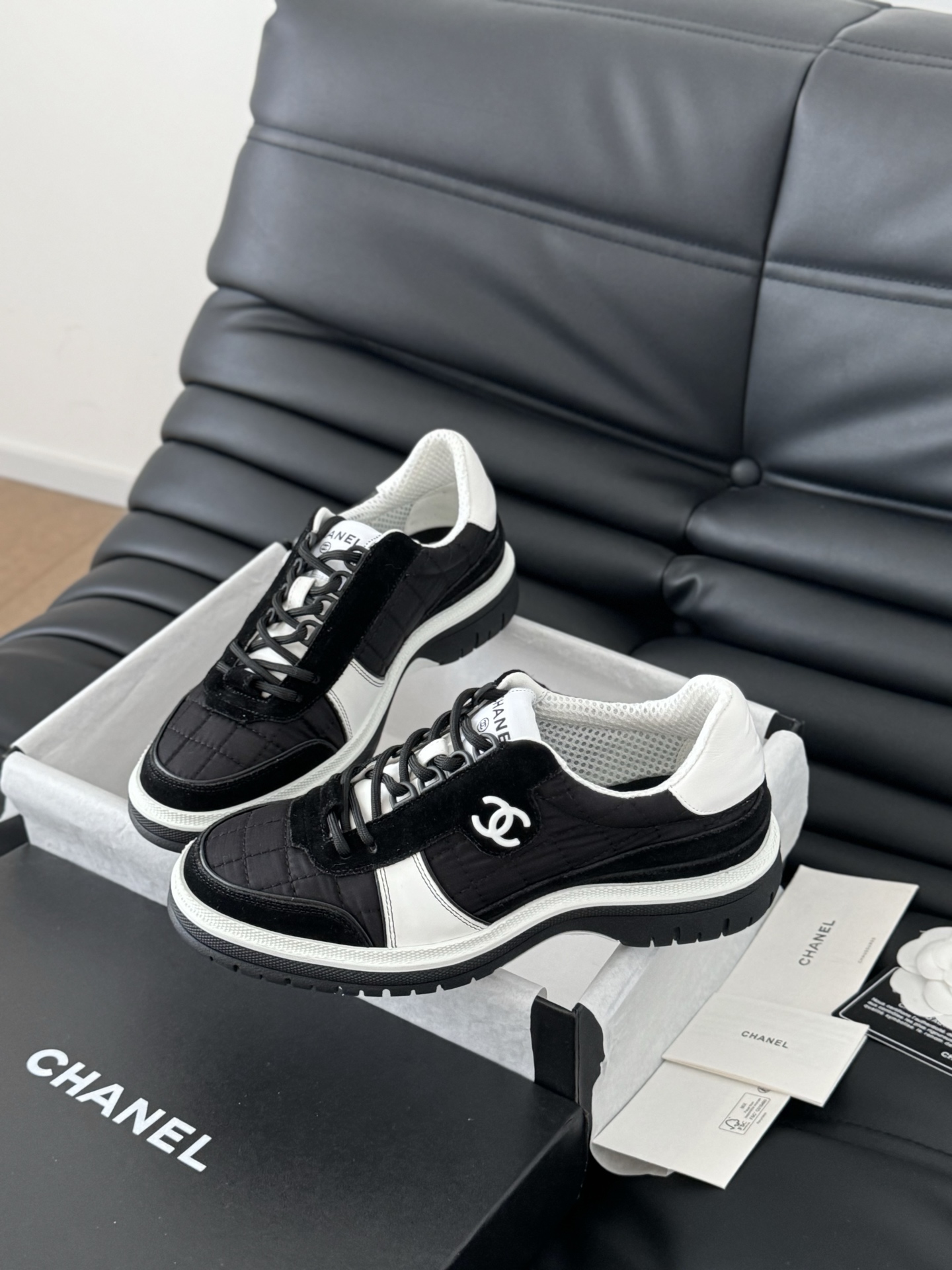 這款鞋子是AAAAA 1:1 質量(非常棒). 使用了和原版一模一樣的材料. 商標部分也保持了和香奈兒/Chanel一樣. 圖片拍攝是實物鞋子拍攝, 您所收到的實物保證和我們圖片一模一樣.