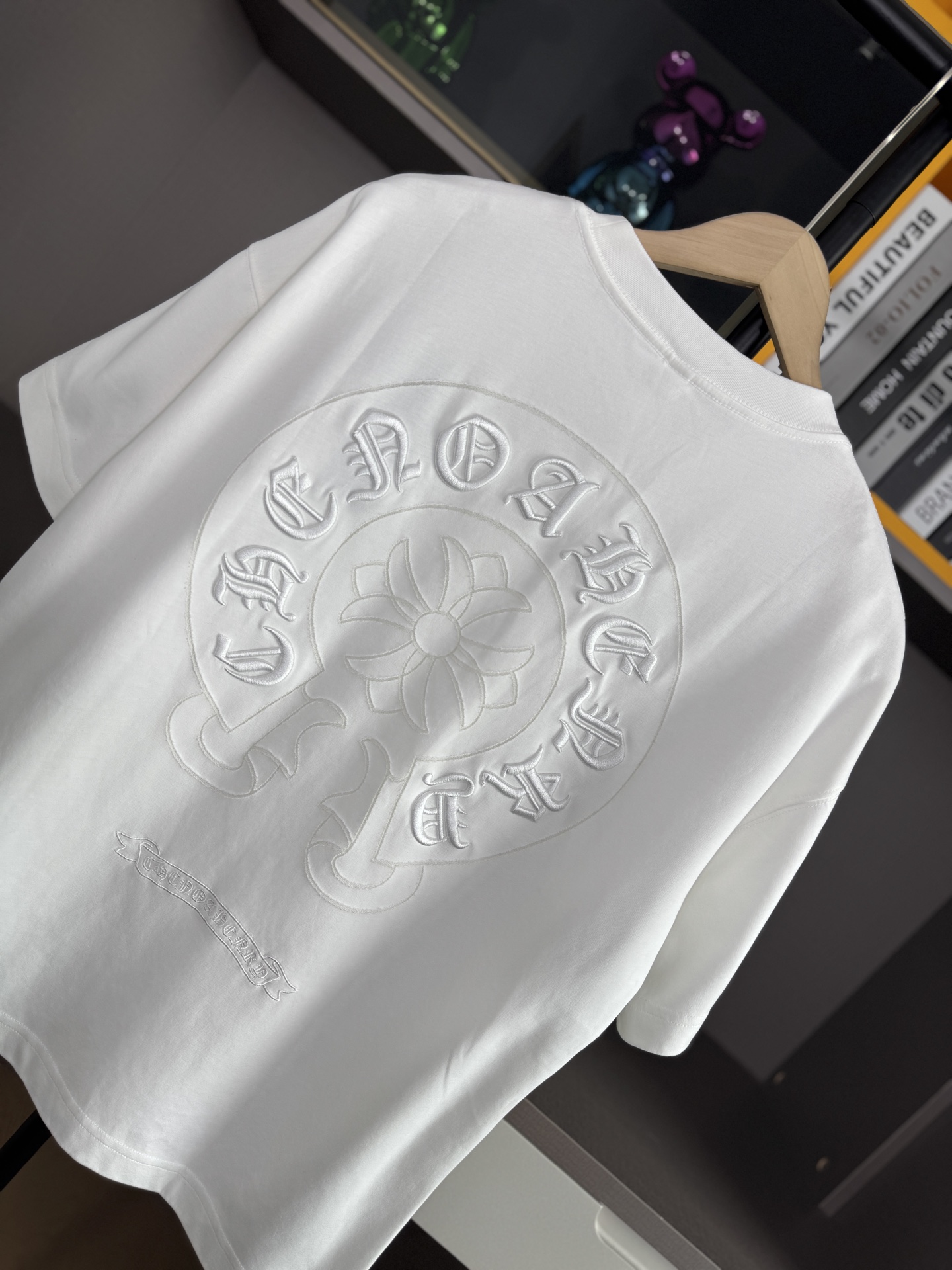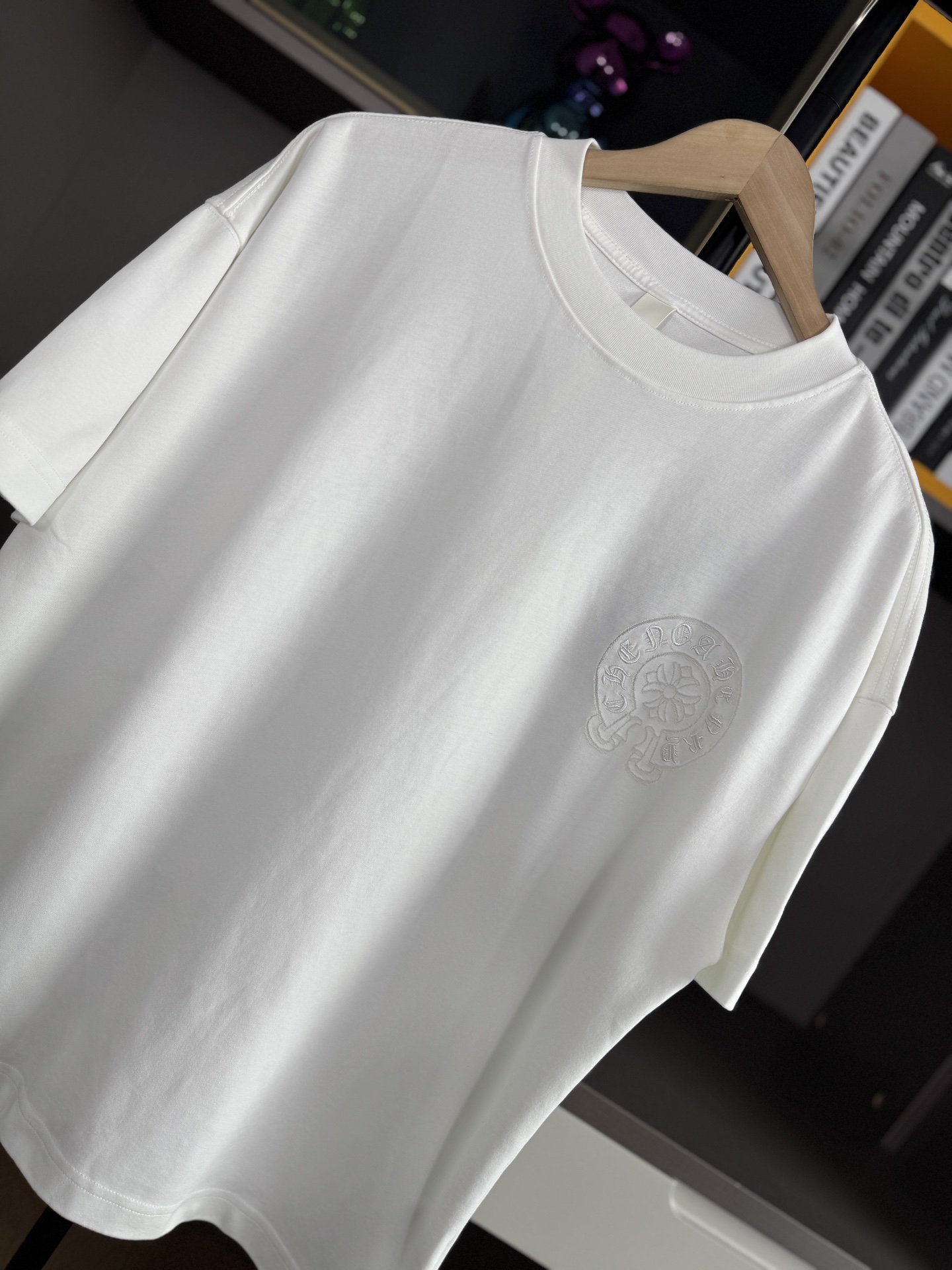 這款衣服是AAAAA 1:1 質量(非常棒). 使用了和原版一模一樣的材料. 商標部分也保持了和鉻心/Chrome Hearts一樣. 圖片拍攝是實物衣服拍攝, 您所收到的實物保證和我們圖片一模一樣.