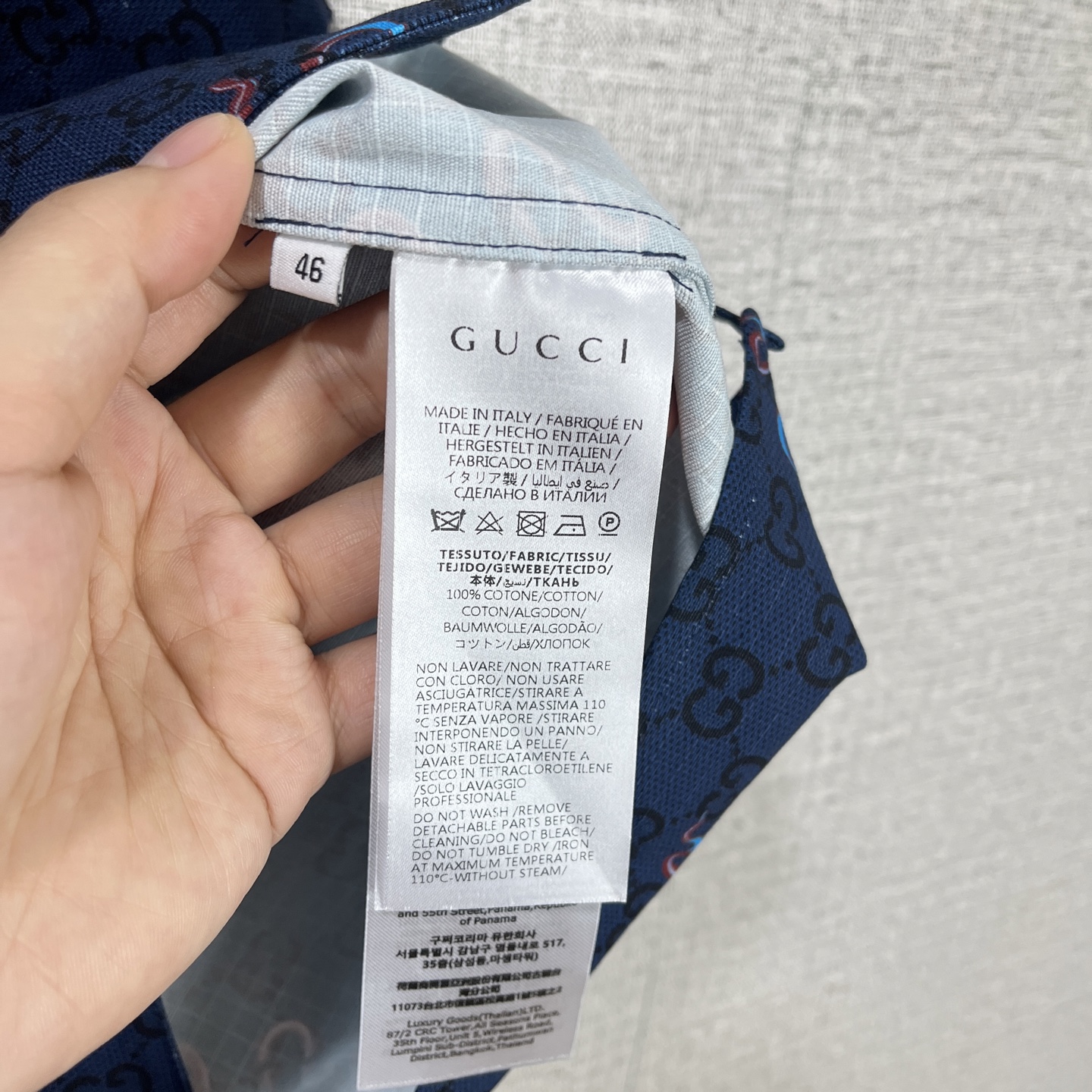 這款衣服是AAAAA 1:1 質量(非常棒). 使用了和原版一模一樣的材料. 商標部分也保持了和古奇/Gucci一樣. 圖片拍攝是實物衣服拍攝, 您所收到的實物保證和我們圖片一模一樣.