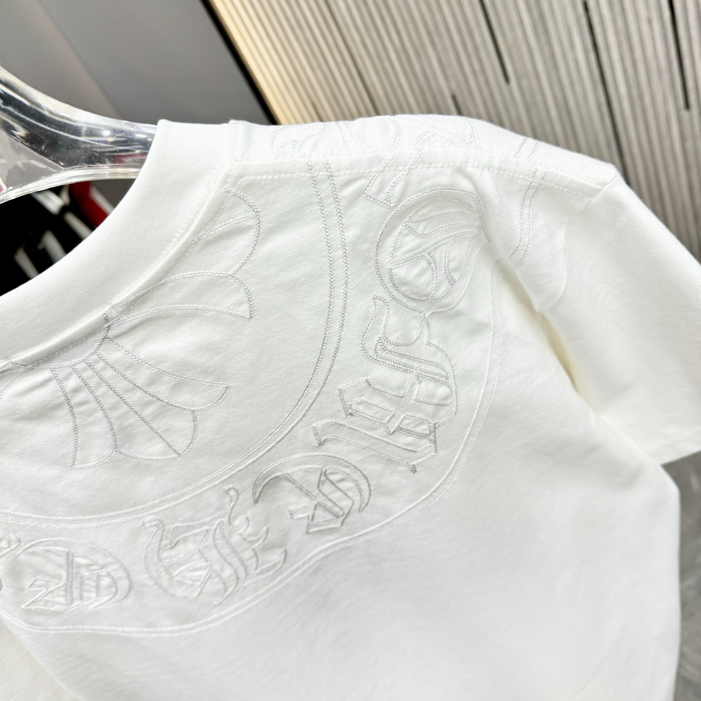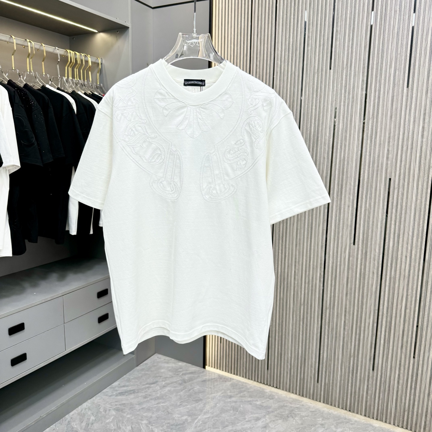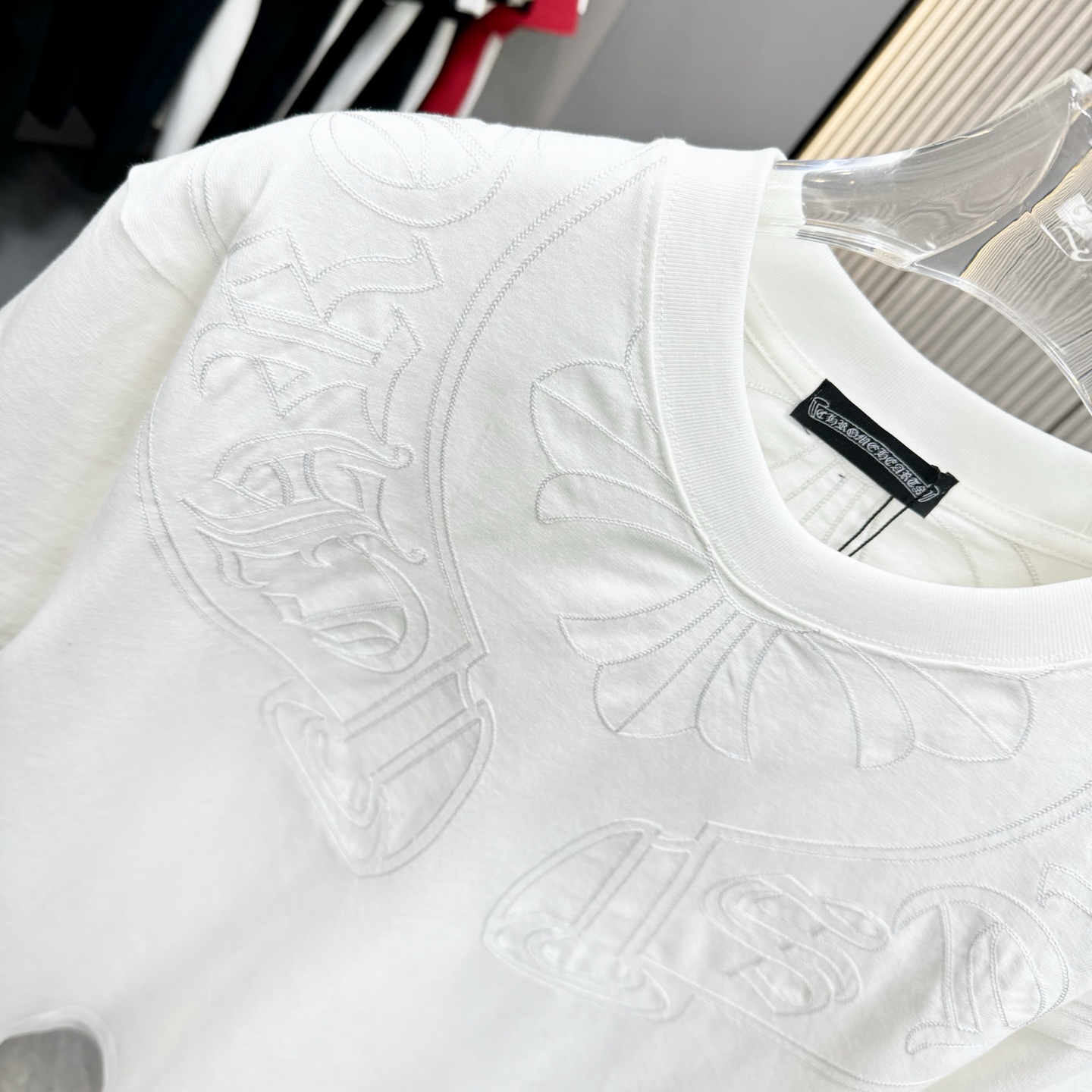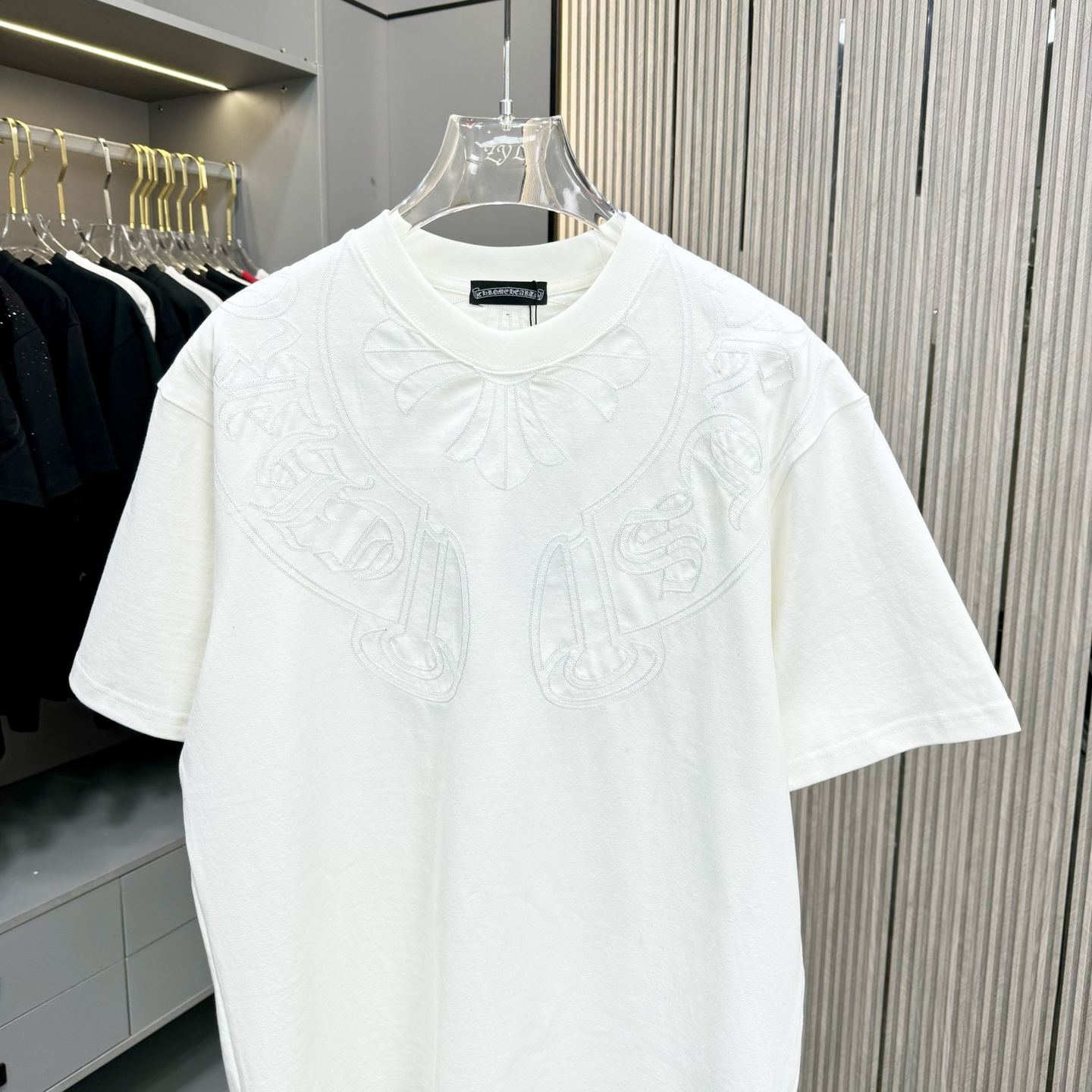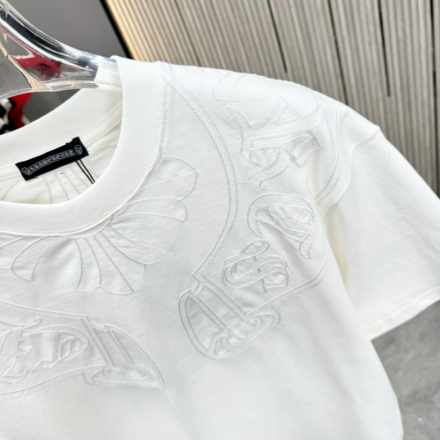 這款衣服是AAAAA 1:1 質量(非常棒). 使用了和原版一模一樣的材料. 商標部分也保持了和鉻心/Chrome Hearts一樣. 圖片拍攝是實物衣服拍攝, 您所收到的實物保證和我們圖片一模一樣.