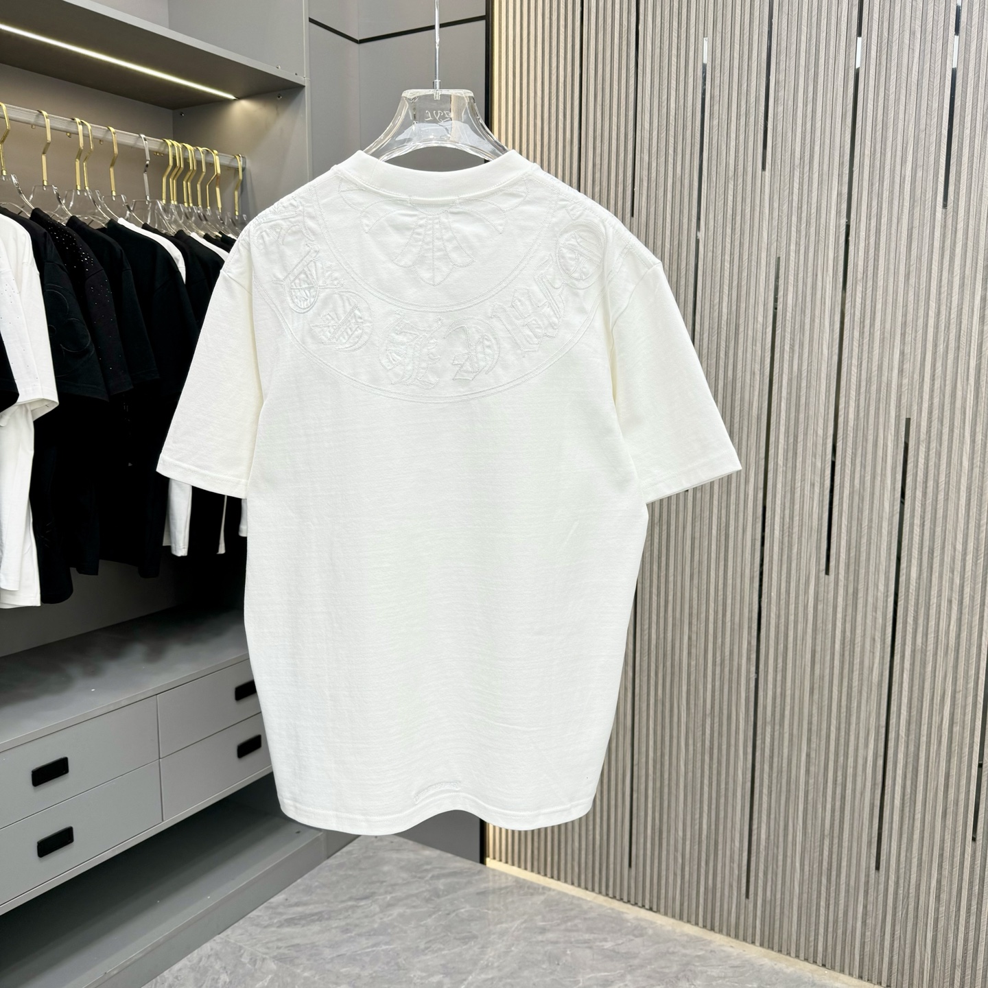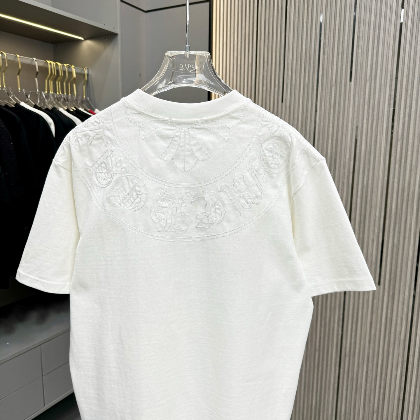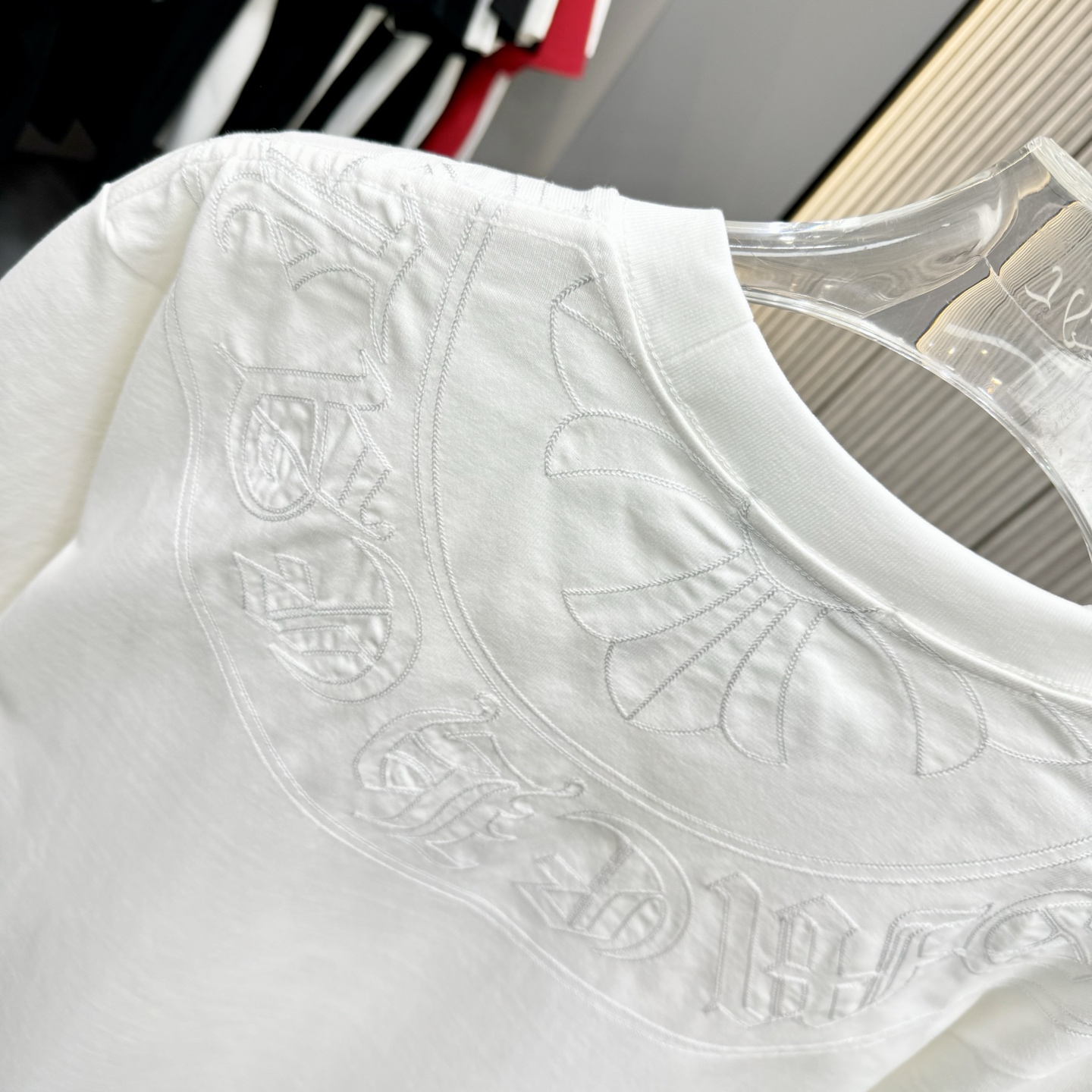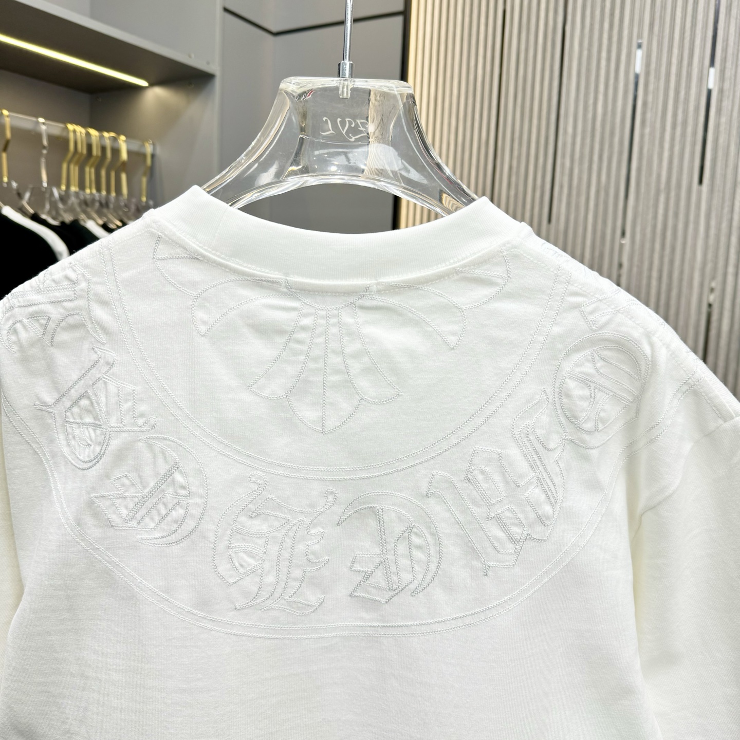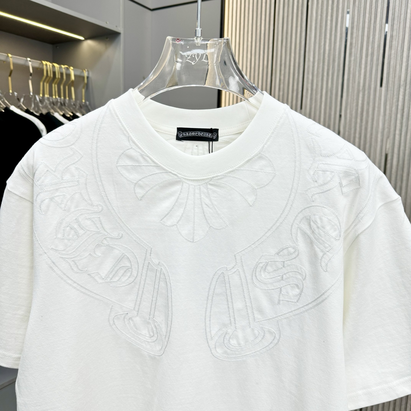這款衣服是AAAAA 1:1 質量(非常棒). 使用了和原版一模一樣的材料. 商標部分也保持了和鉻心/Chrome Hearts一樣. 圖片拍攝是實物衣服拍攝, 您所收到的實物保證和我們圖片一模一樣.
